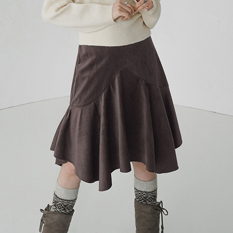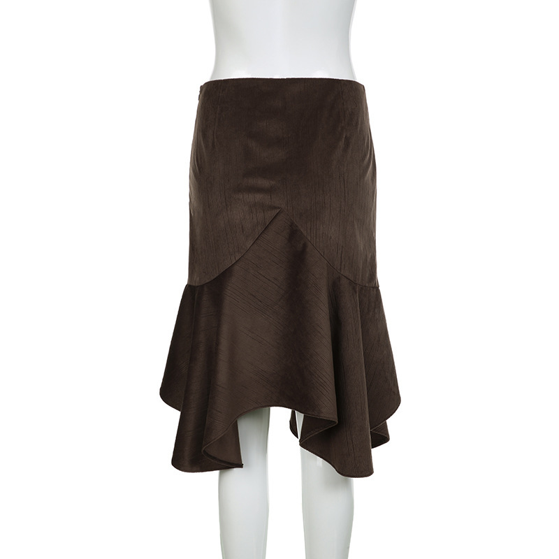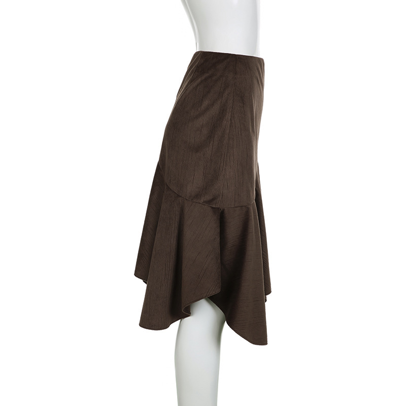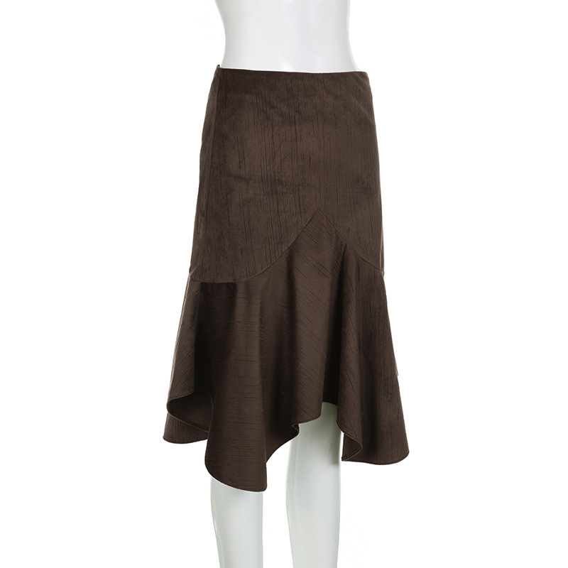 秋冬ins美拉德穿搭设计感不规则垂感中长裙女复古棕色美式半身裙