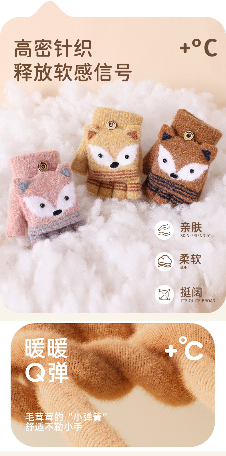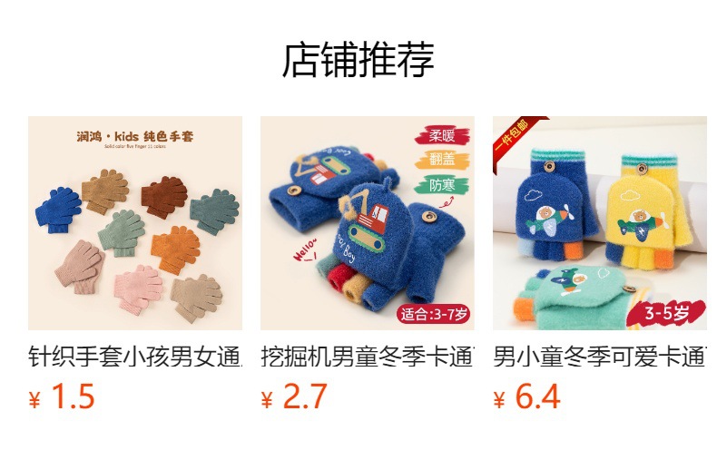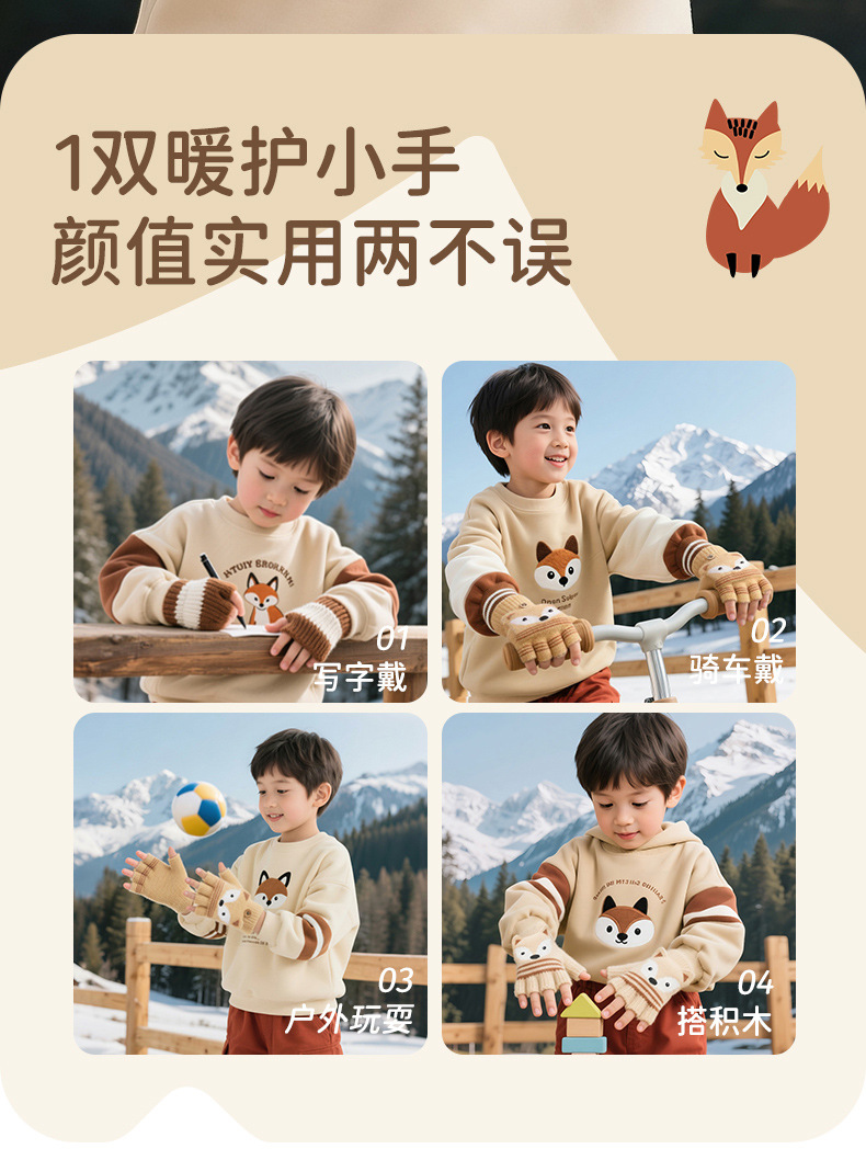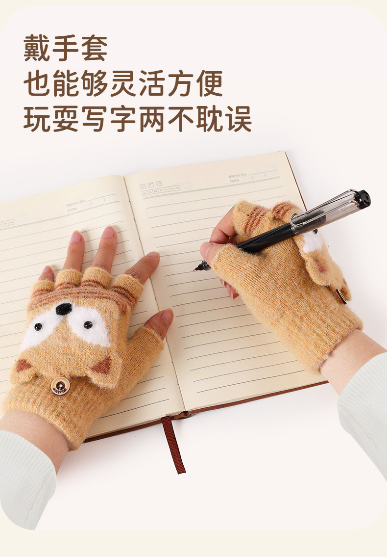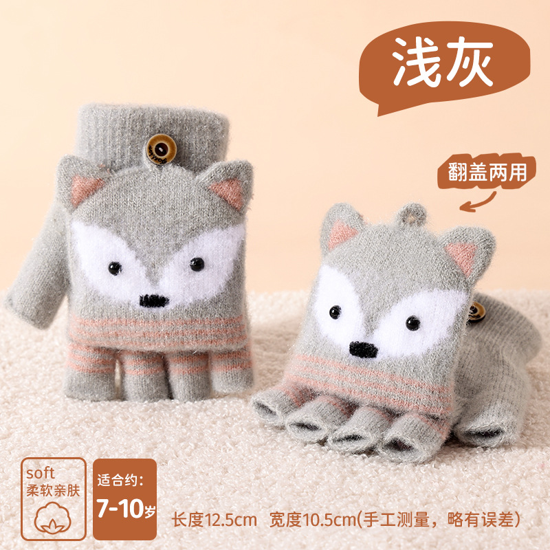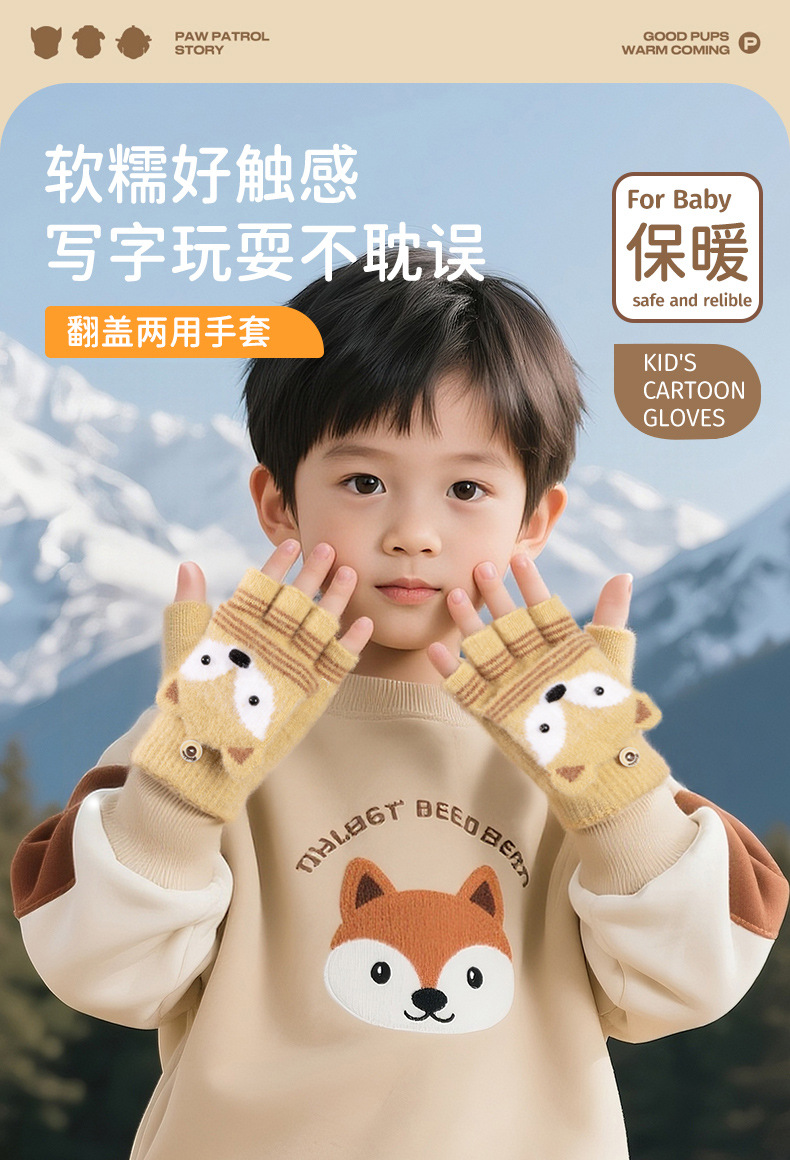 儿童冬季半指翻盖卡通针织保暖加绒露指可爱男童手套批发女童防寒