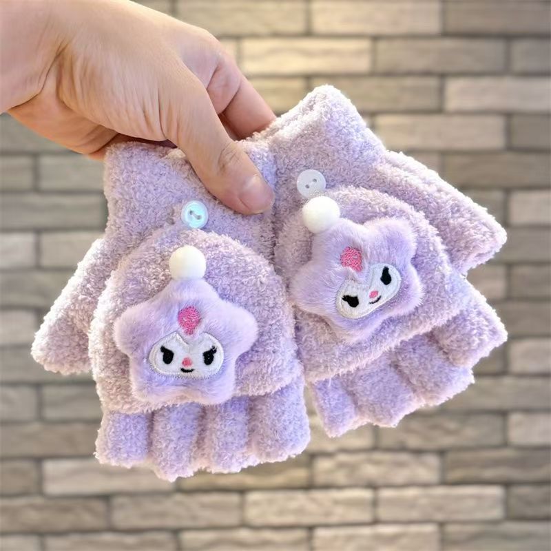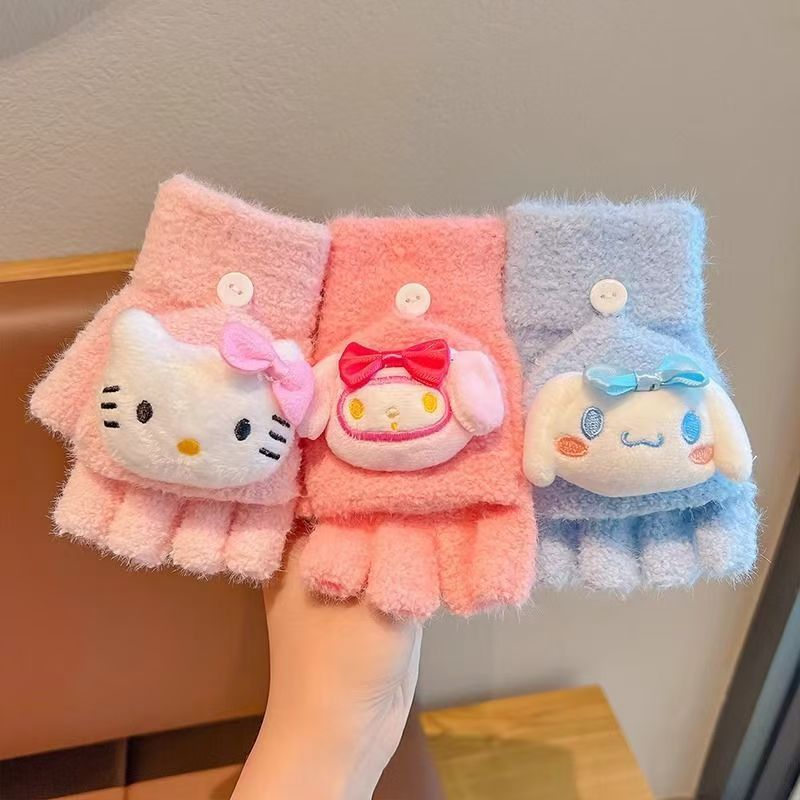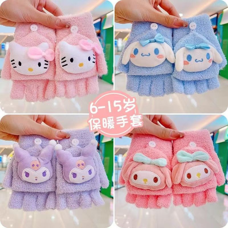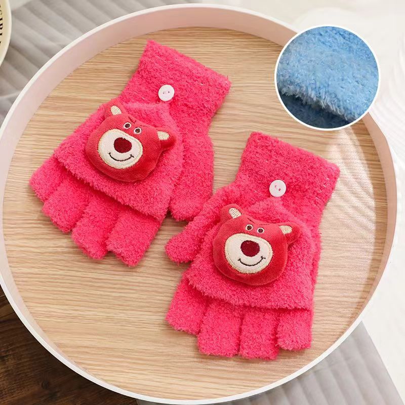 卡通儿童手套秋冬季保暖学生冬季手套翻盖手套骑车防寒写字手套批
