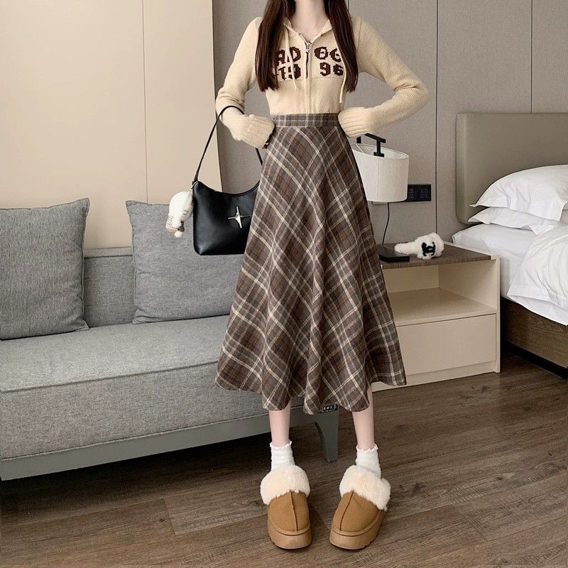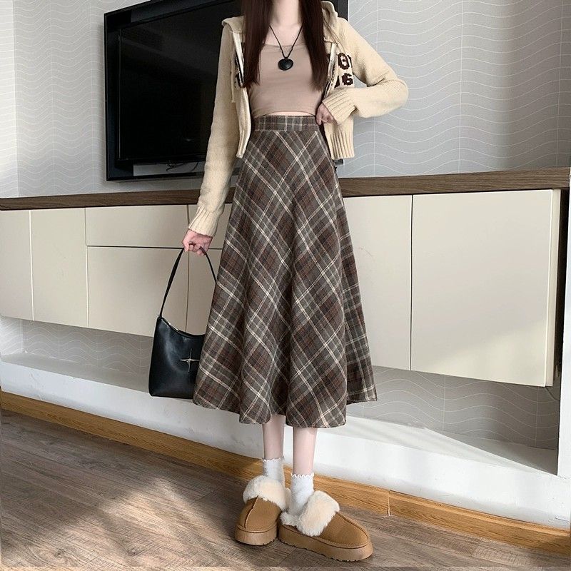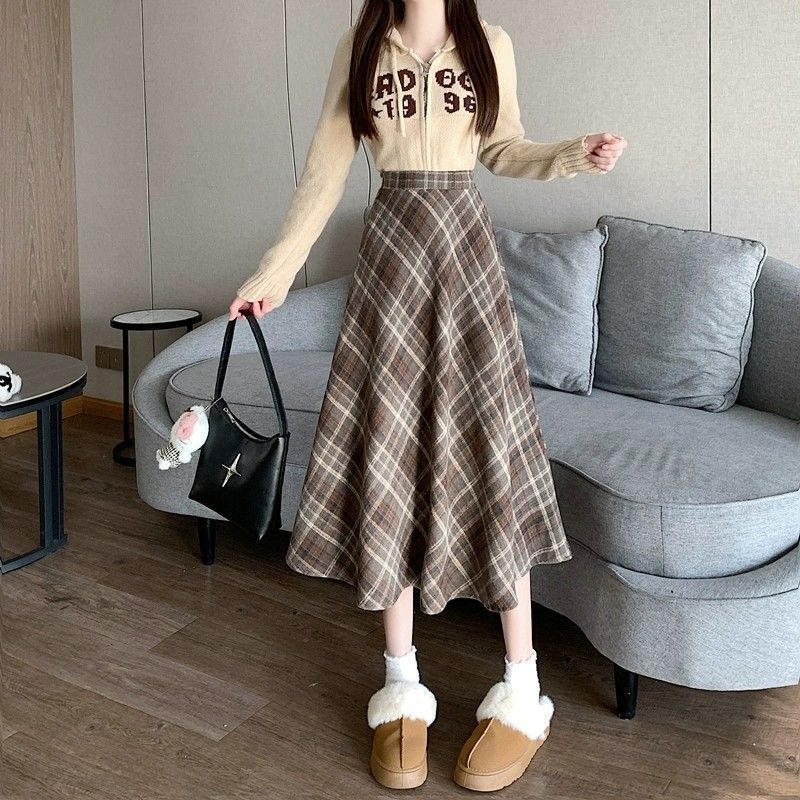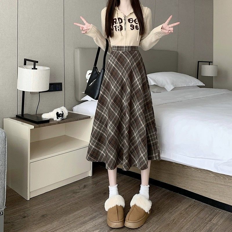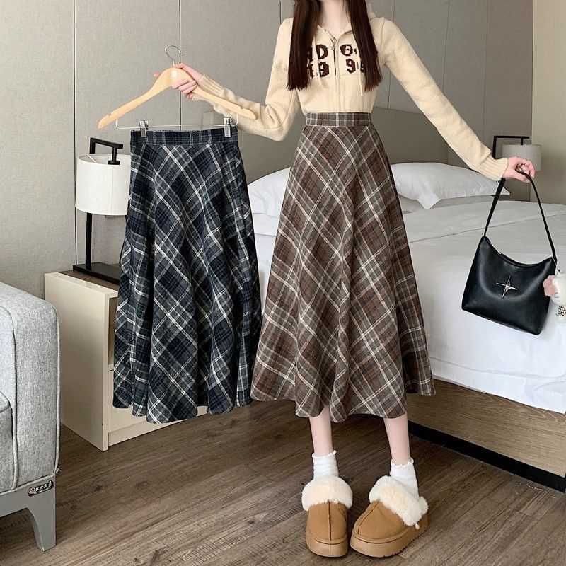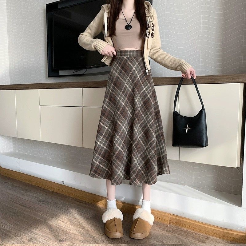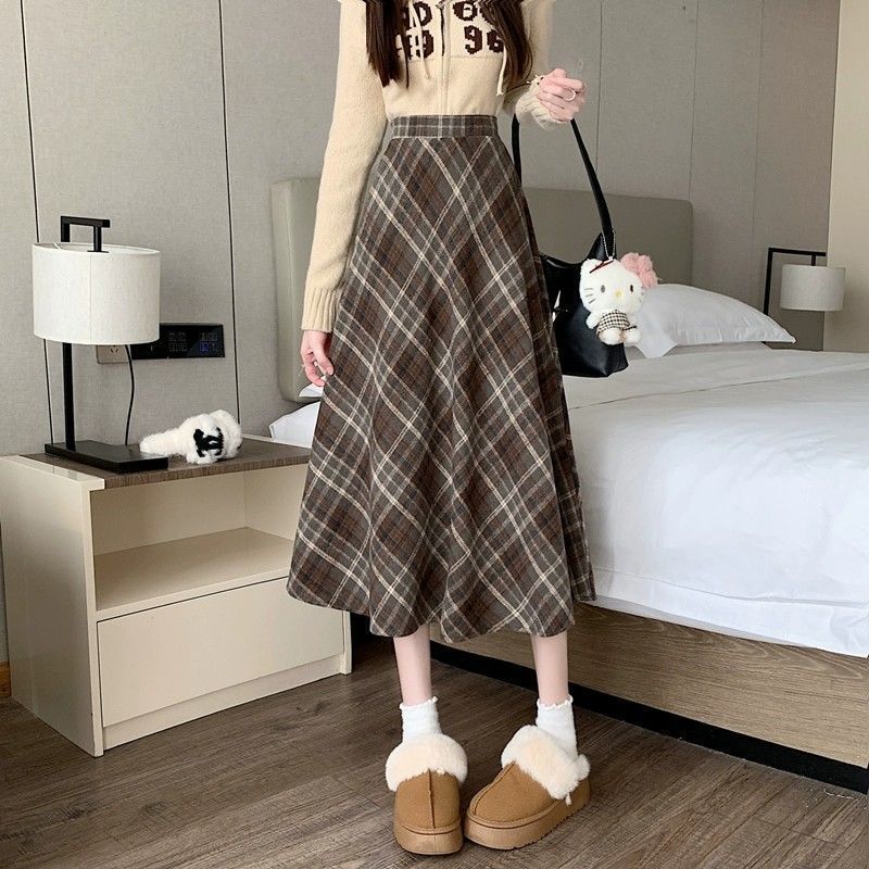 美拉德设计感格子半身裙秋冬2025新款显瘦中长款A字复古毛呢小众