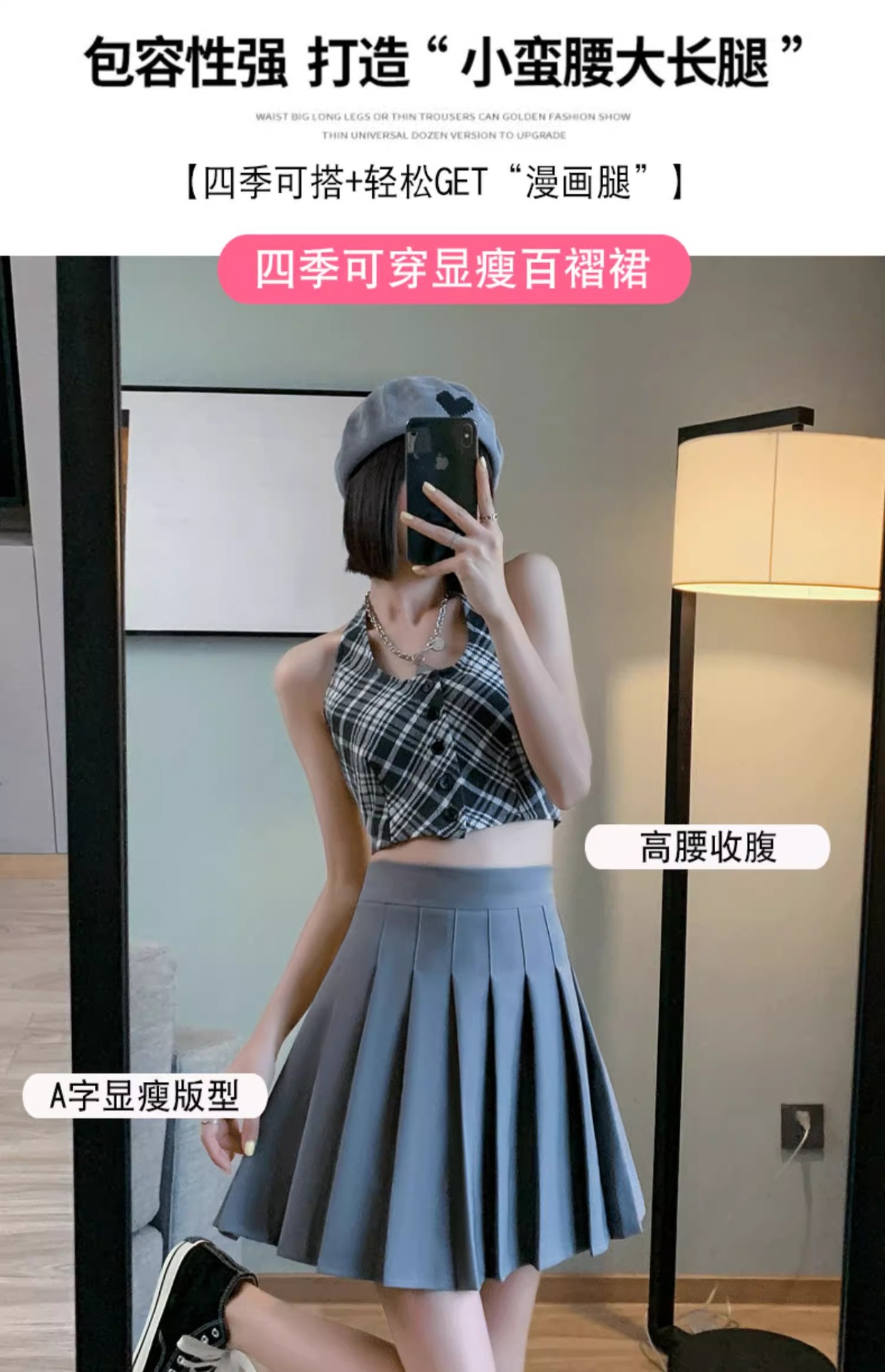黑色毛呢百褶裙女2025秋冬款高腰显瘦防走光jk半身裙加厚a字短裙