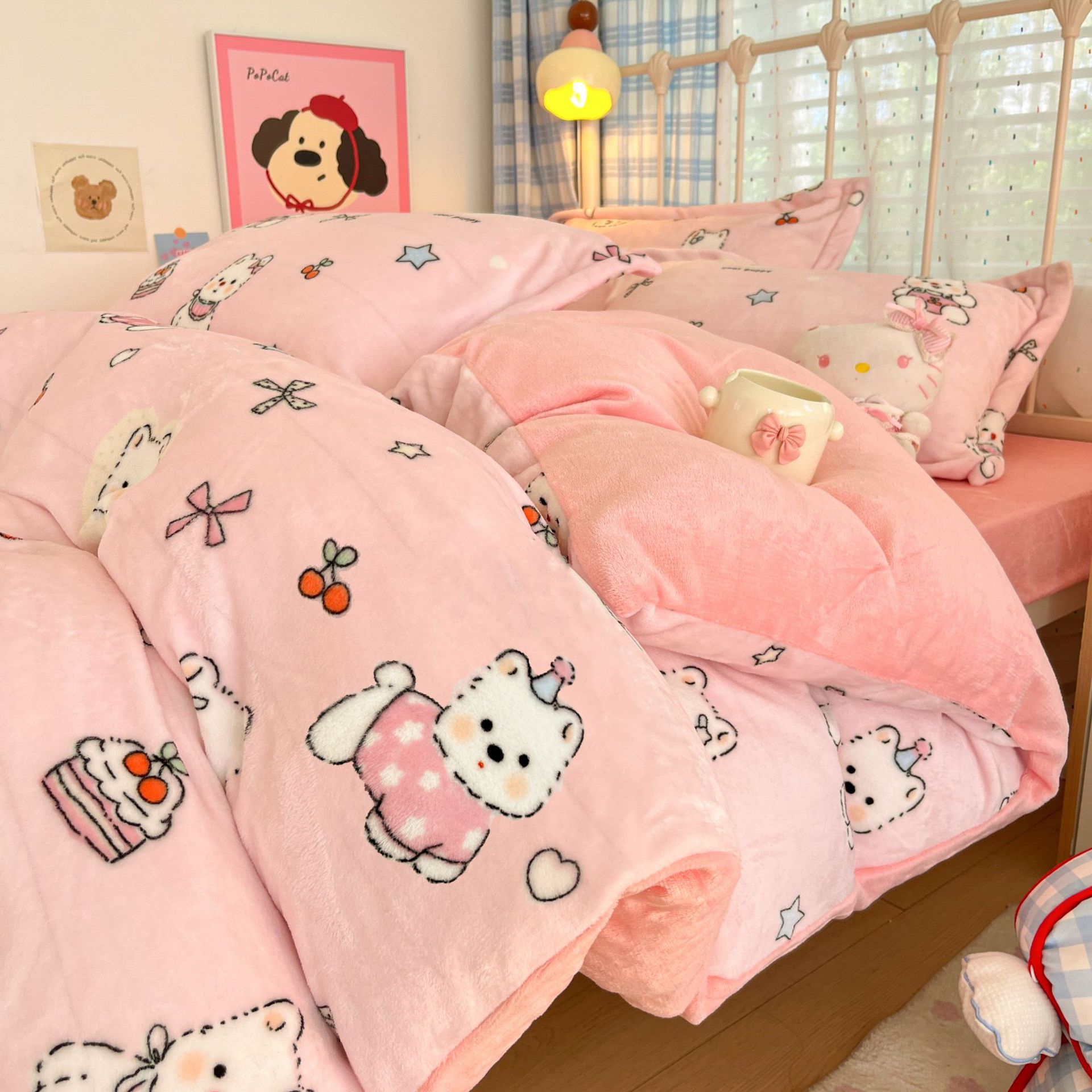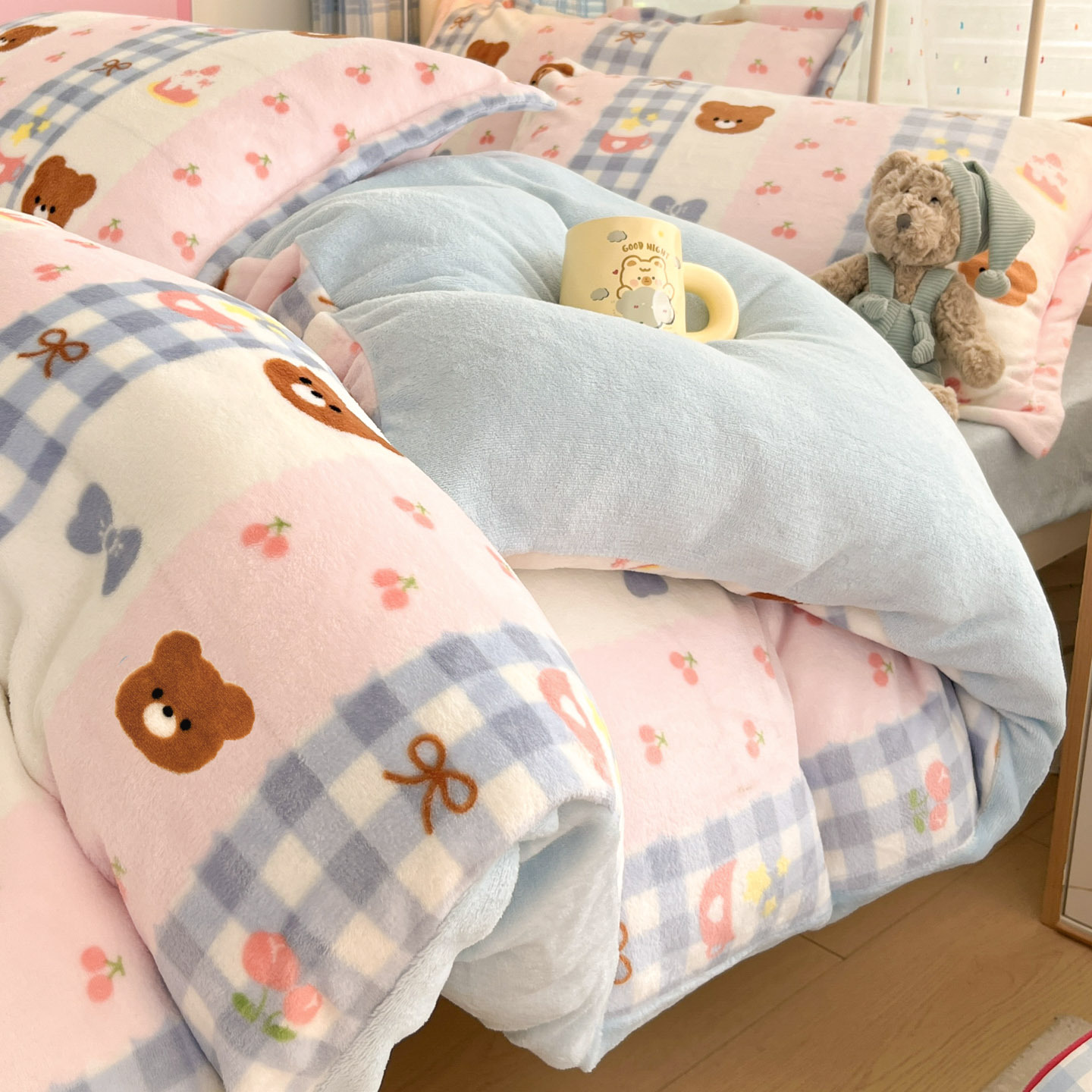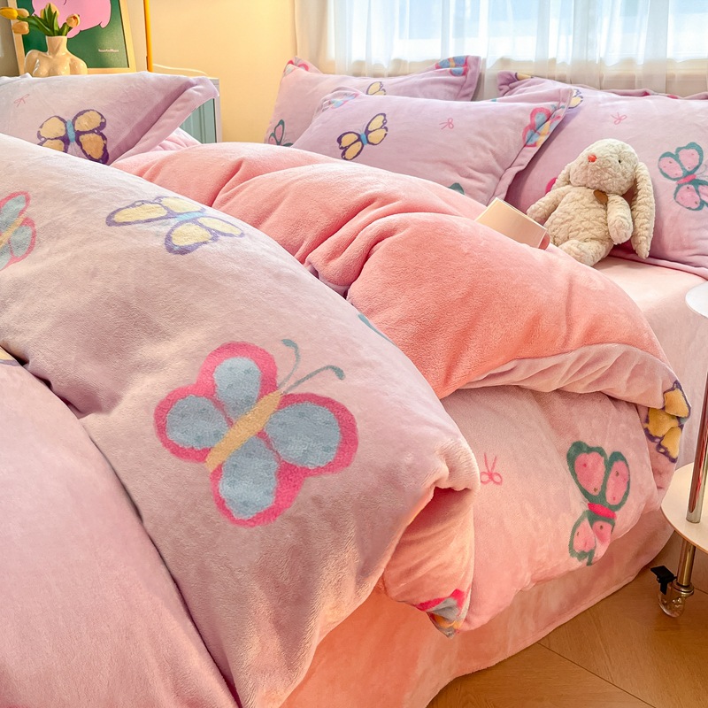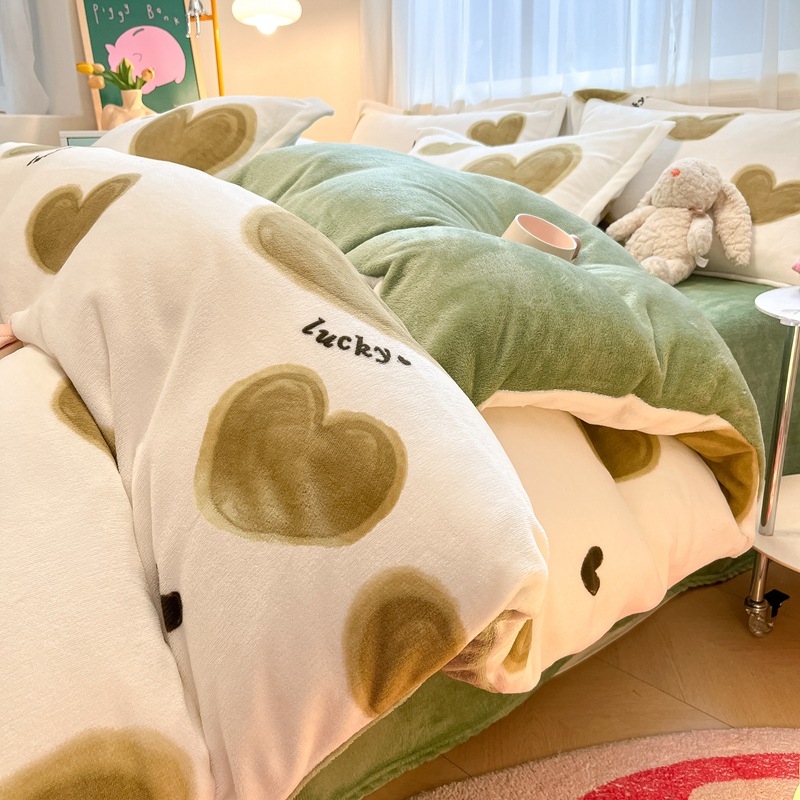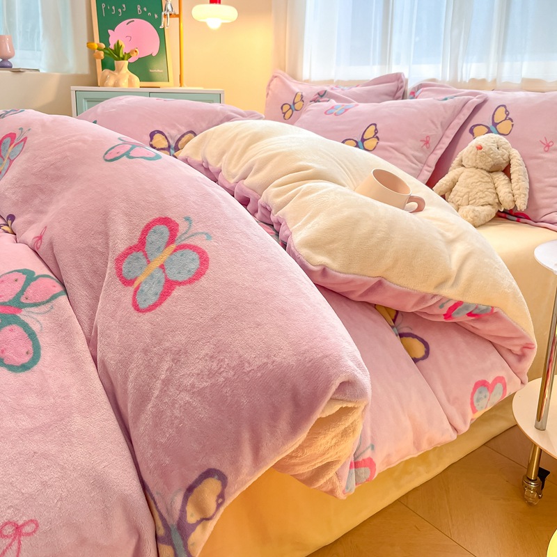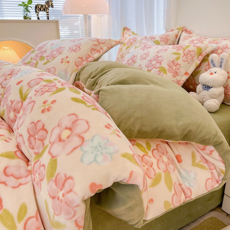 冬季A类母婴级牛奶绒四件套小清新加厚保暖被套罩床笠学生三件套4