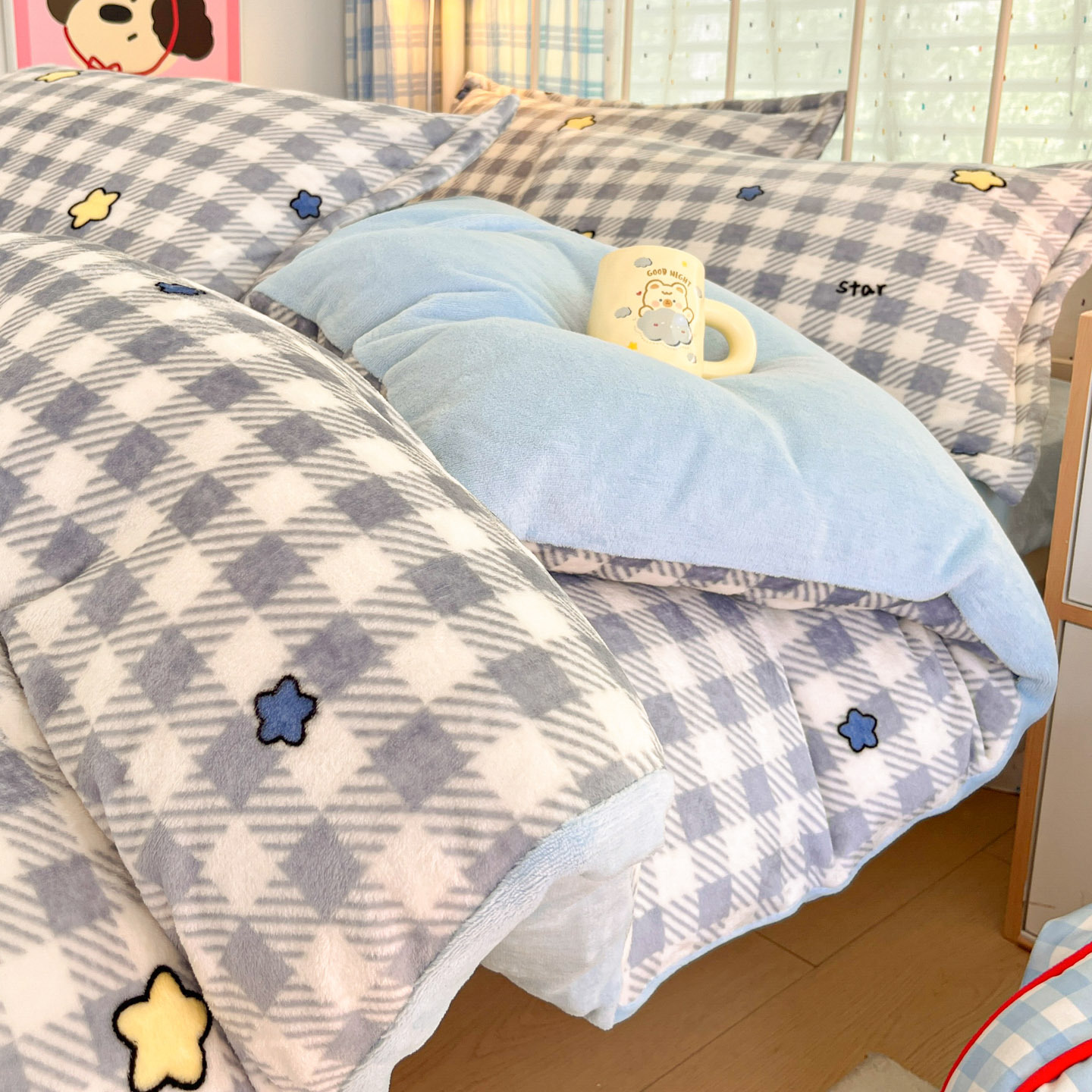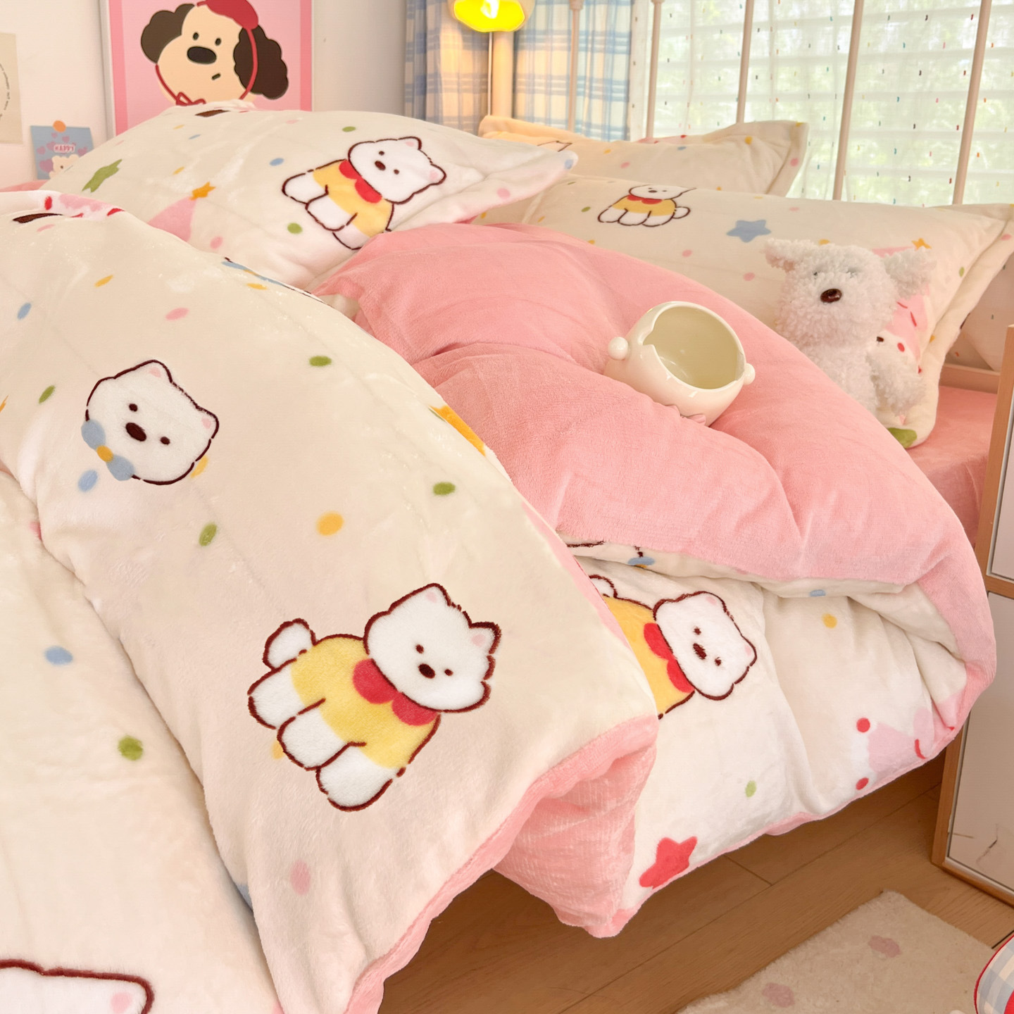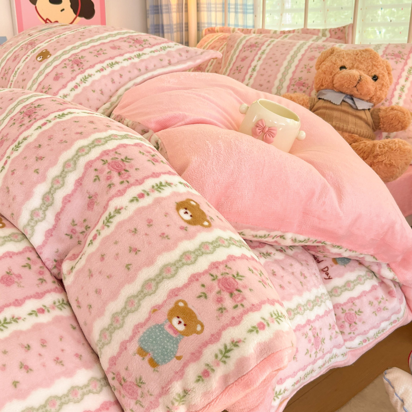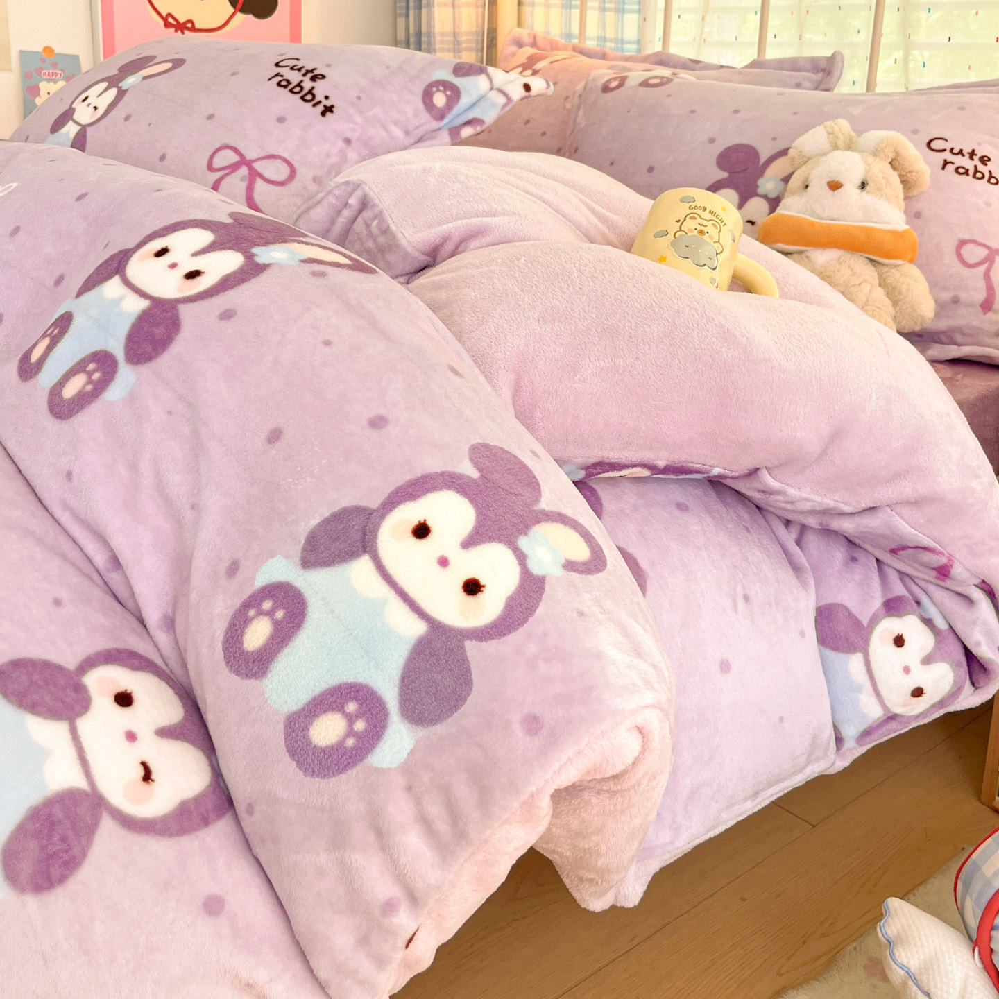 冬季A类母婴级牛奶绒四件套小清新加厚保暖被套罩床笠学生三件套4