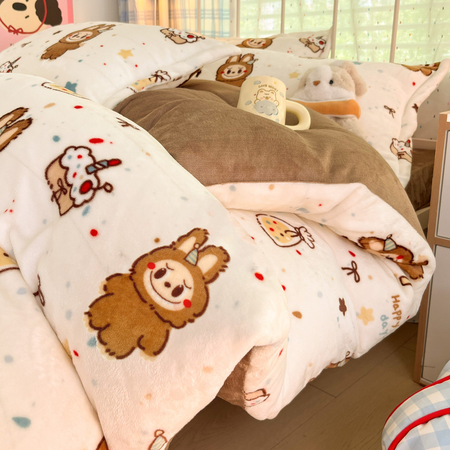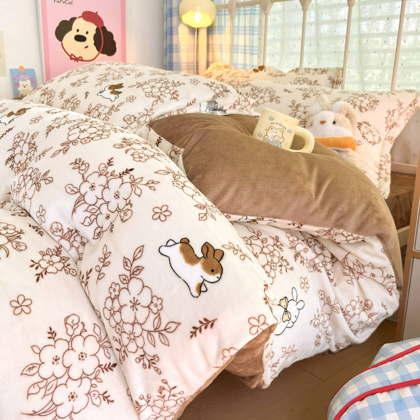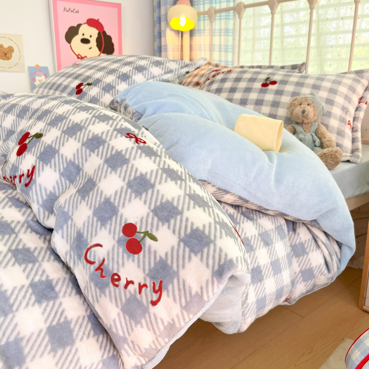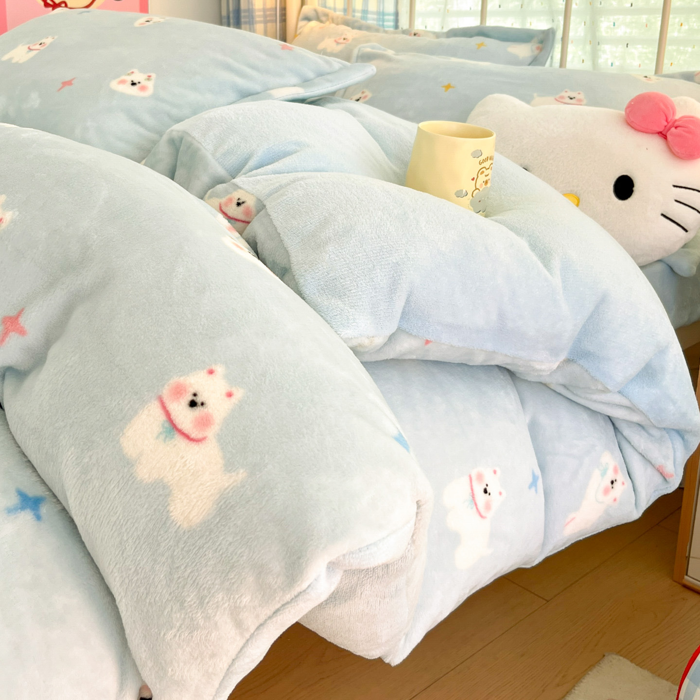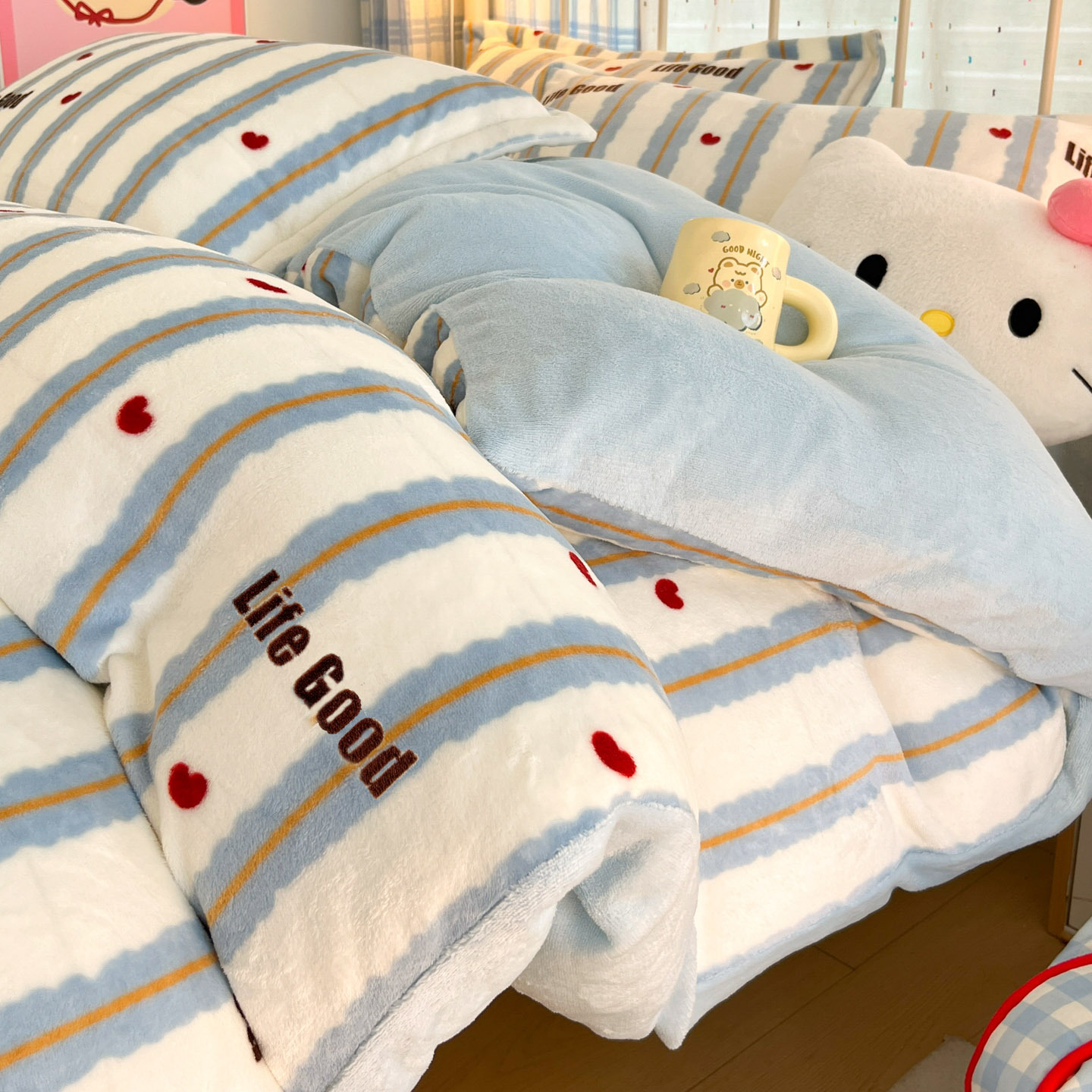 冬季A类母婴级牛奶绒四件套小清新加厚保暖被套罩床笠学生三件套4