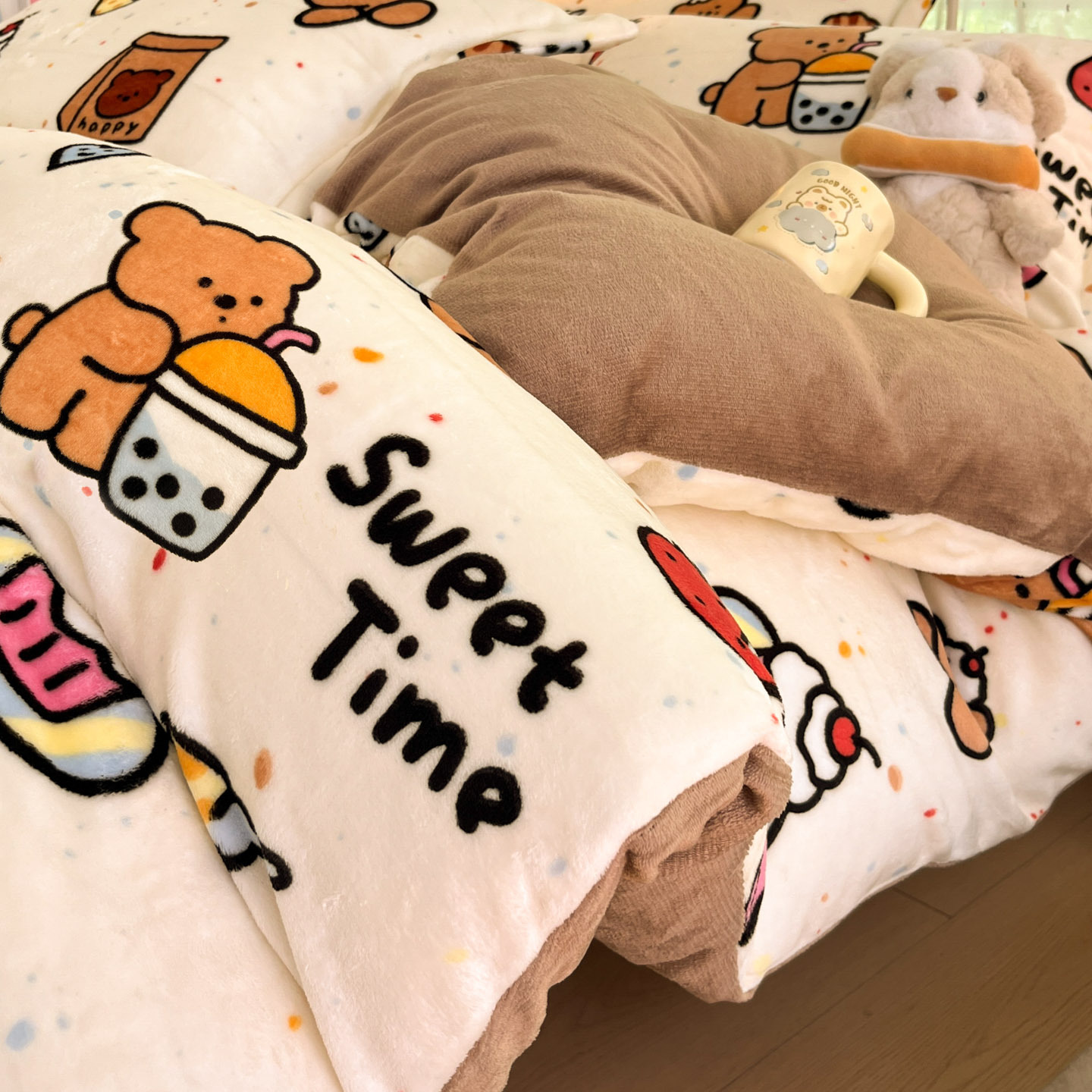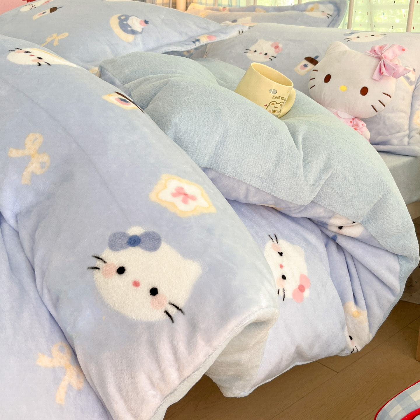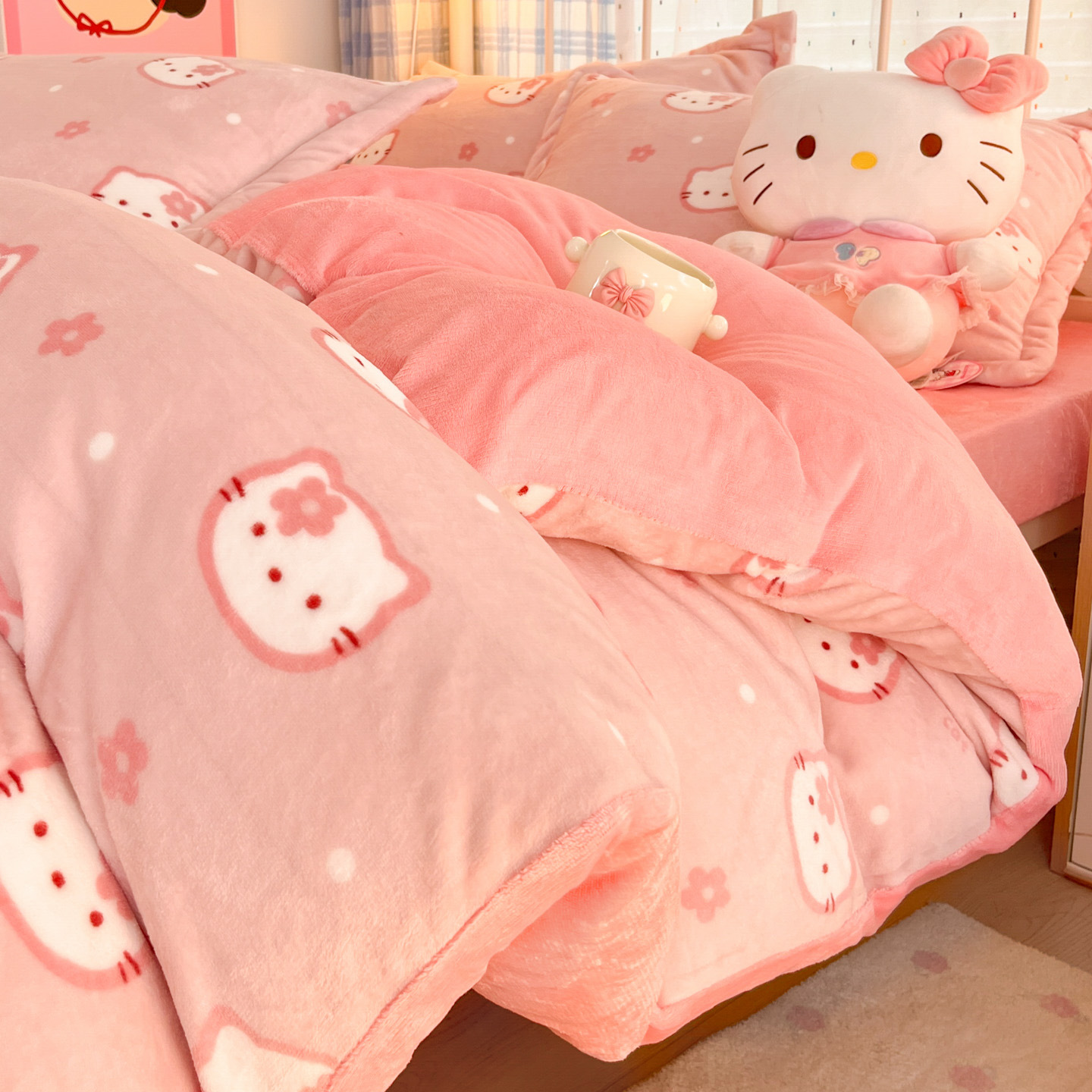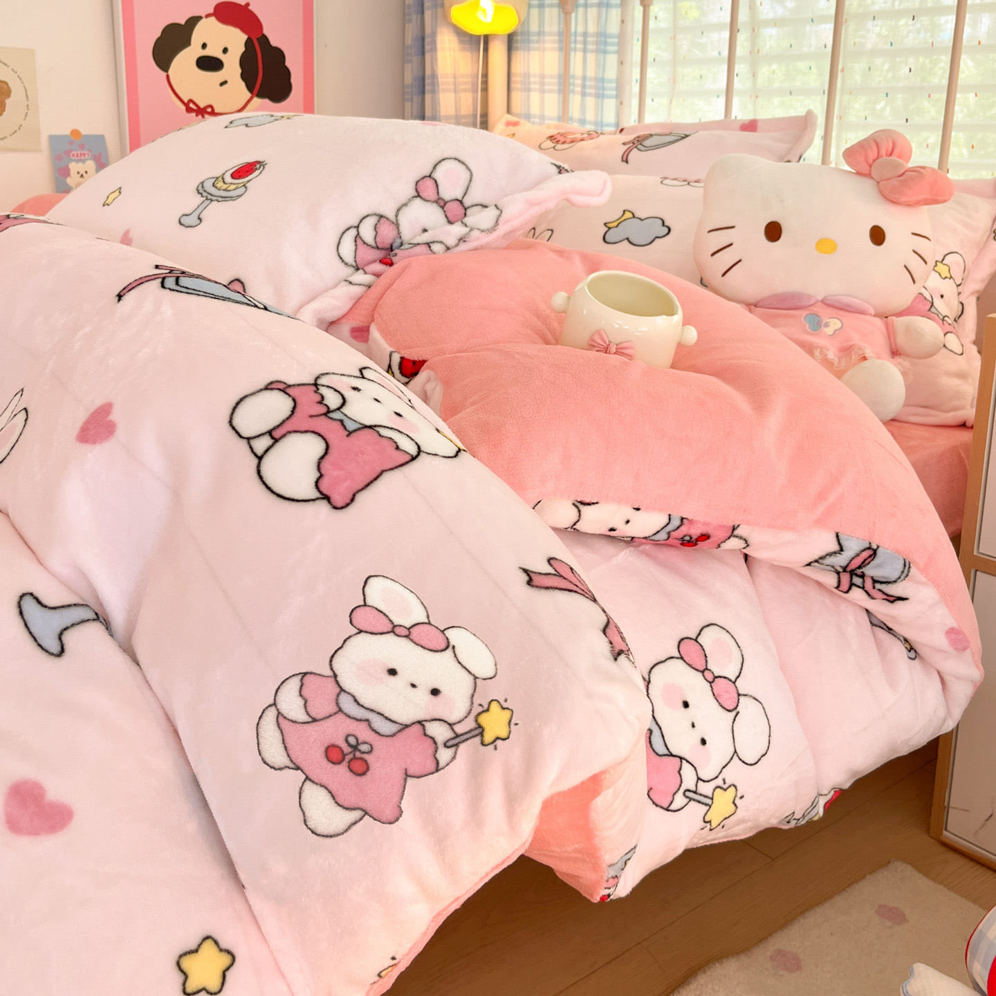 冬季A类母婴级牛奶绒四件套小清新加厚保暖被套罩床笠学生三件套4