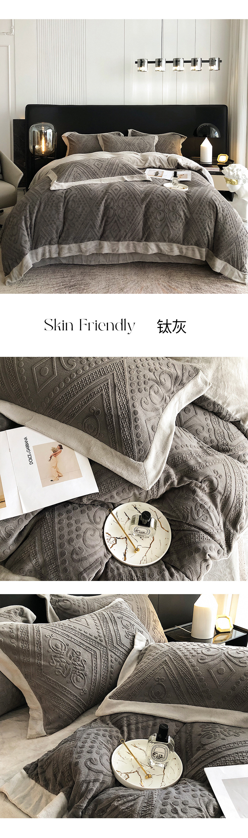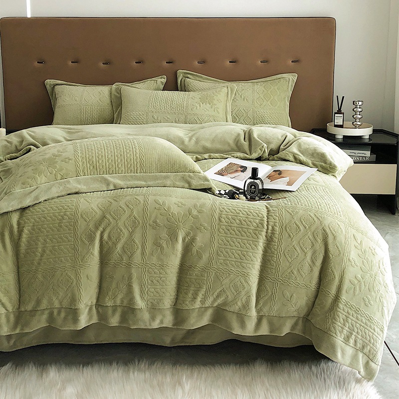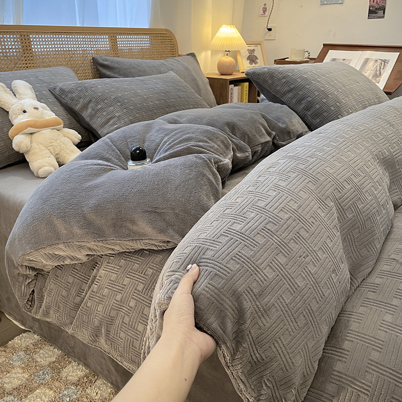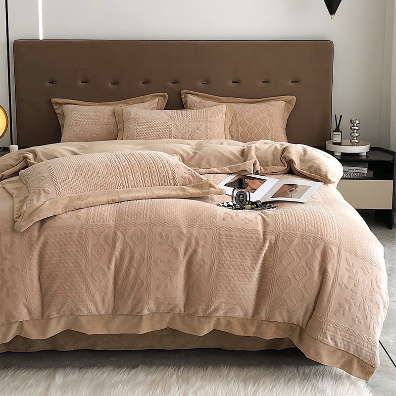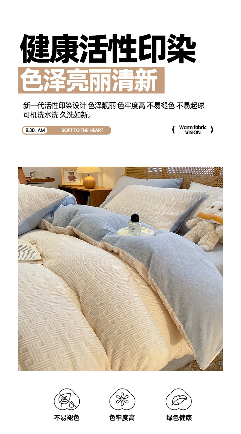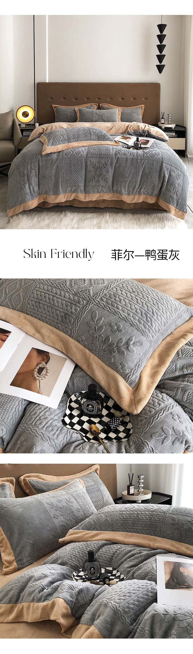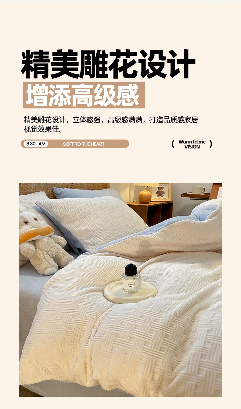 冬季牛奶绒四件套A类母婴级加厚保暖防静电纯色雕花绒法兰绒被套