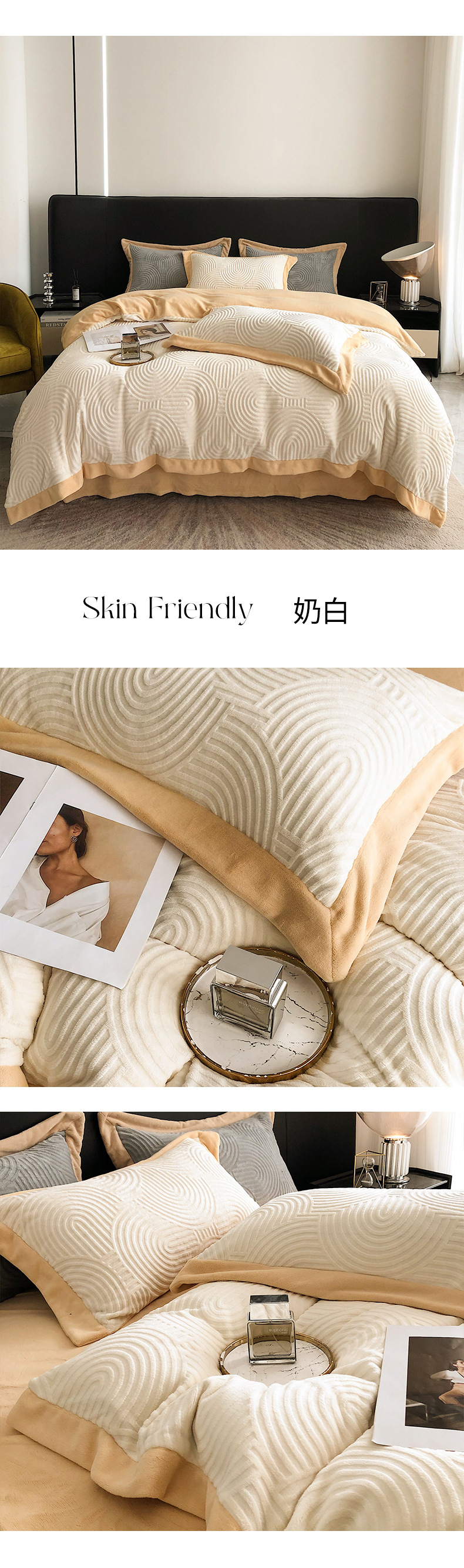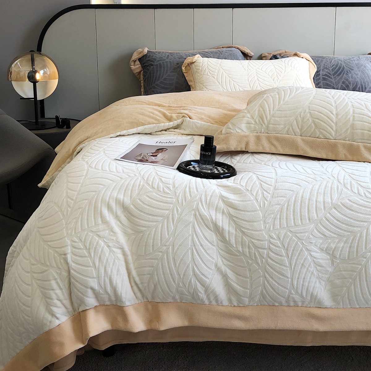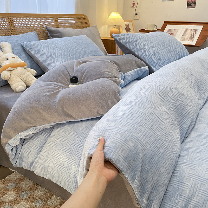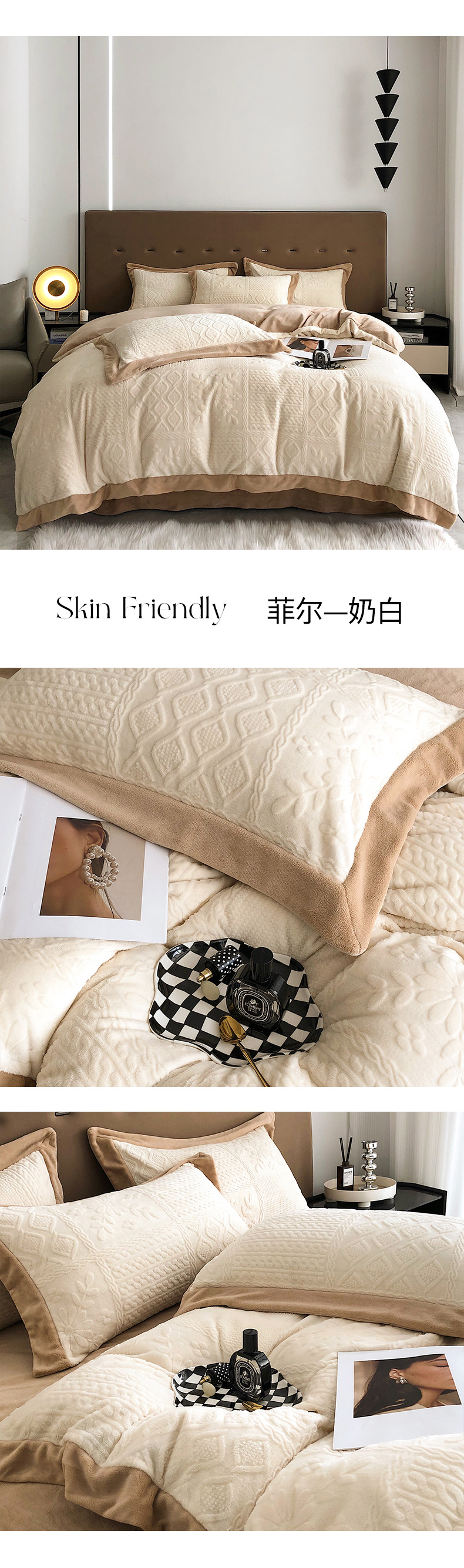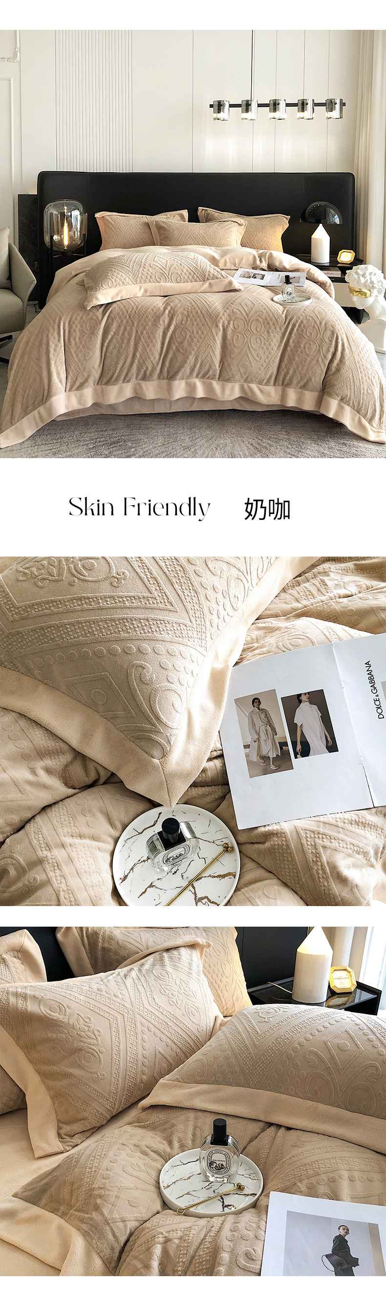 冬季牛奶绒四件套A类母婴级加厚保暖防静电纯色雕花绒法兰绒被套