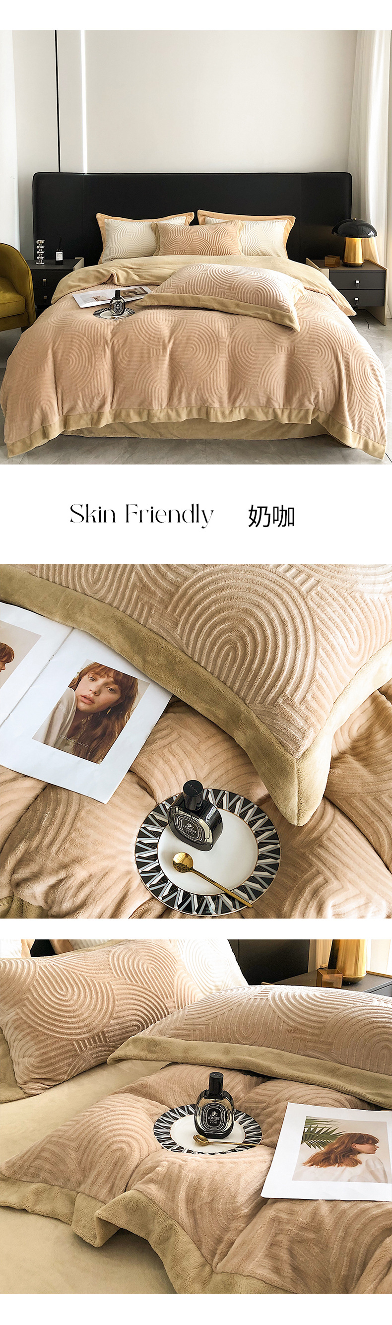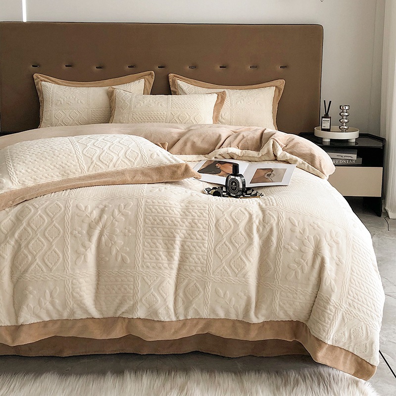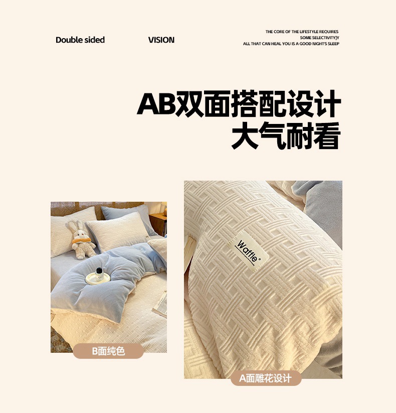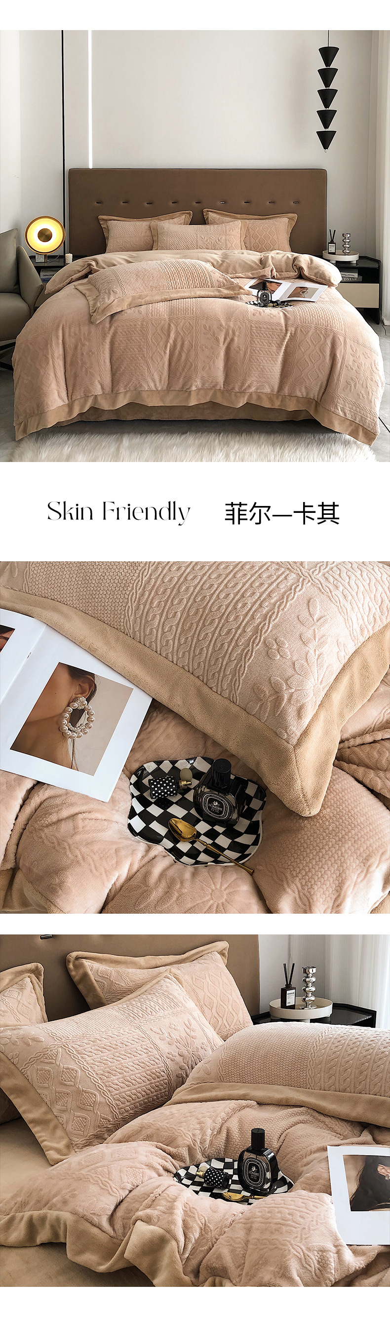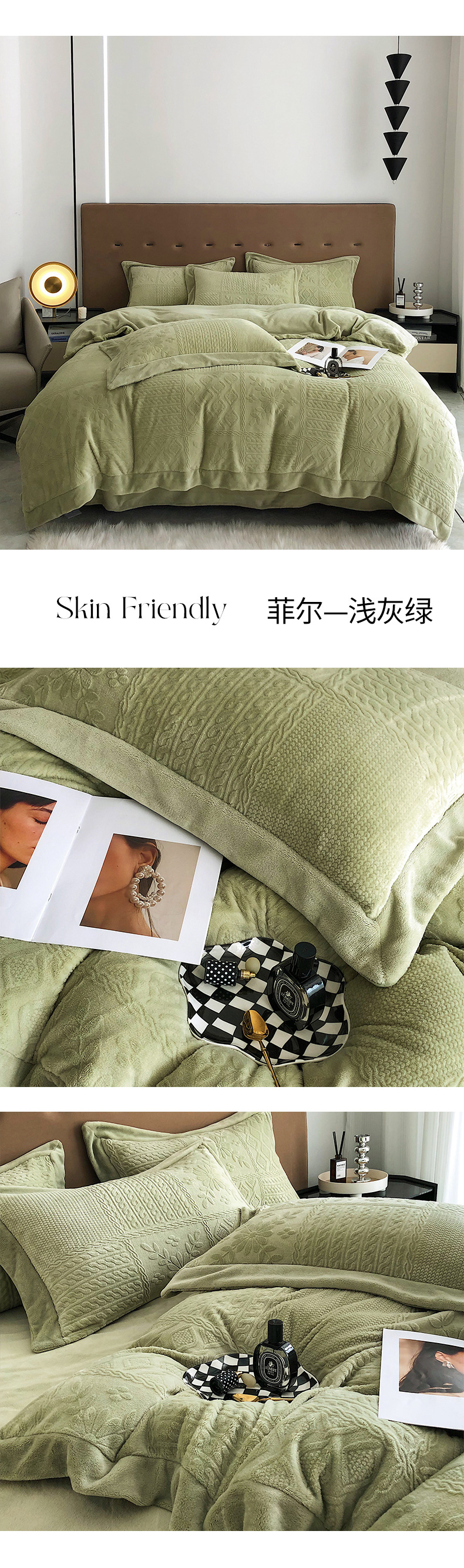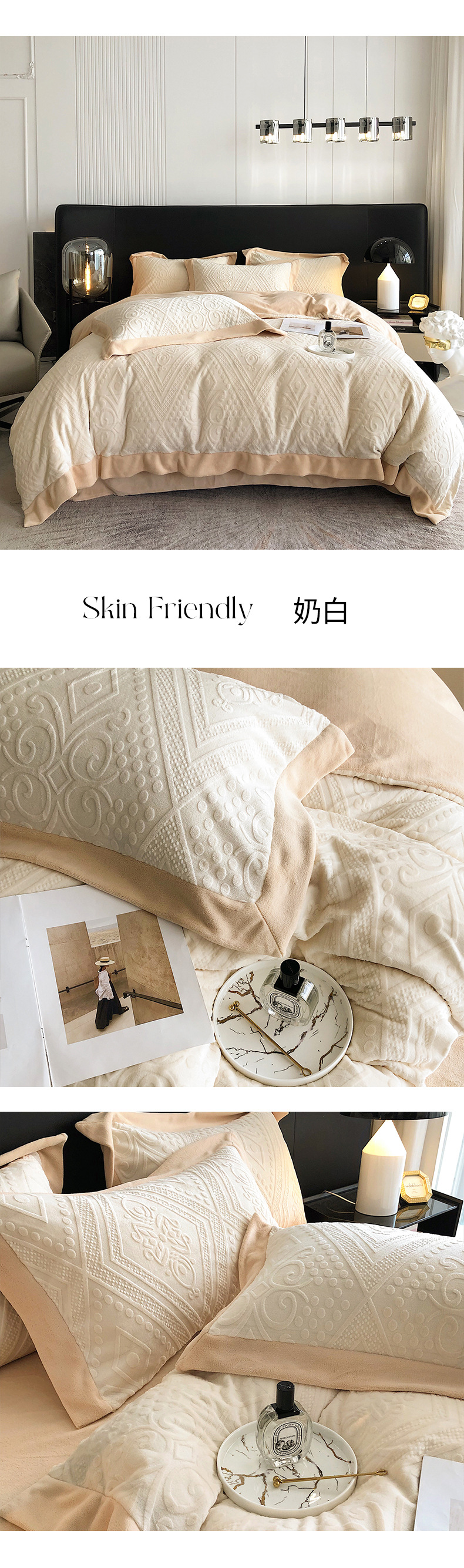 冬季牛奶绒四件套A类母婴级加厚保暖防静电纯色雕花绒法兰绒被套