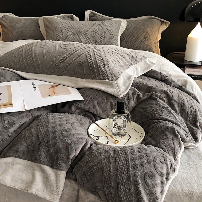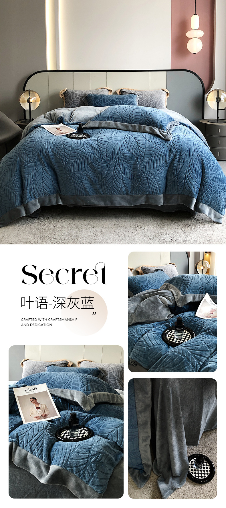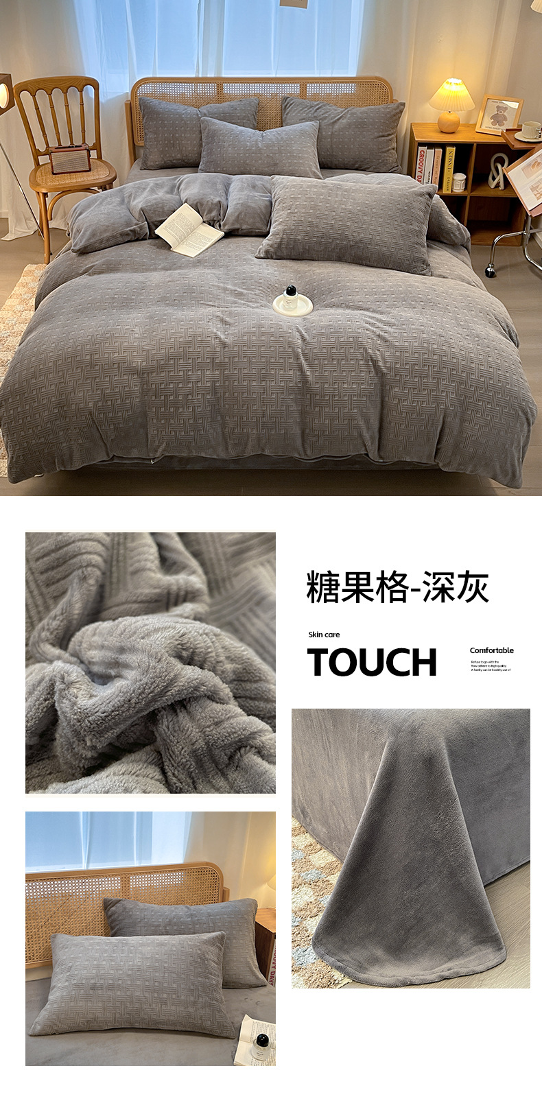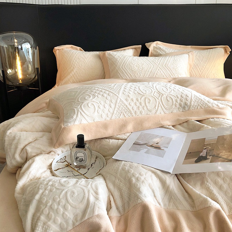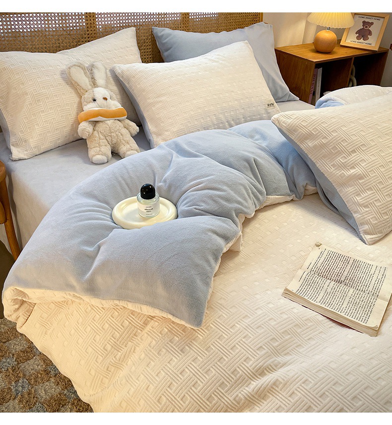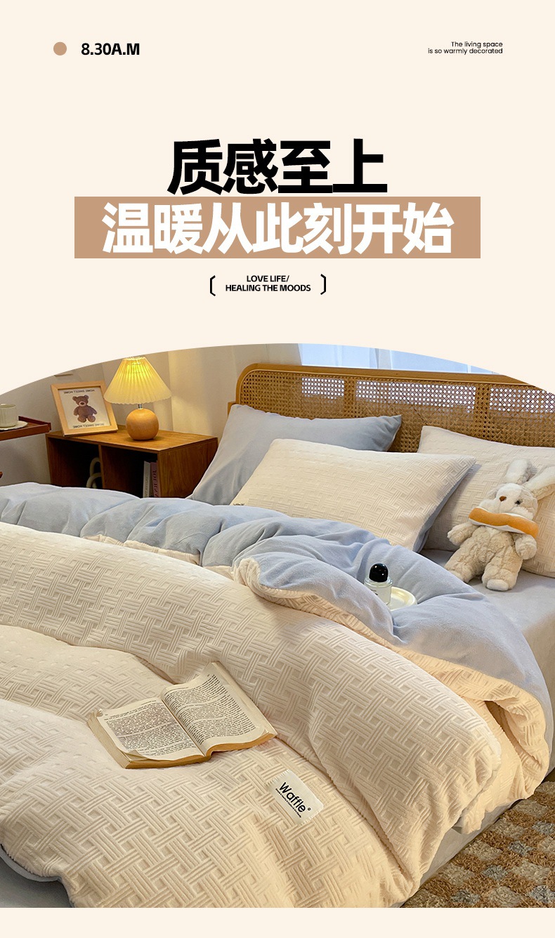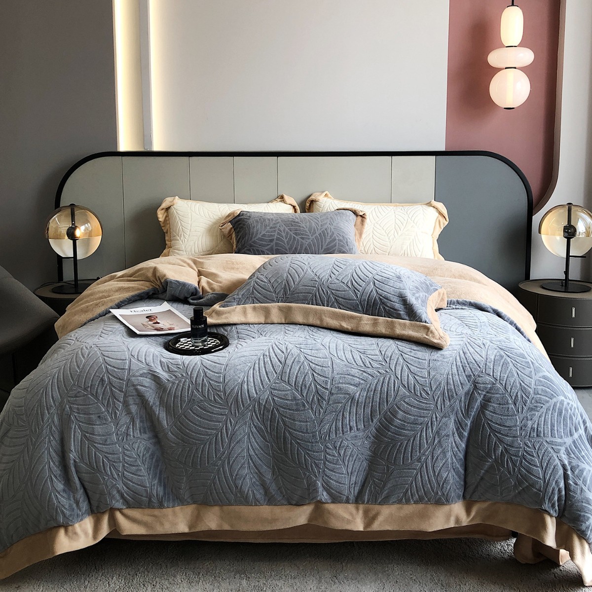 冬季牛奶绒四件套A类母婴级加厚保暖防静电纯色雕花绒法兰绒被套