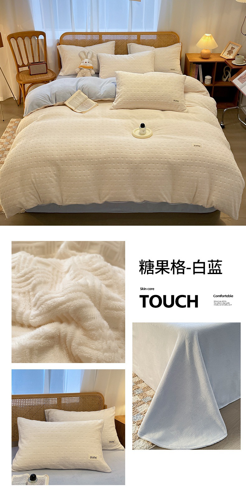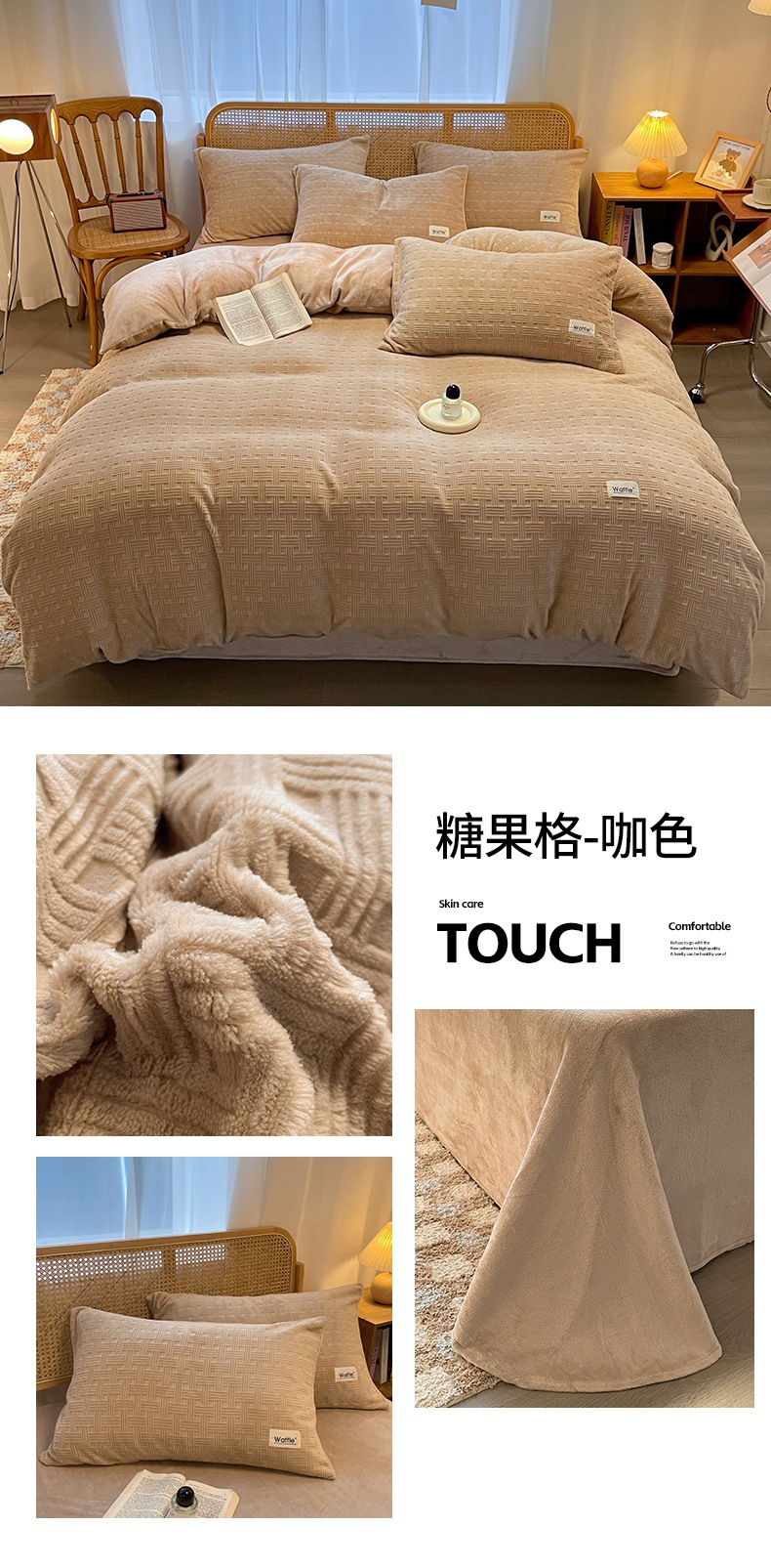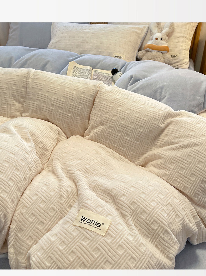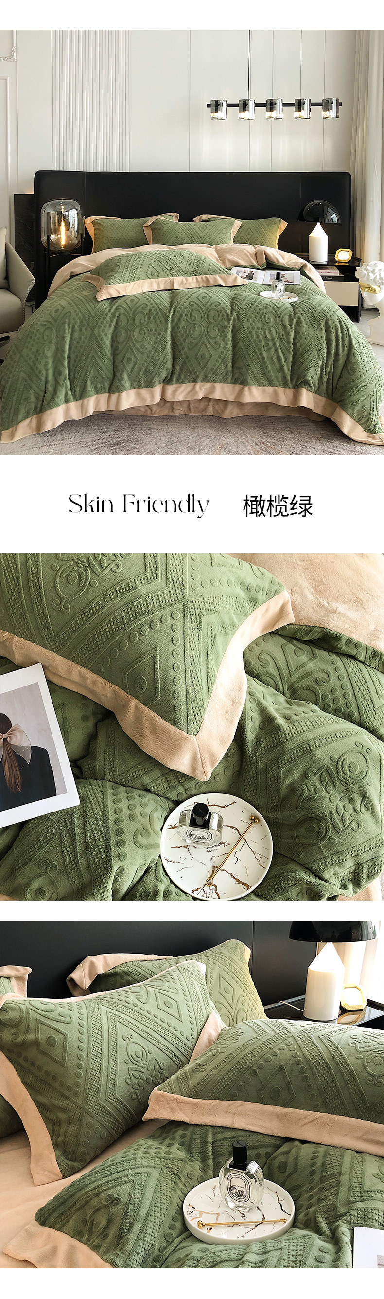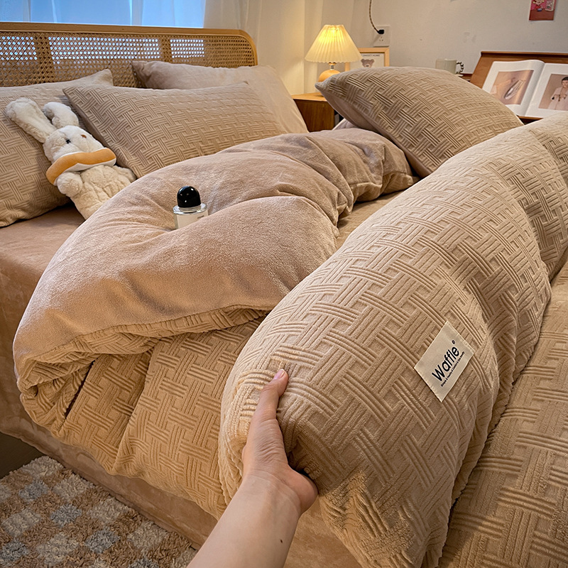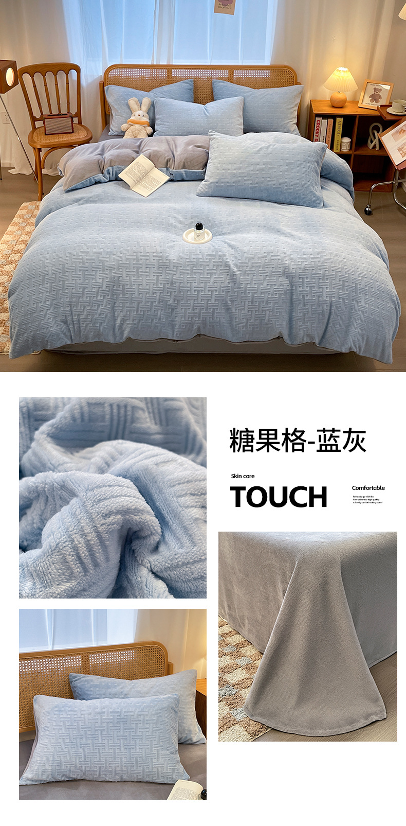 冬季牛奶绒四件套A类母婴级加厚保暖防静电纯色雕花绒法兰绒被套