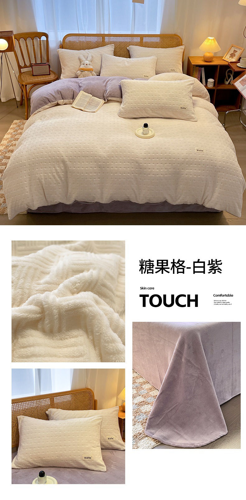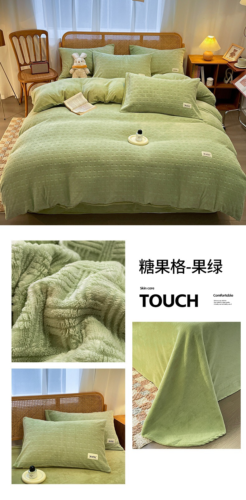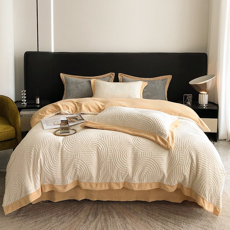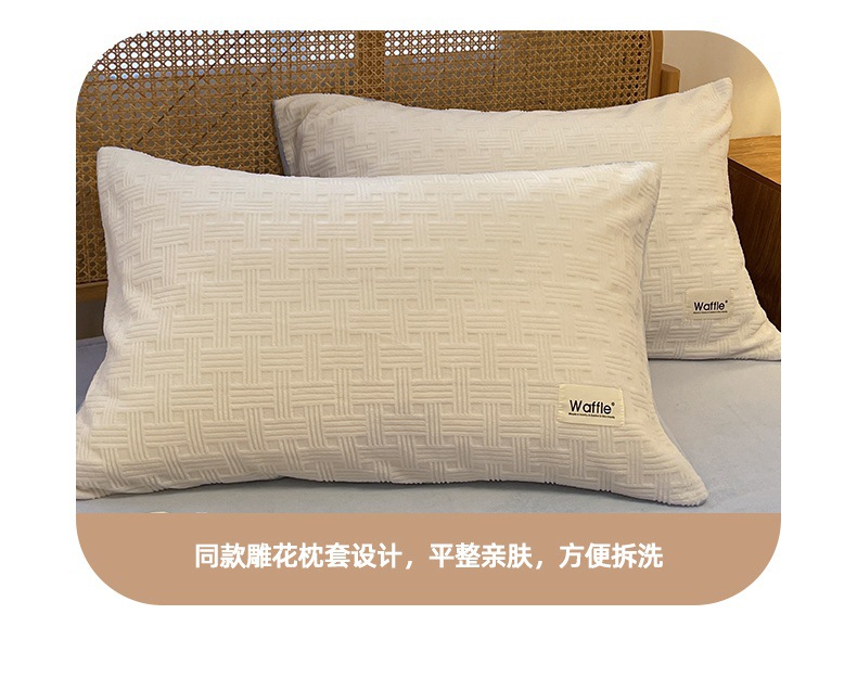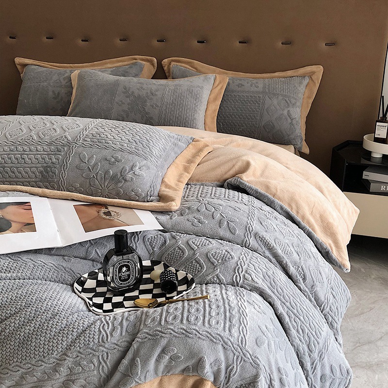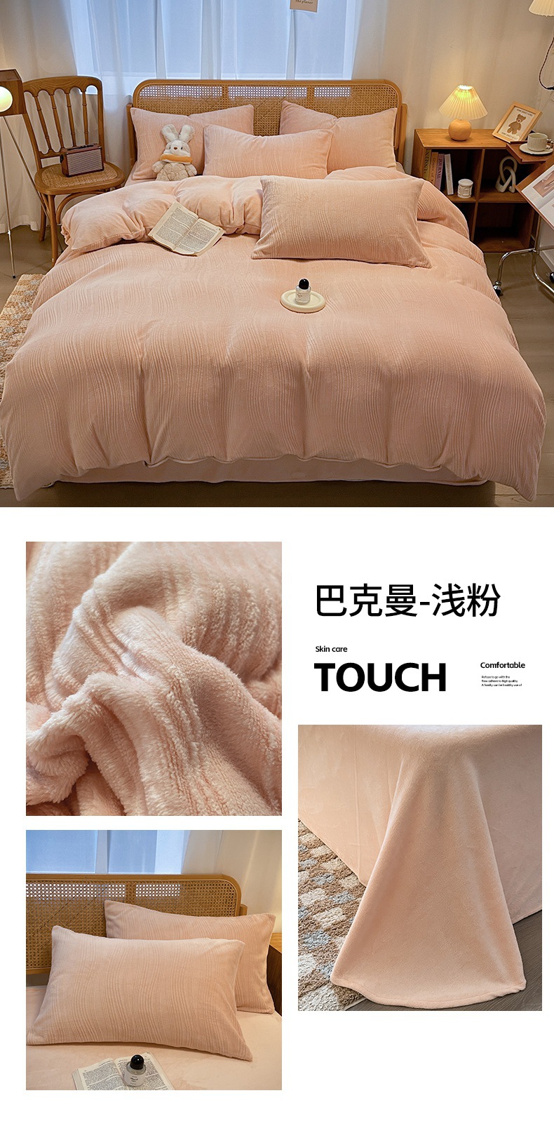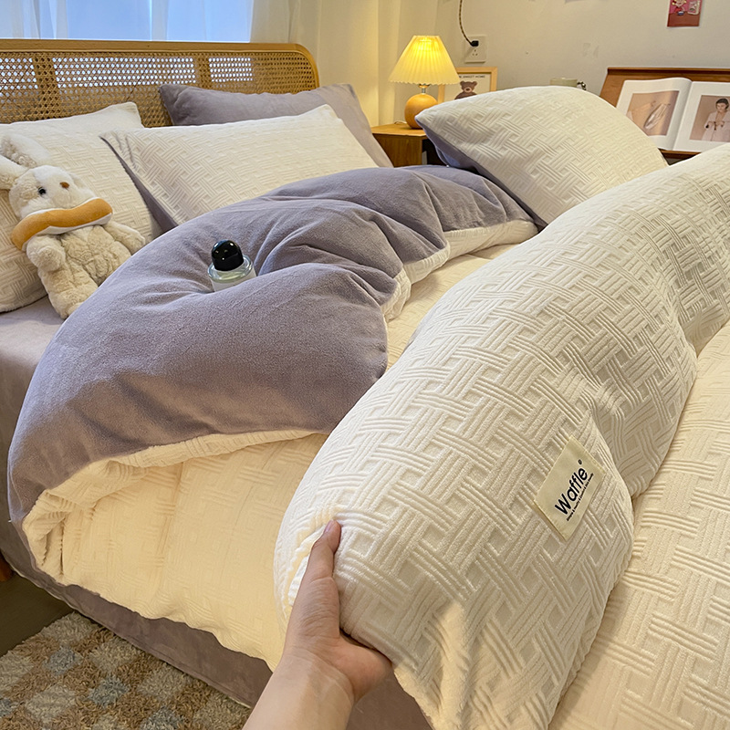 冬季牛奶绒四件套A类母婴级加厚保暖防静电纯色雕花绒法兰绒被套