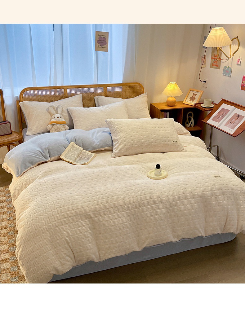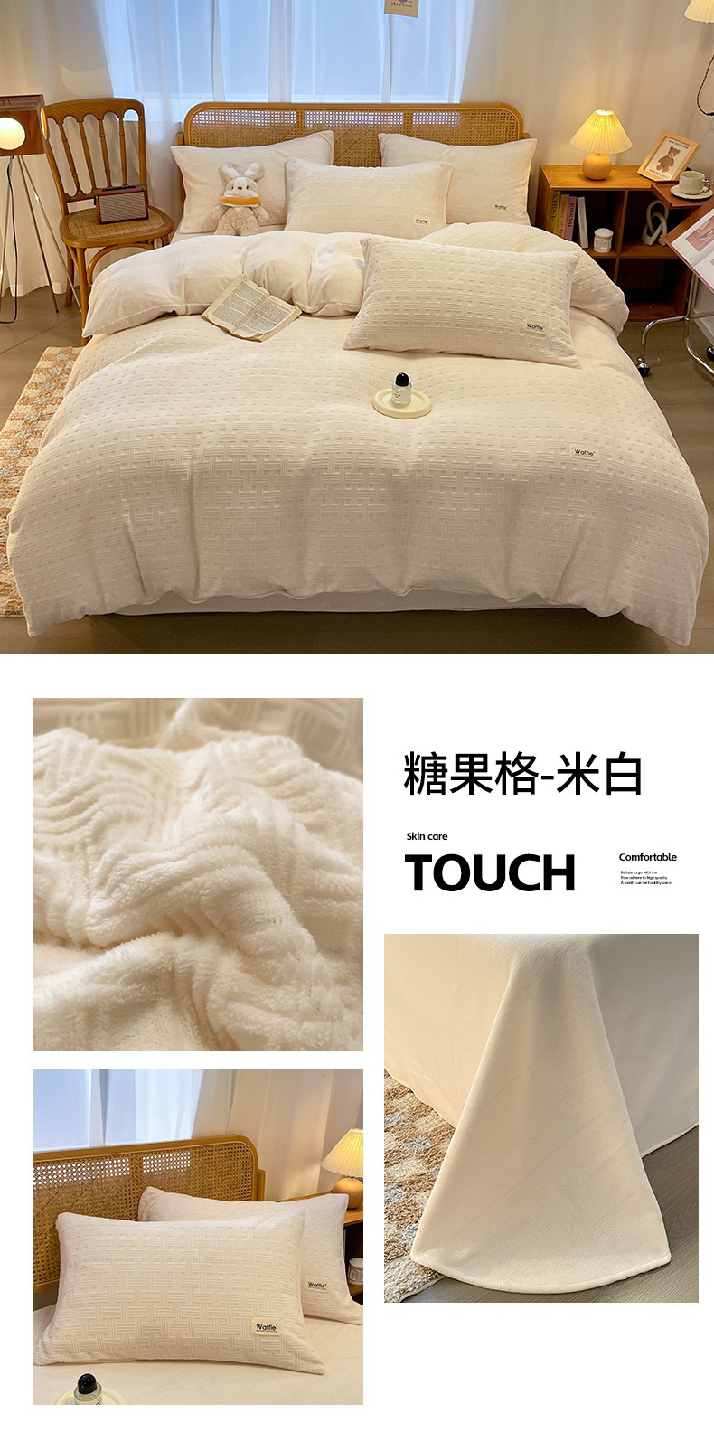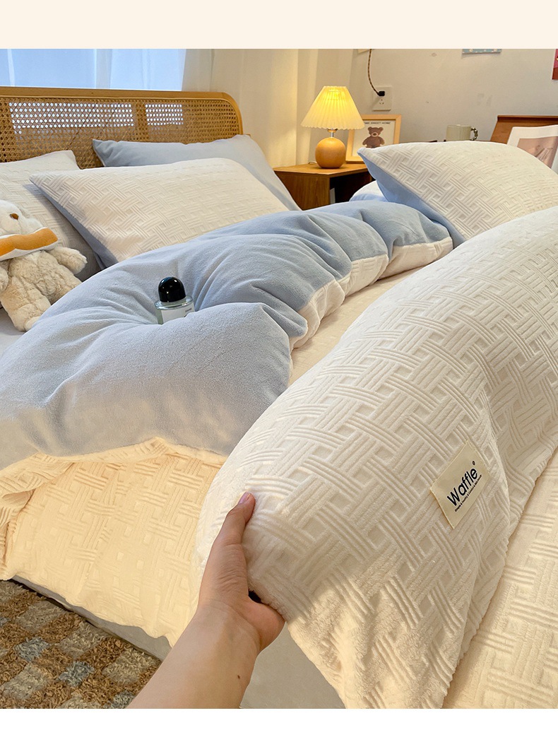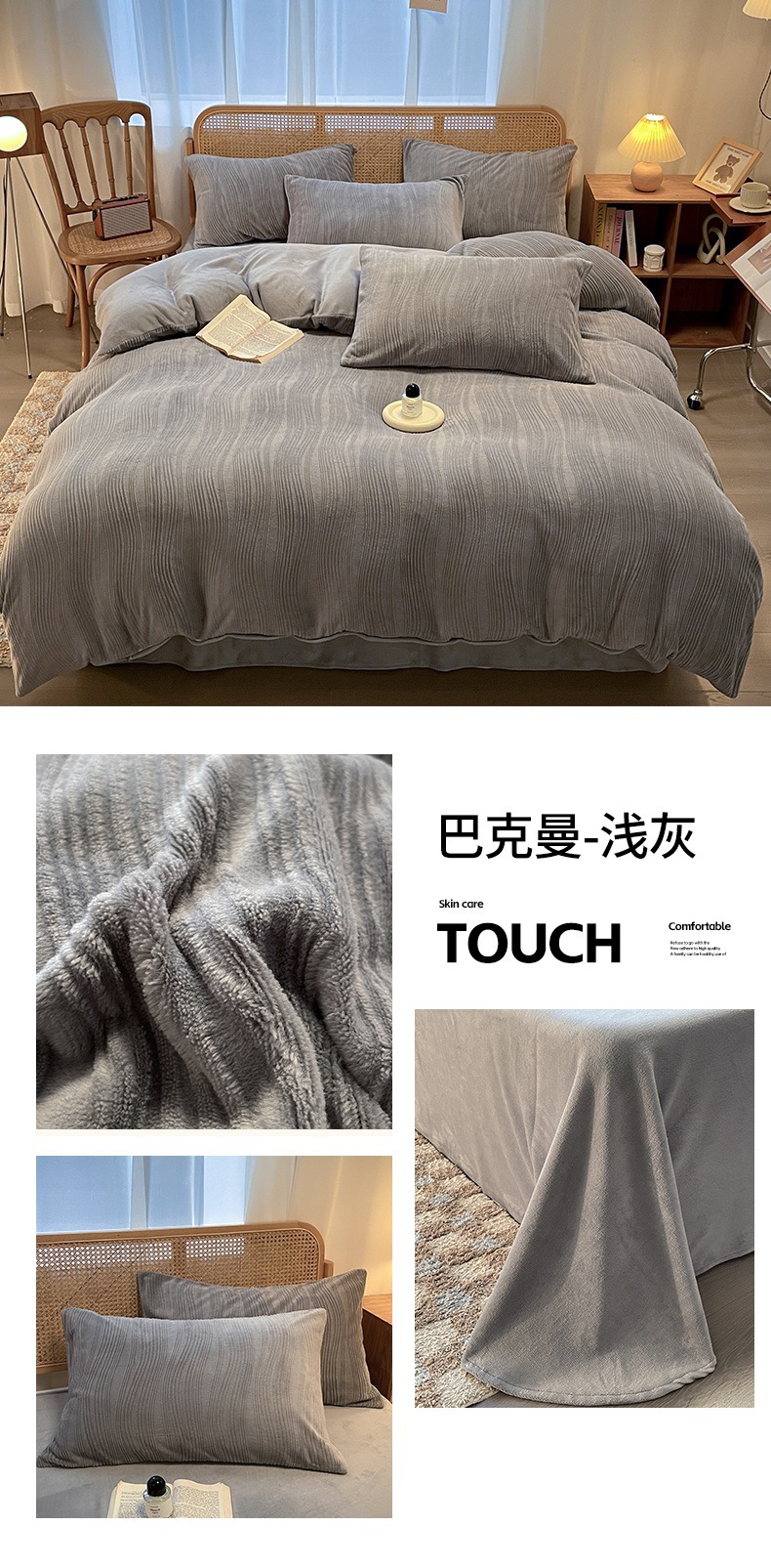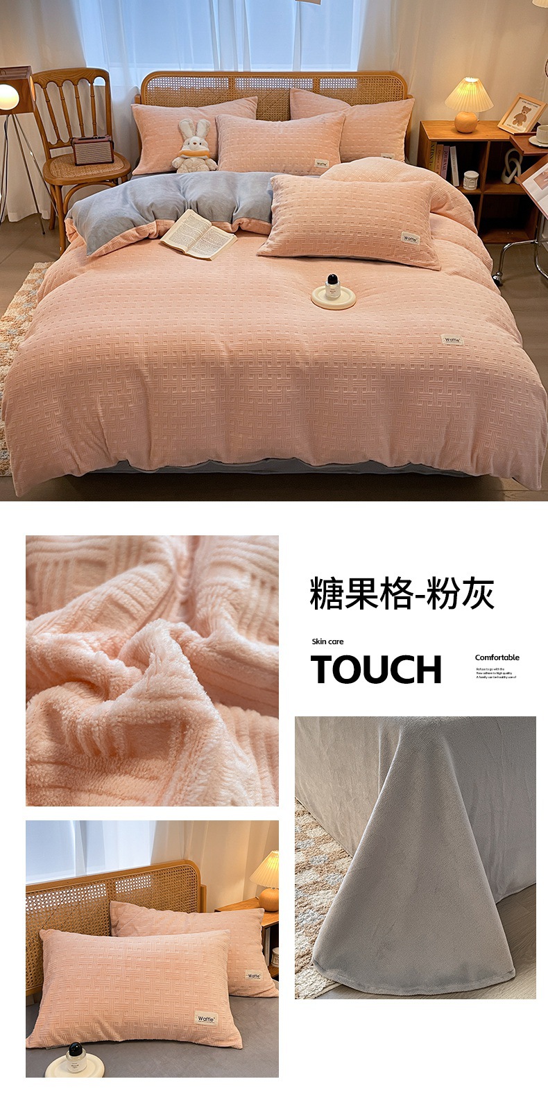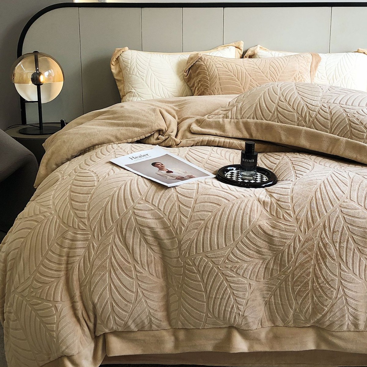 冬季牛奶绒四件套A类母婴级加厚保暖防静电纯色雕花绒法兰绒被套