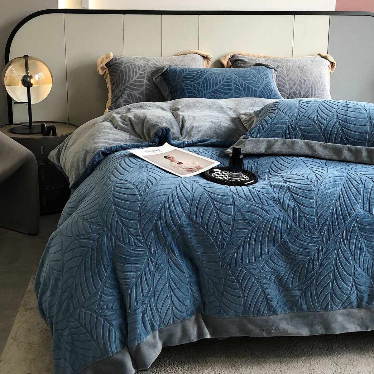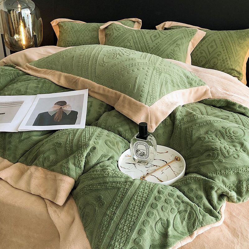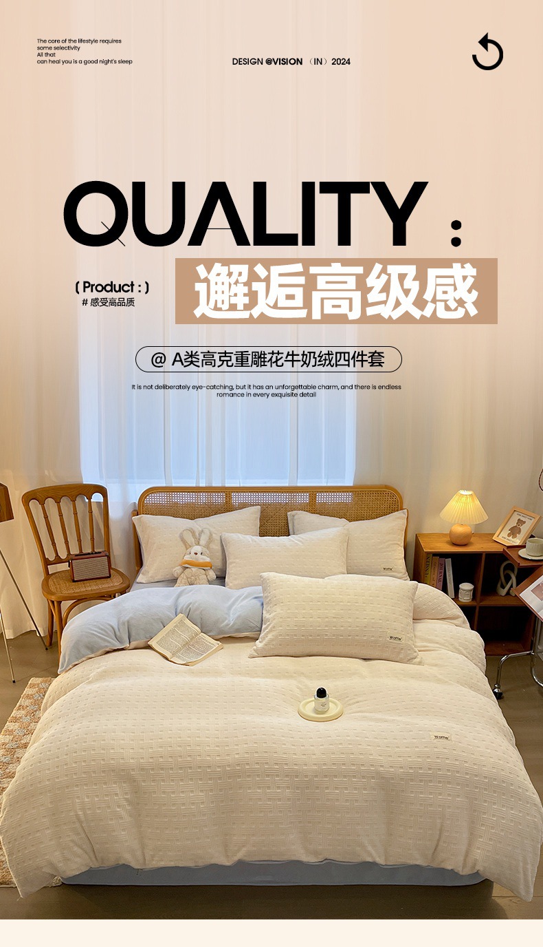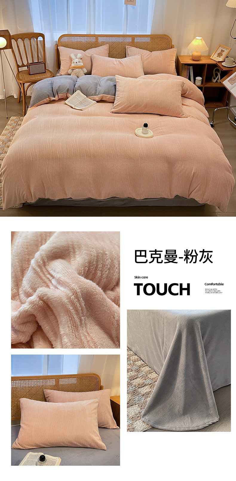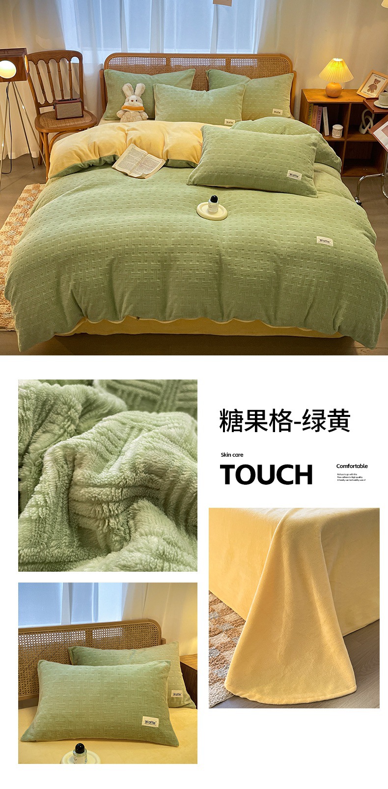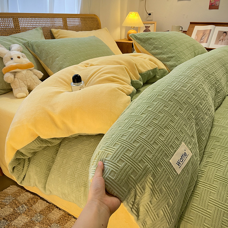 冬季牛奶绒四件套A类母婴级加厚保暖防静电纯色雕花绒法兰绒被套