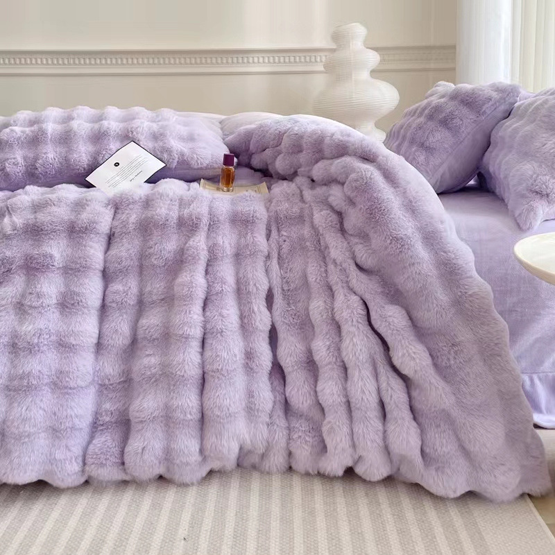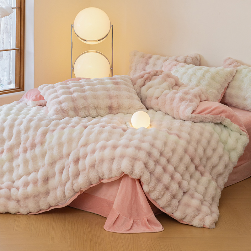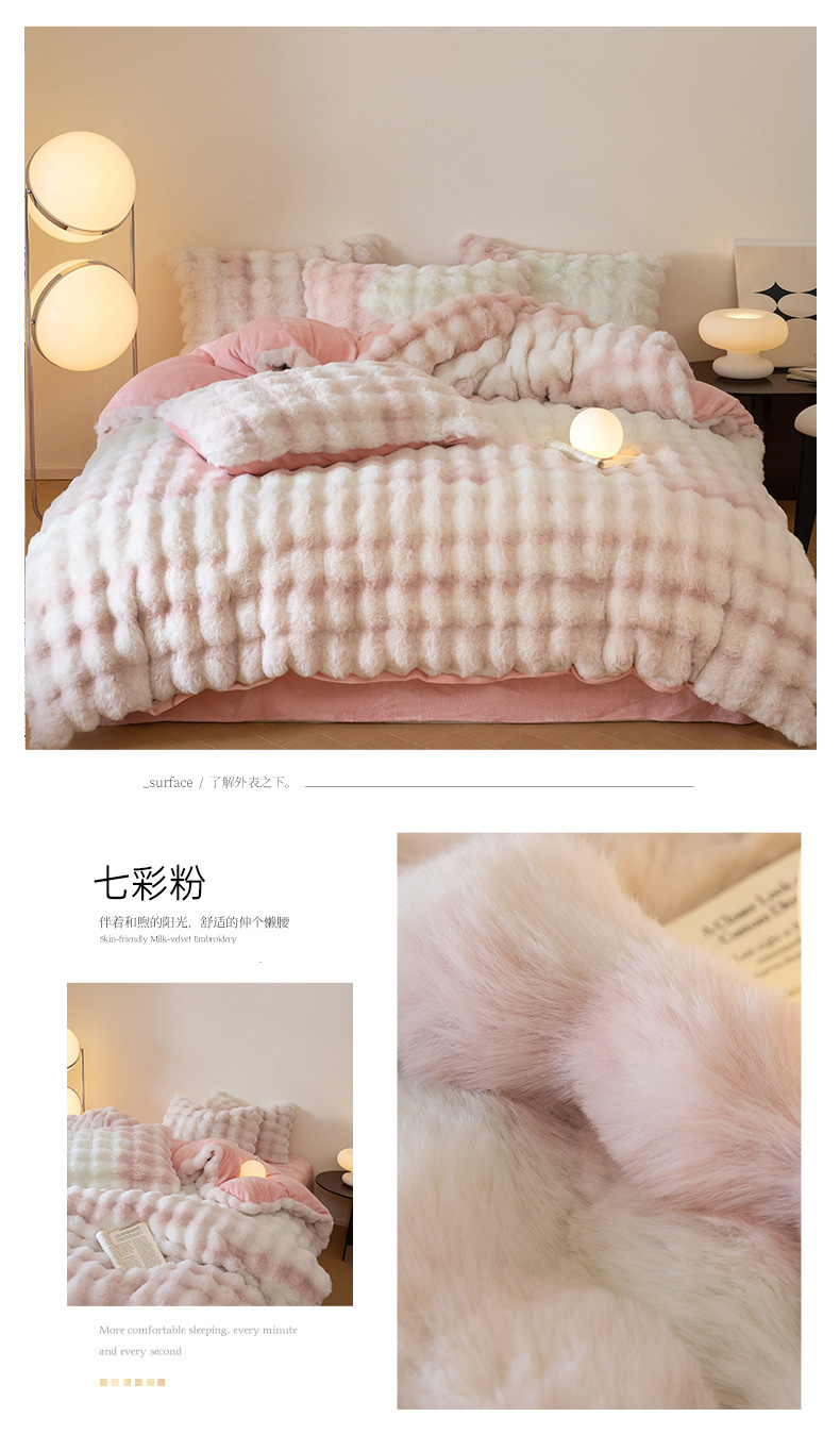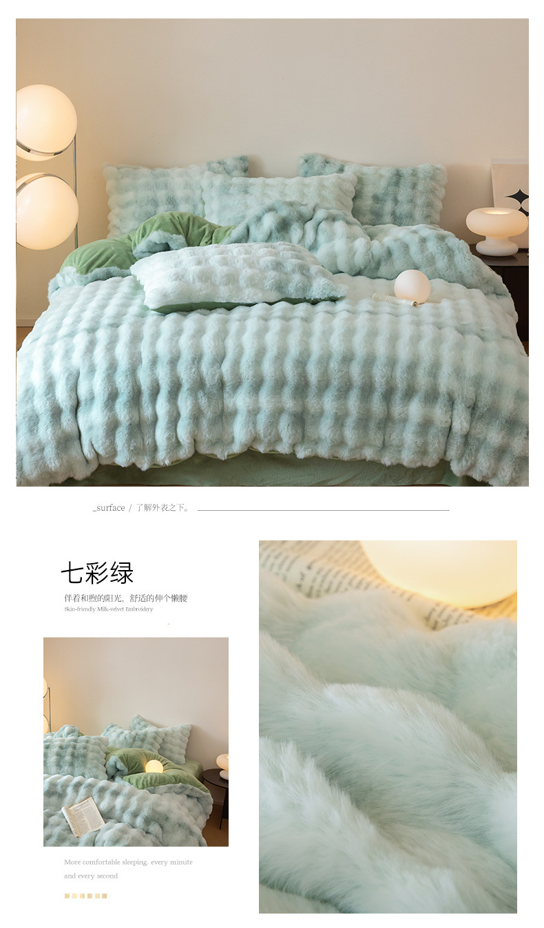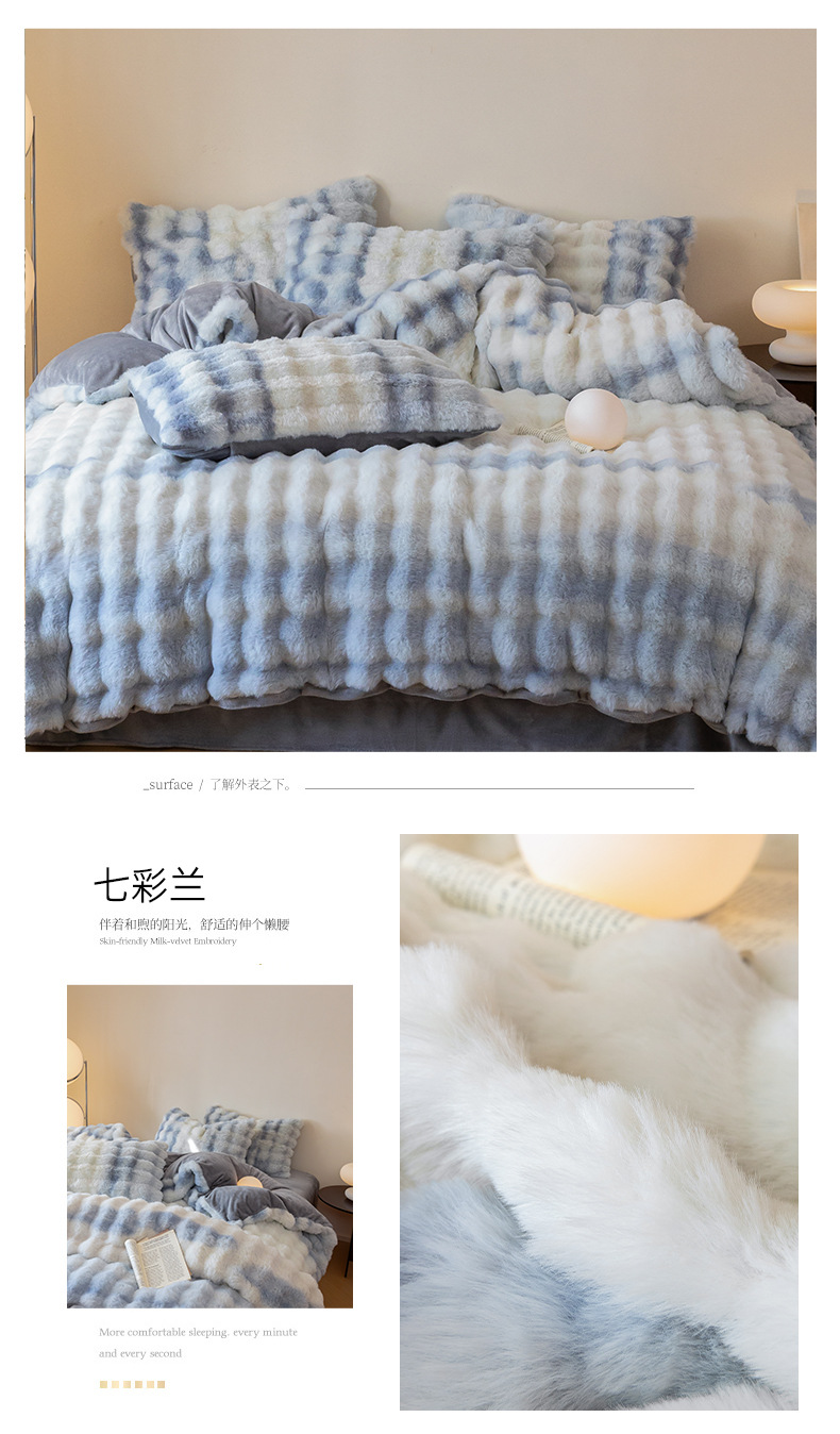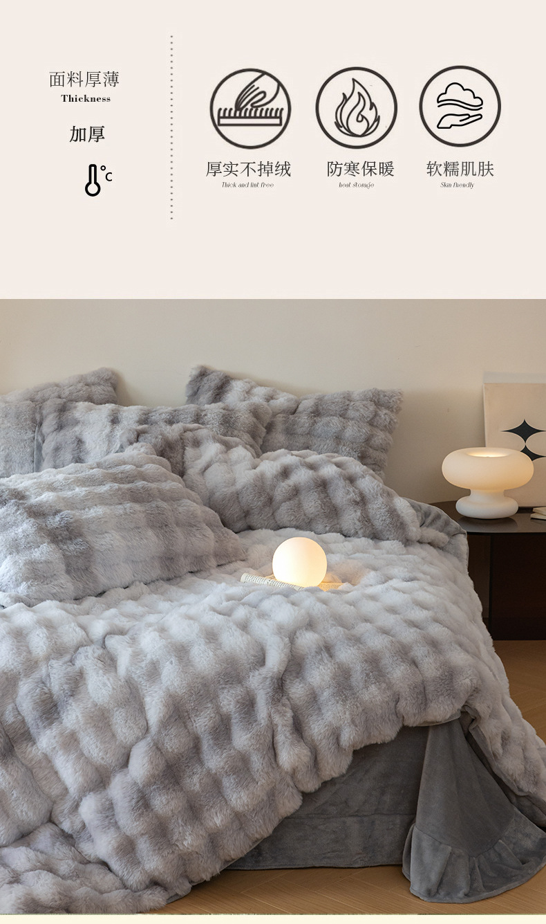 A类獭兔绒高端大泡泡绒双面兔毛绒牛奶绒四件套母婴级高克重保暖
