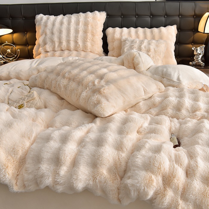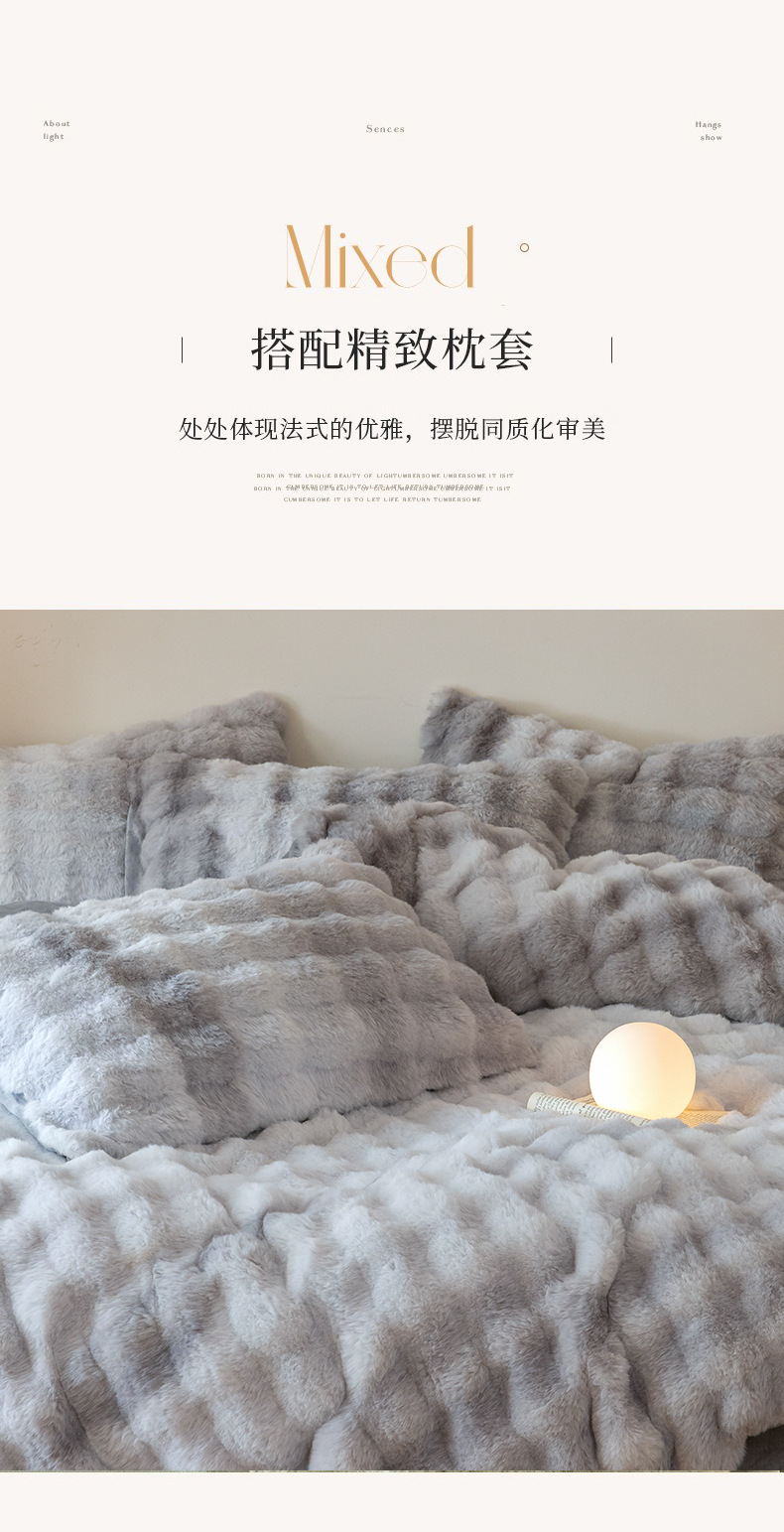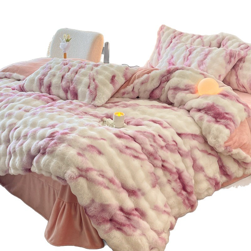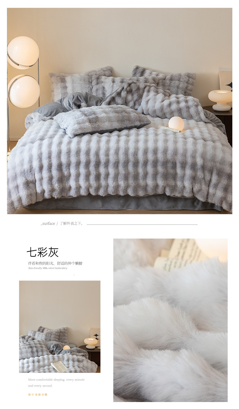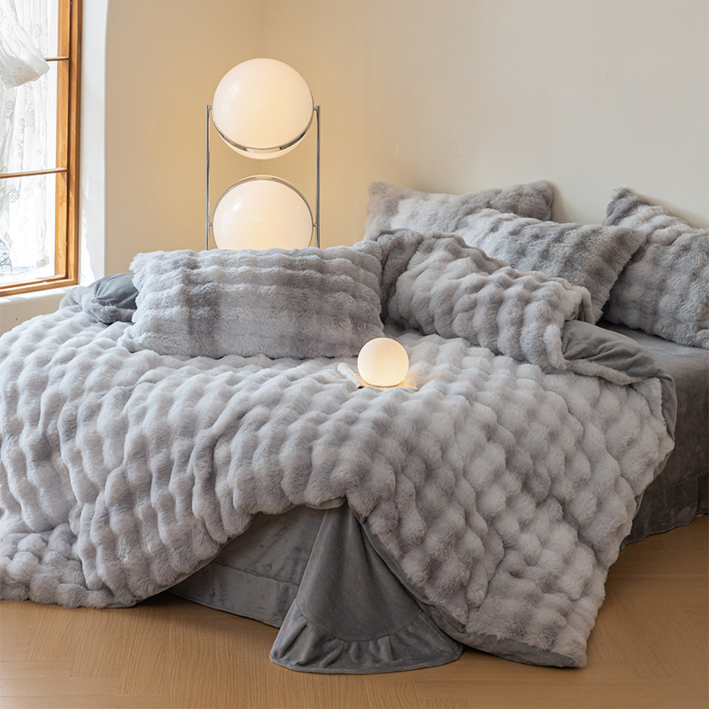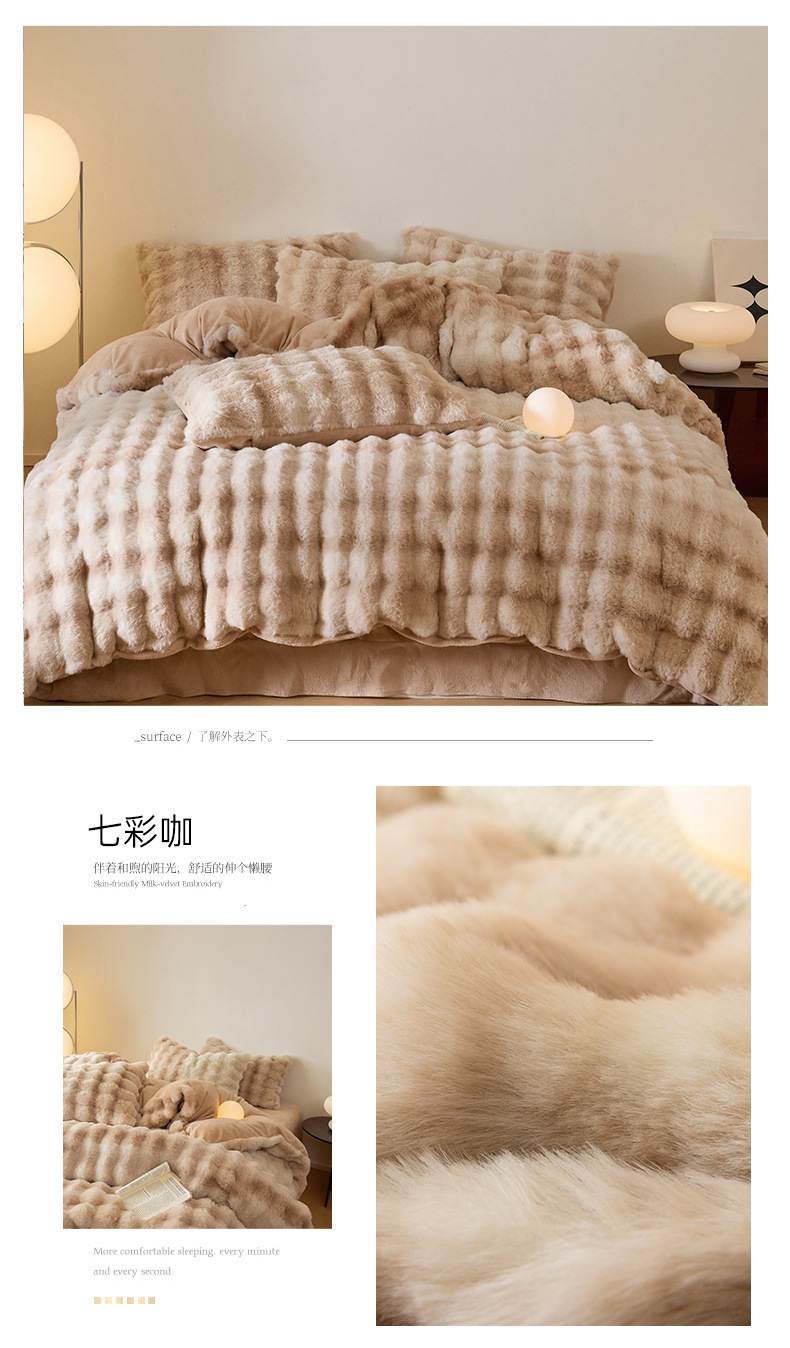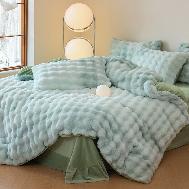 A类獭兔绒高端大泡泡绒双面兔毛绒牛奶绒四件套母婴级高克重保暖