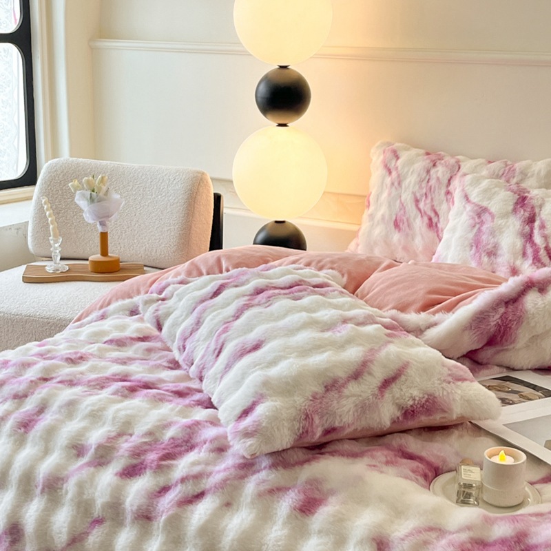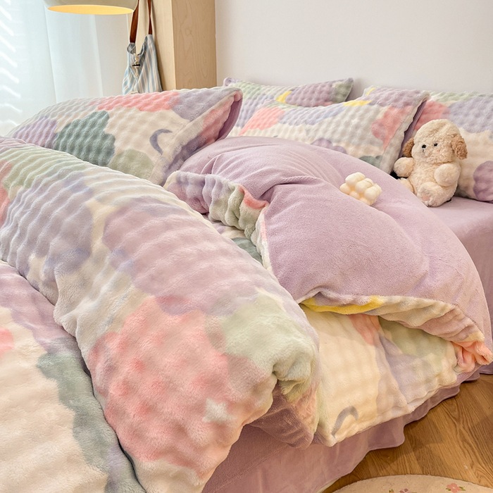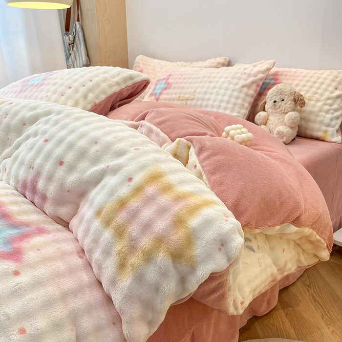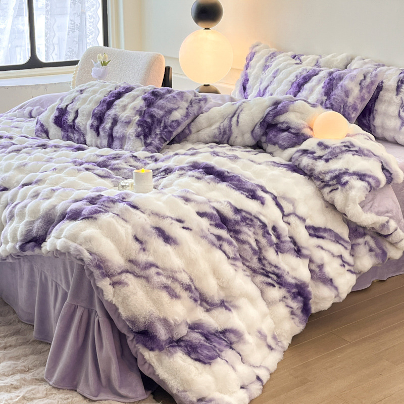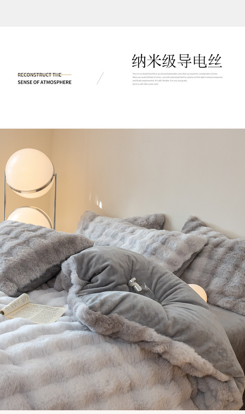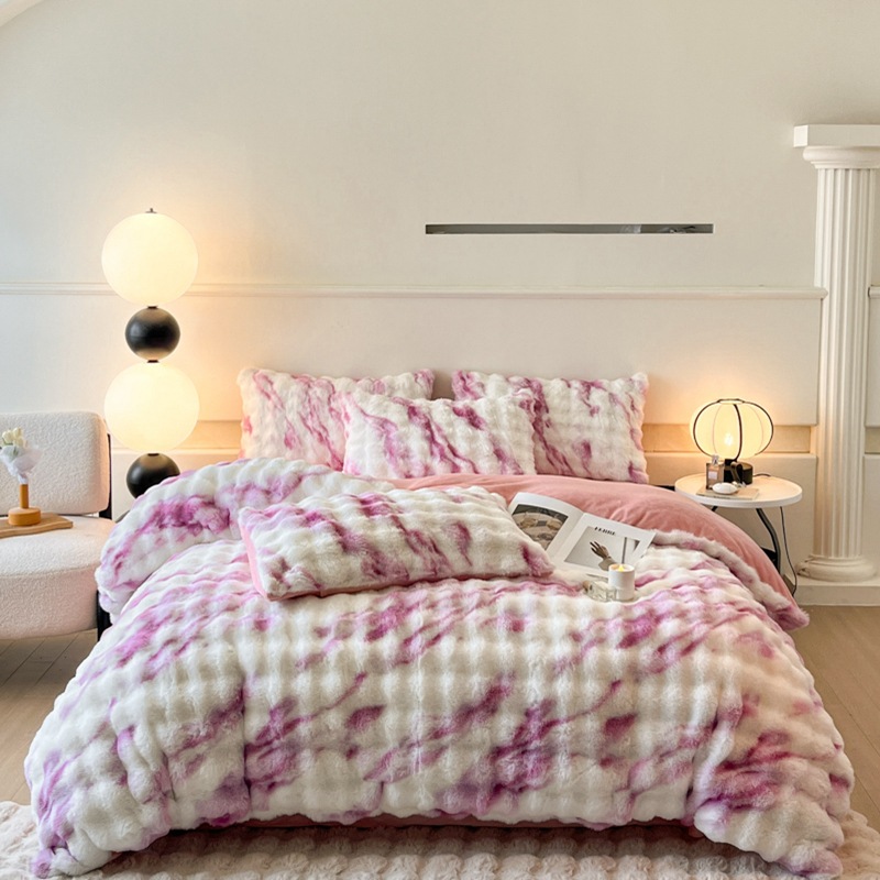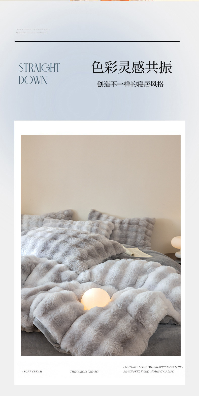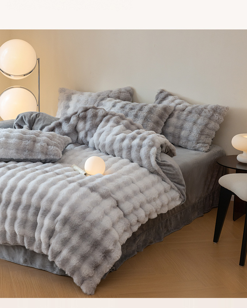 A类獭兔绒高端大泡泡绒双面兔毛绒牛奶绒四件套母婴级高克重保暖