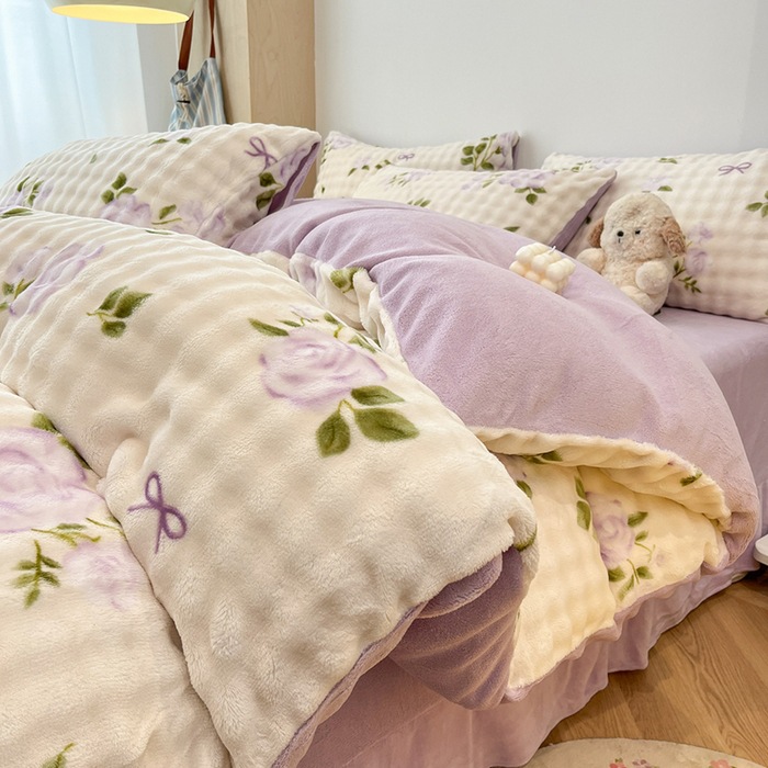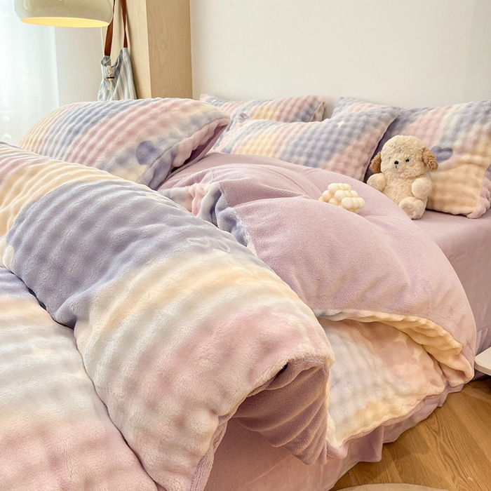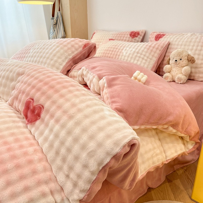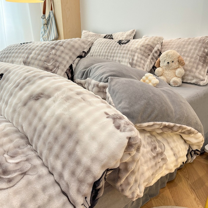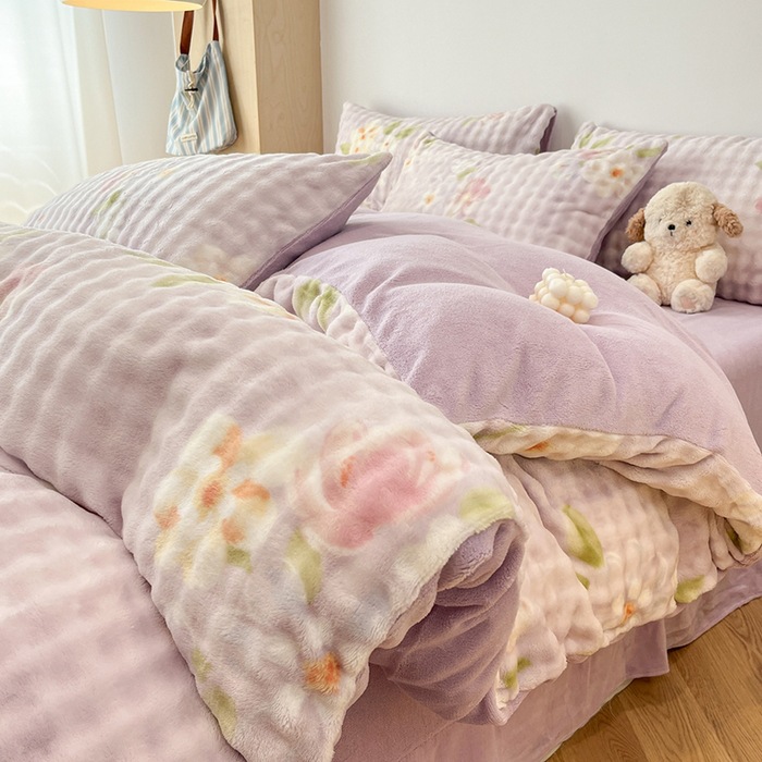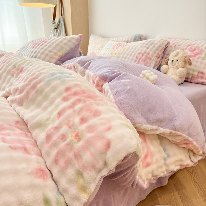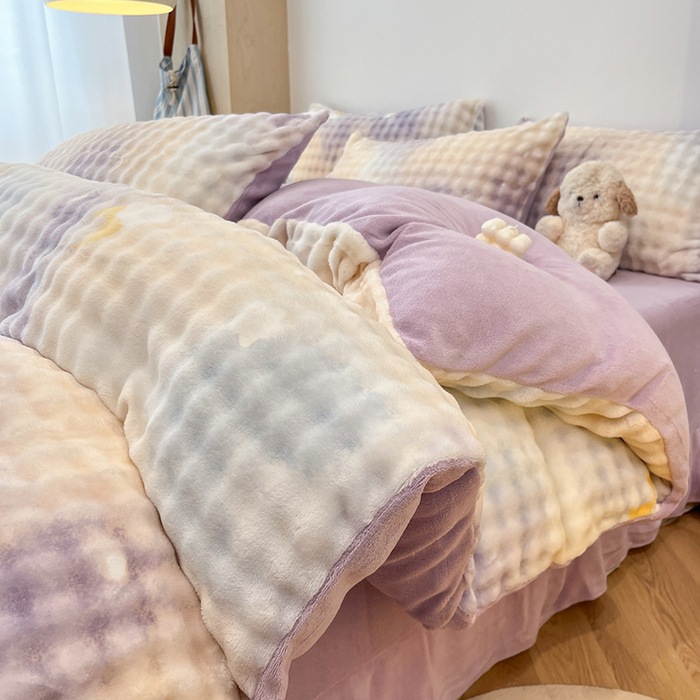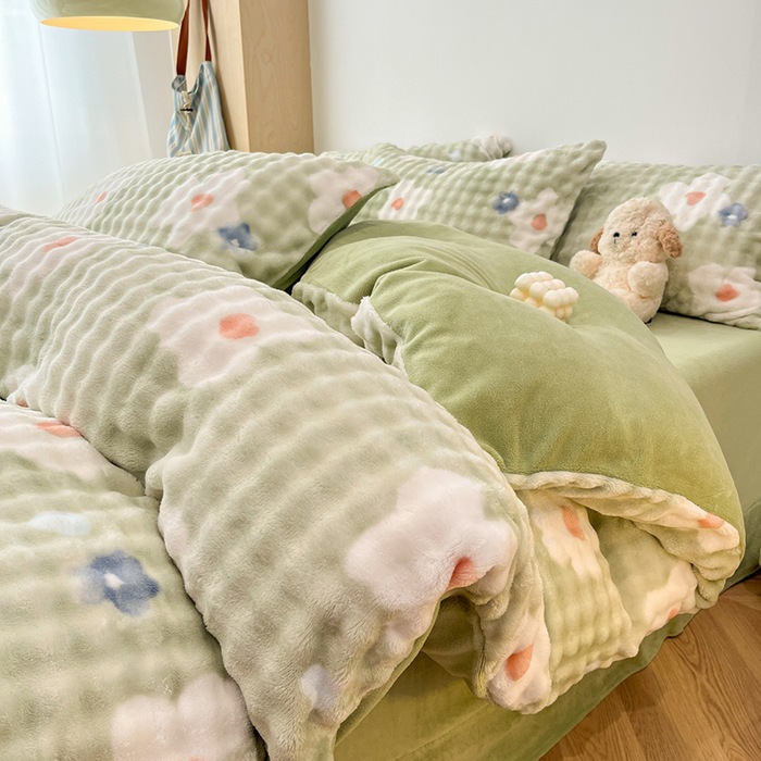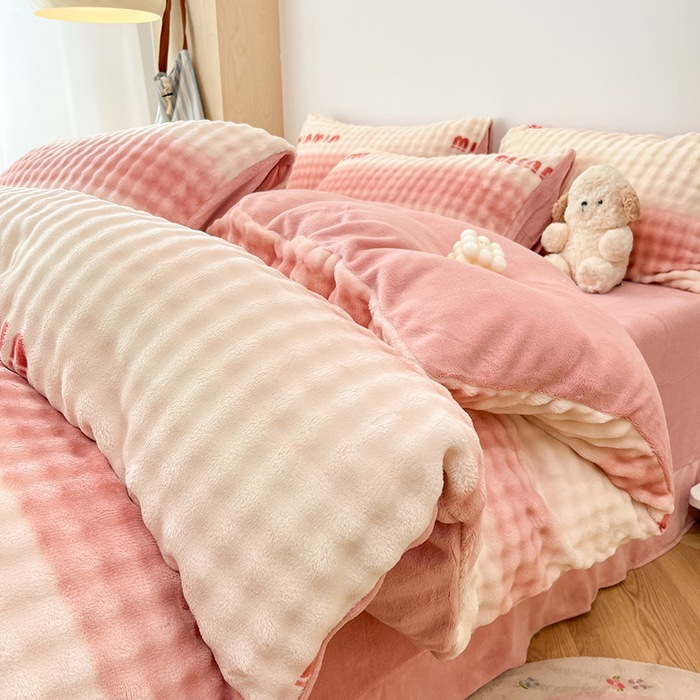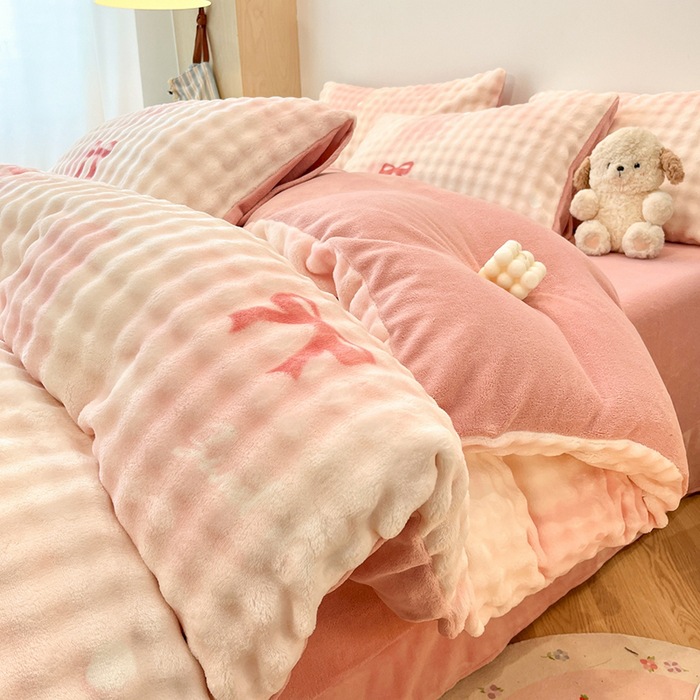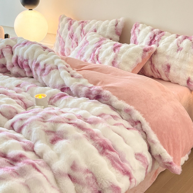 A类獭兔绒高端大泡泡绒双面兔毛绒牛奶绒四件套母婴级高克重保暖