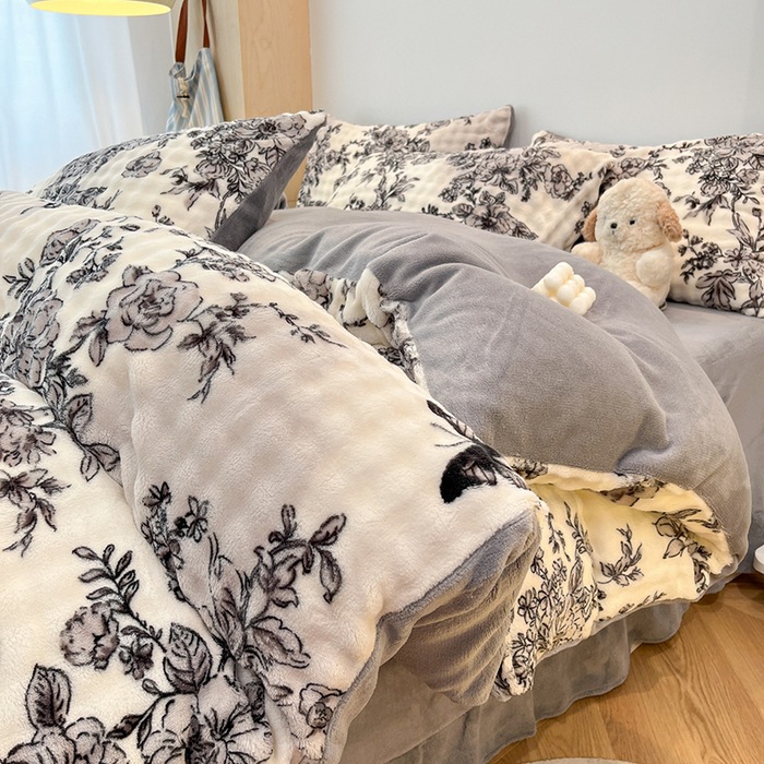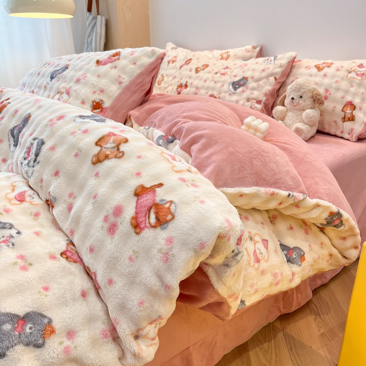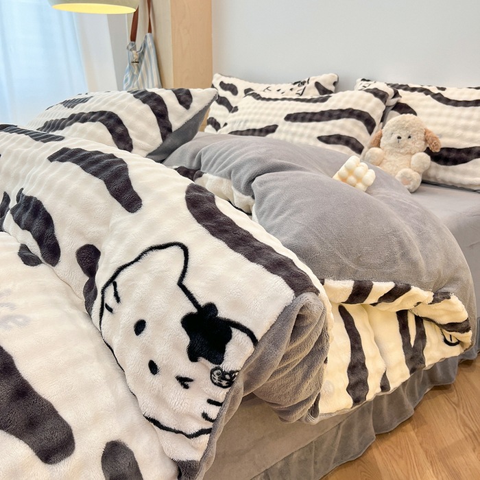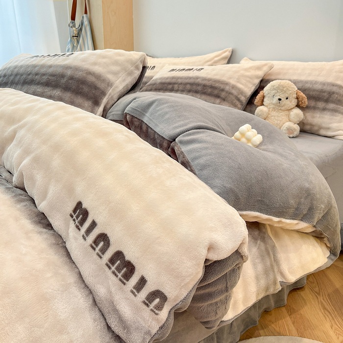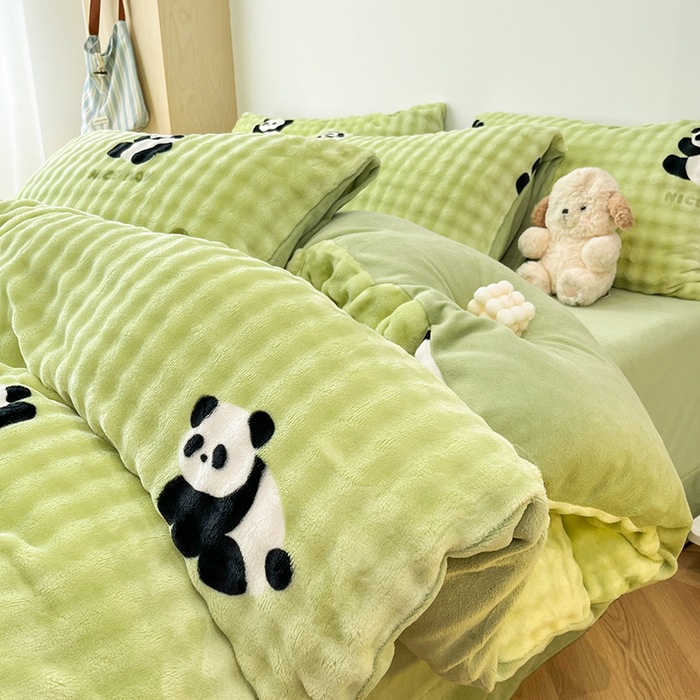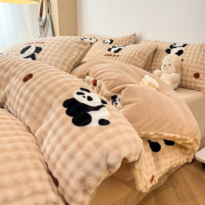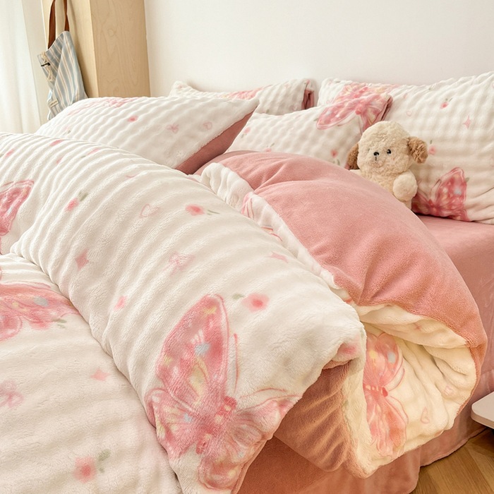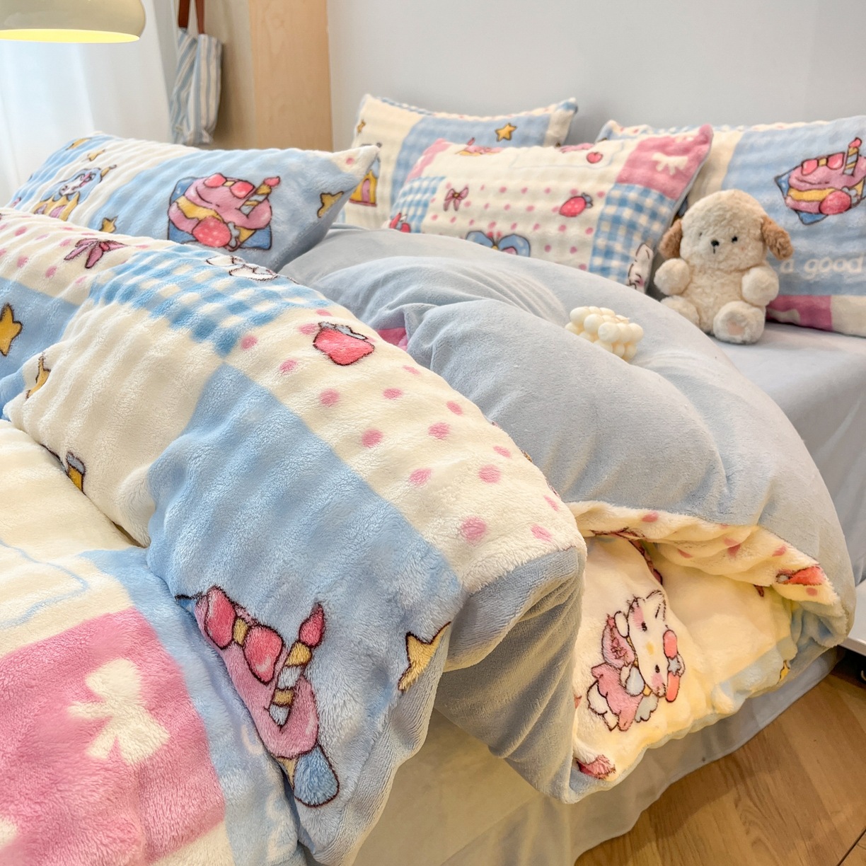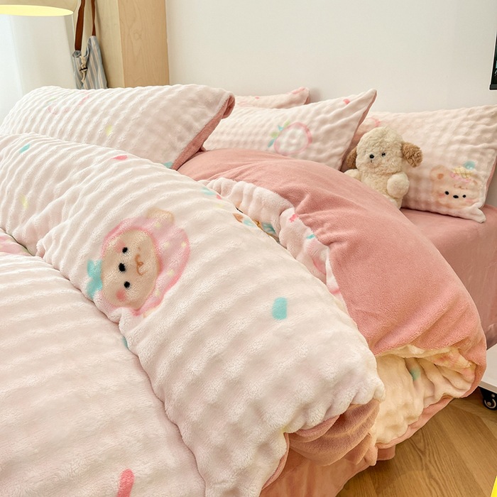 A类獭兔绒高端大泡泡绒双面兔毛绒牛奶绒四件套母婴级高克重保暖