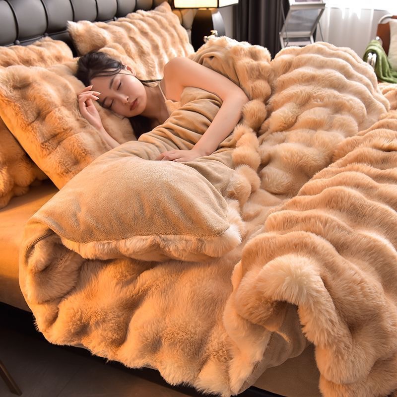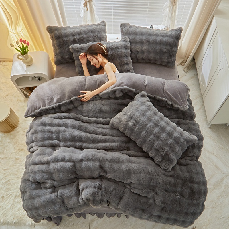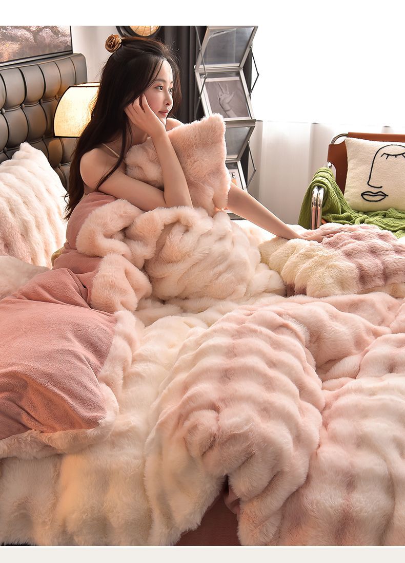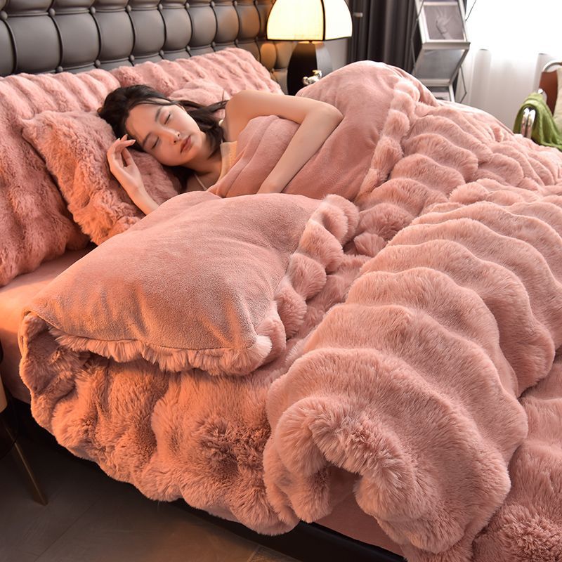 a类仿兔绒四件套母婴级冬季保暖床上珊瑚绒床单被套三件套家纺