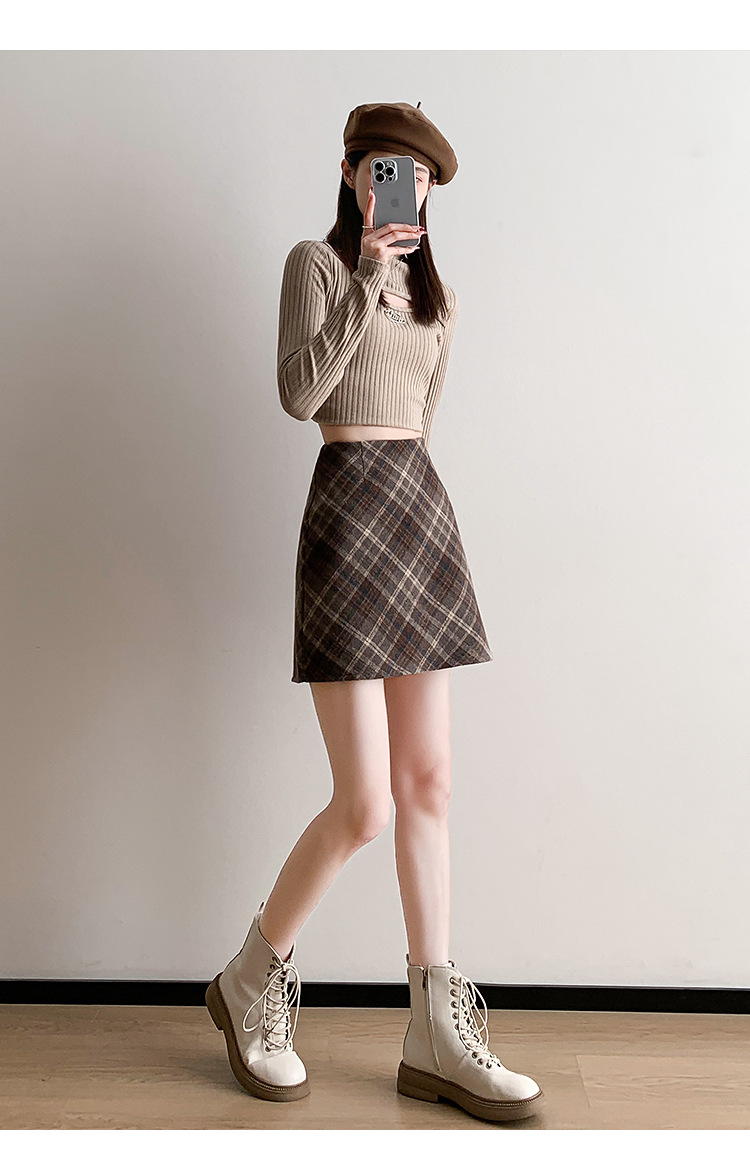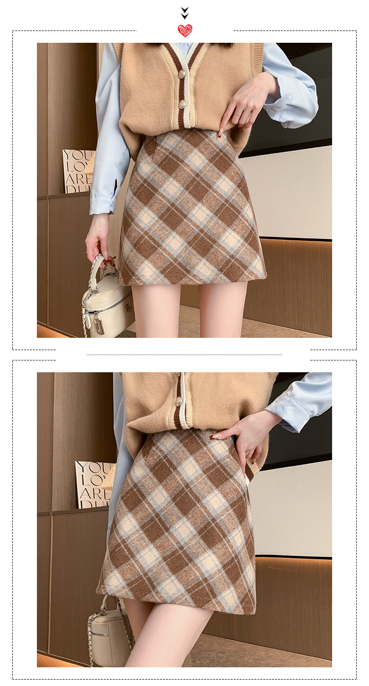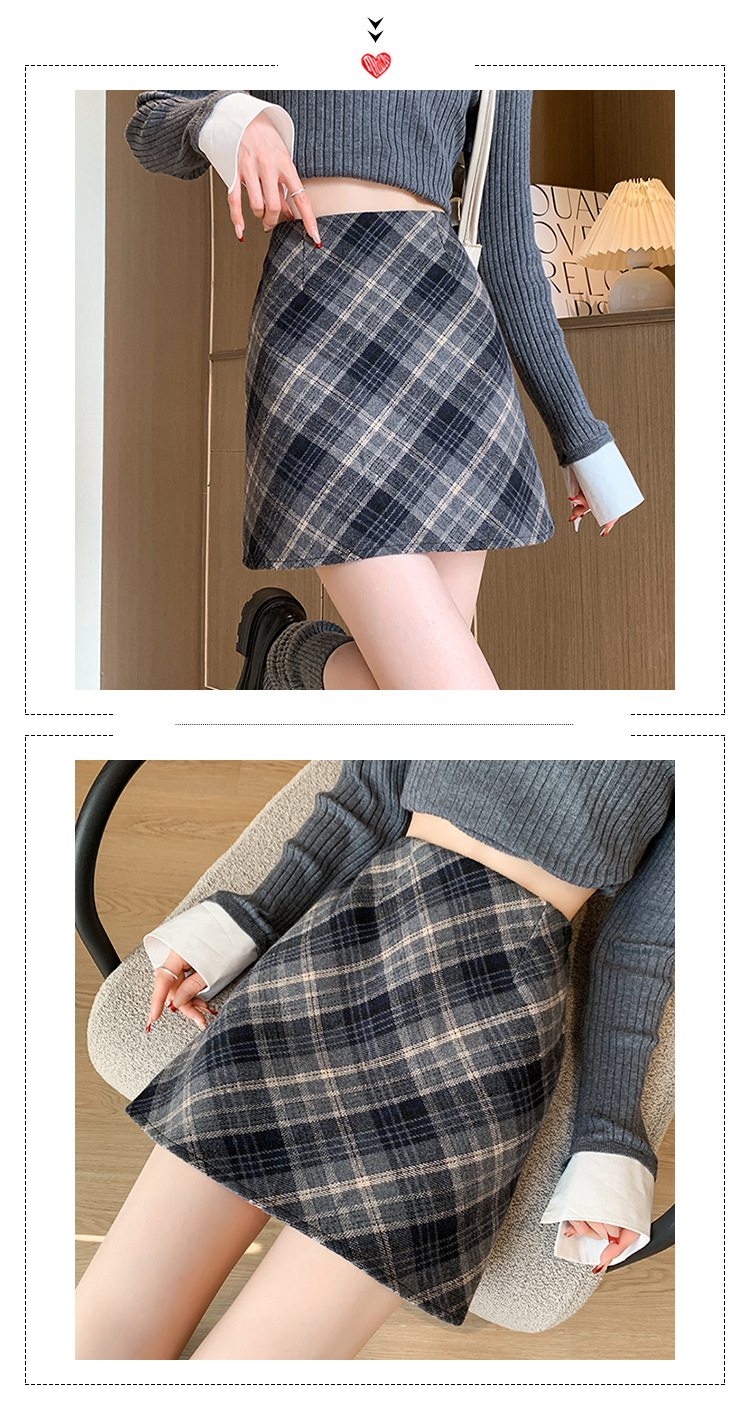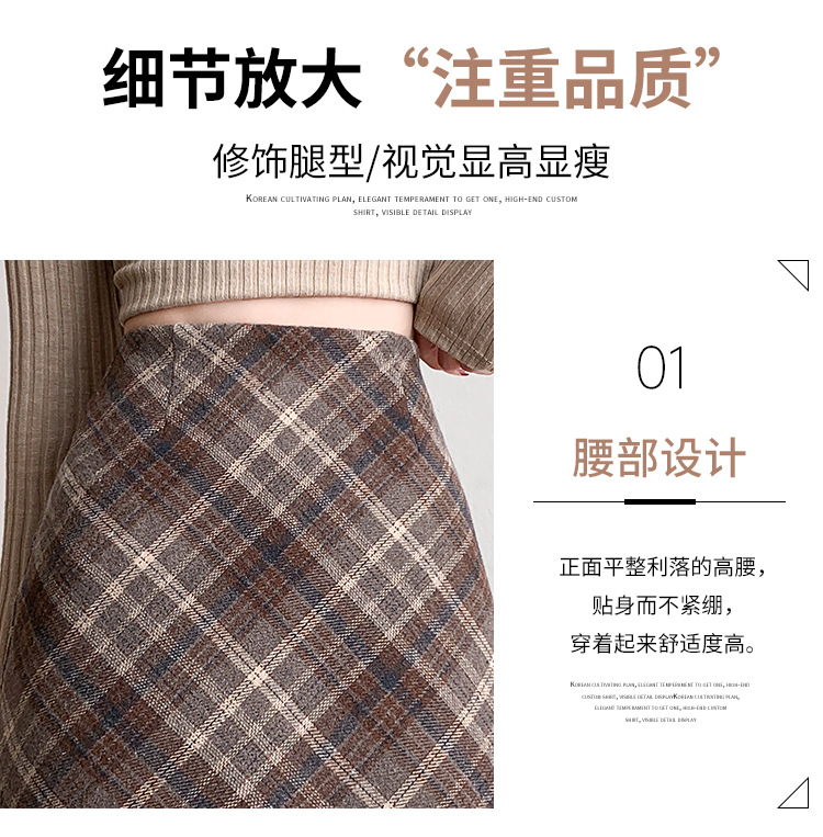 毛呢半身裙2025秋冬新款短裙女高腰显瘦小个子A字复古格子包臀裙