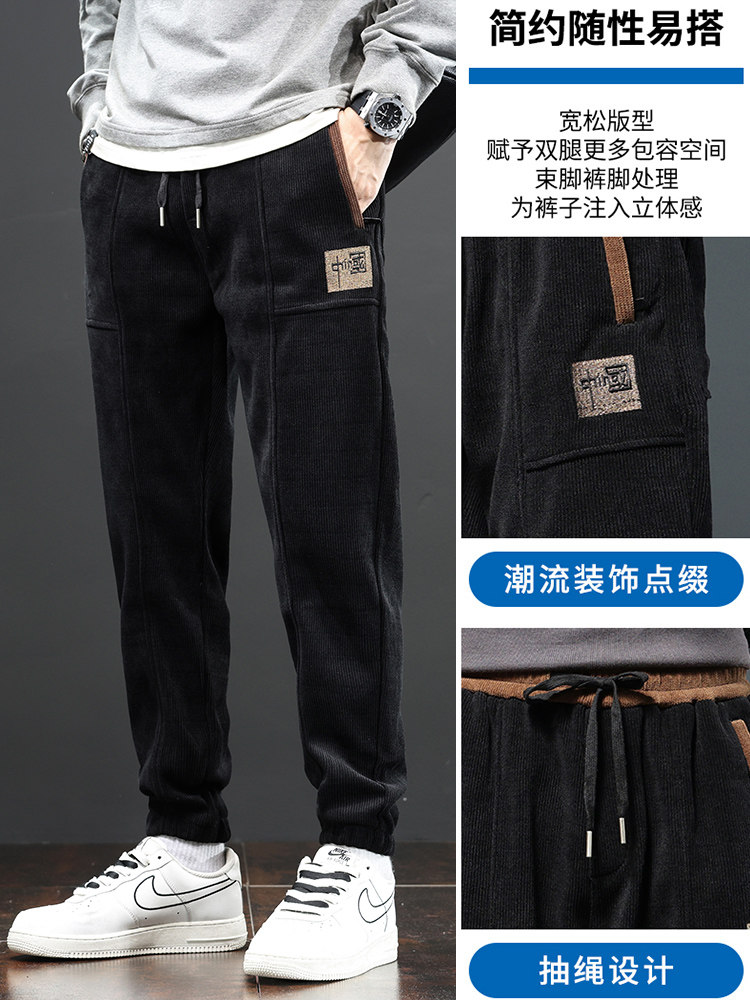 2025秋季男士休闲裤博奥绒宽松春秋新款长裤子欧棉绒弹力男生卫裤