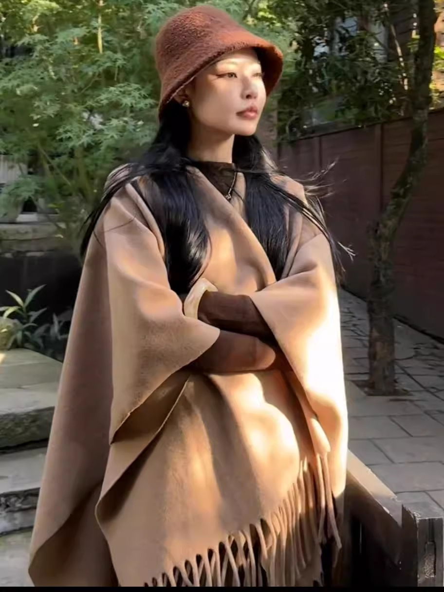 民族风披肩氛围感斗篷披风秋冬季加厚毛边保暖旅行披肩女外搭秋冬