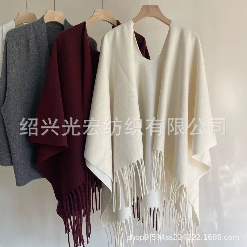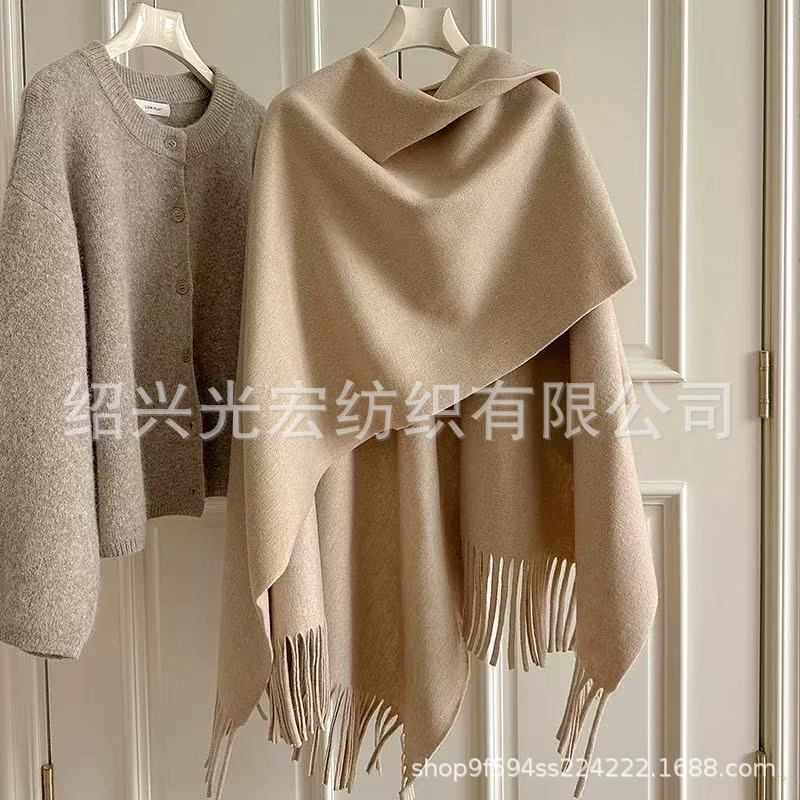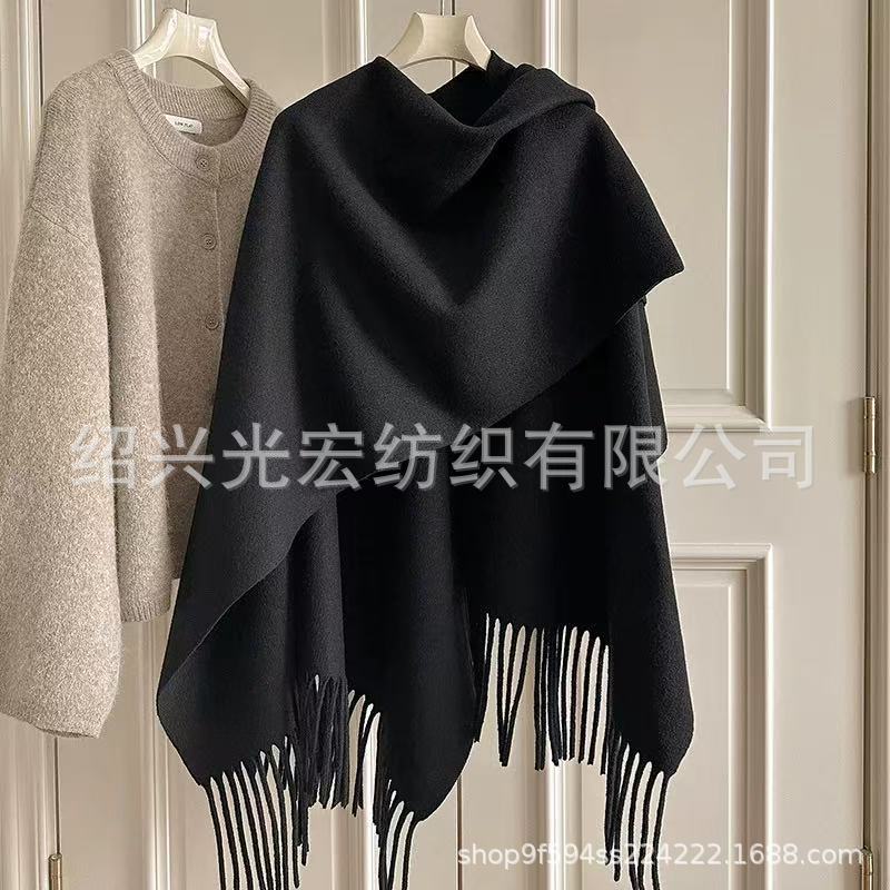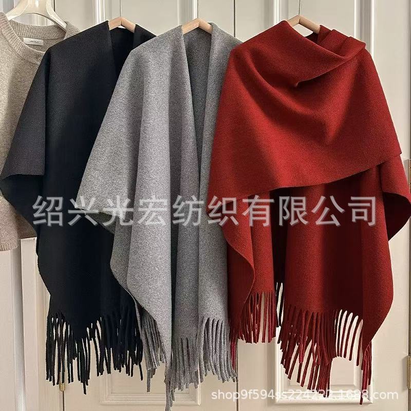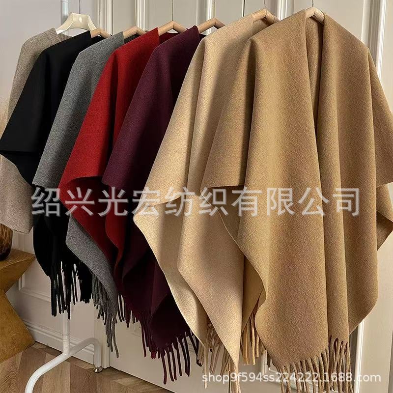 中国风轻奢风流苏斗篷披肩保暖羊绒围巾旅游穿搭百搭流苏围巾
