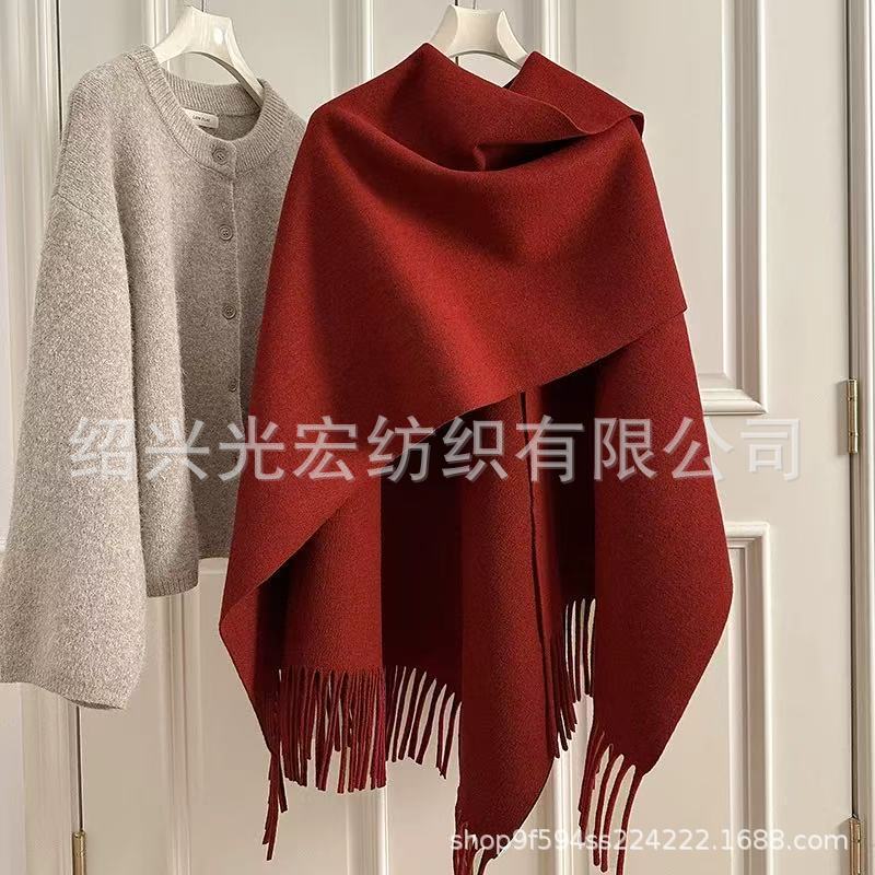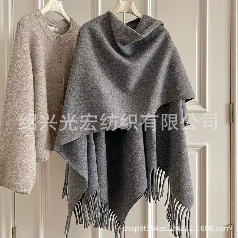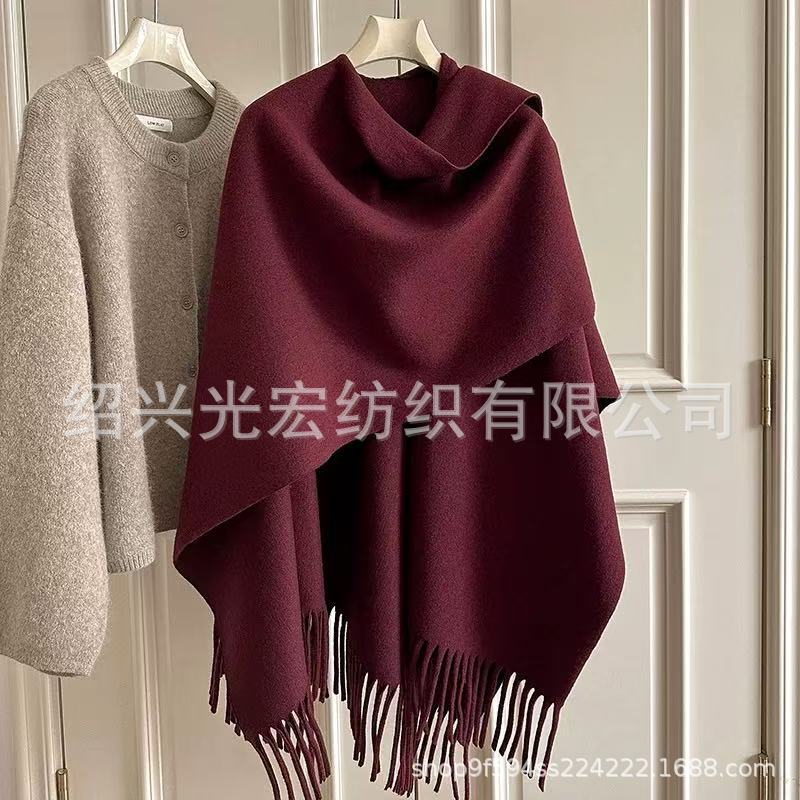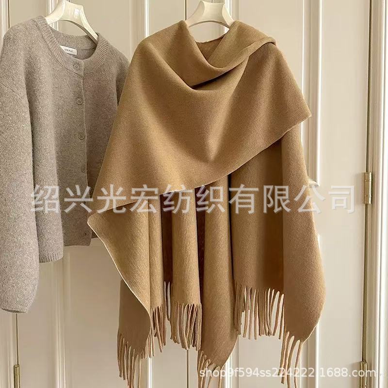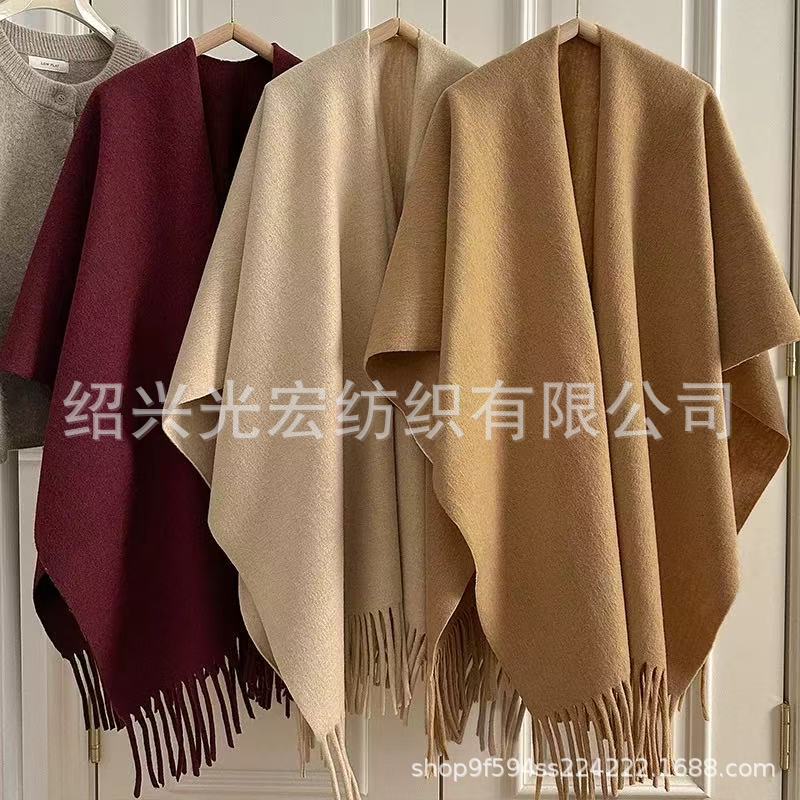 中国风轻奢风流苏斗篷披肩保暖羊绒围巾旅游穿搭百搭流苏围巾
