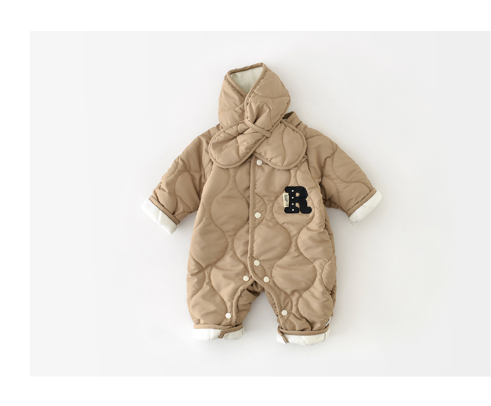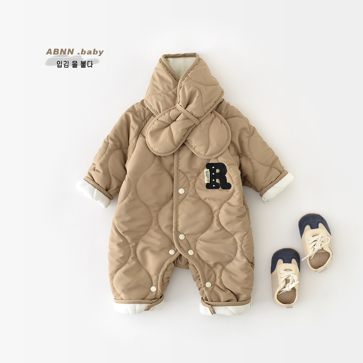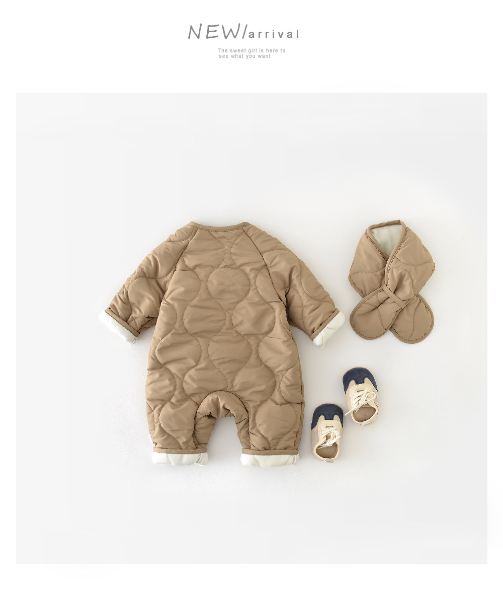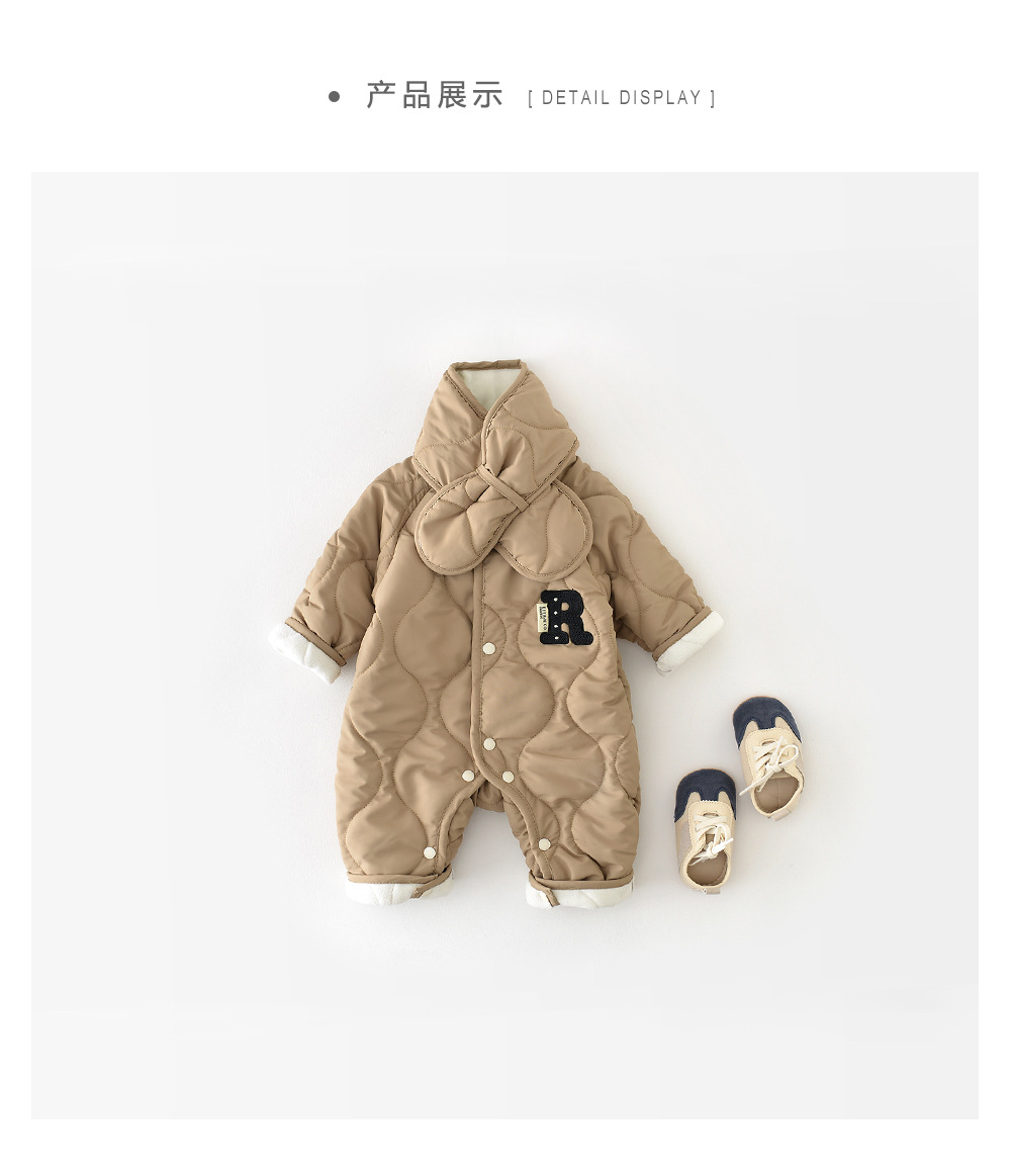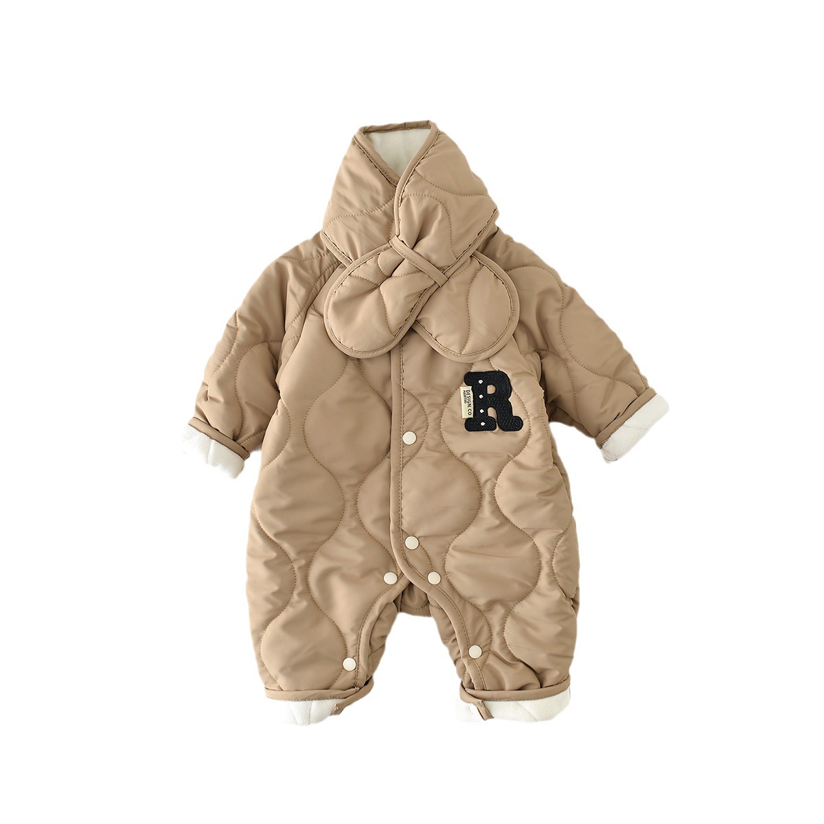婴儿连体衣秋冬绗棉男宝外出棉服新生儿韩版冬加绒保暖爬服送围巾