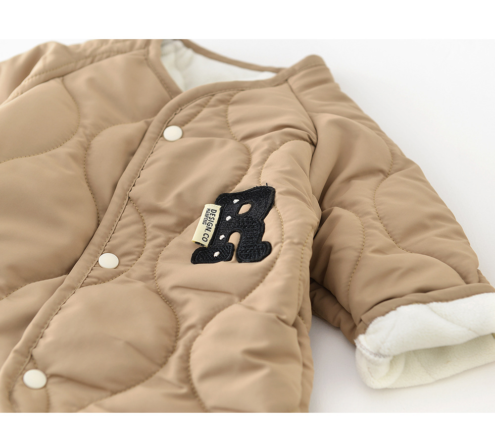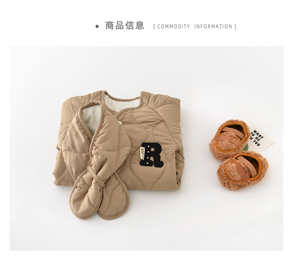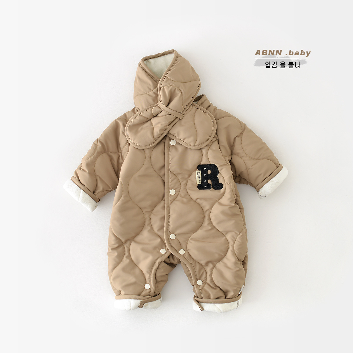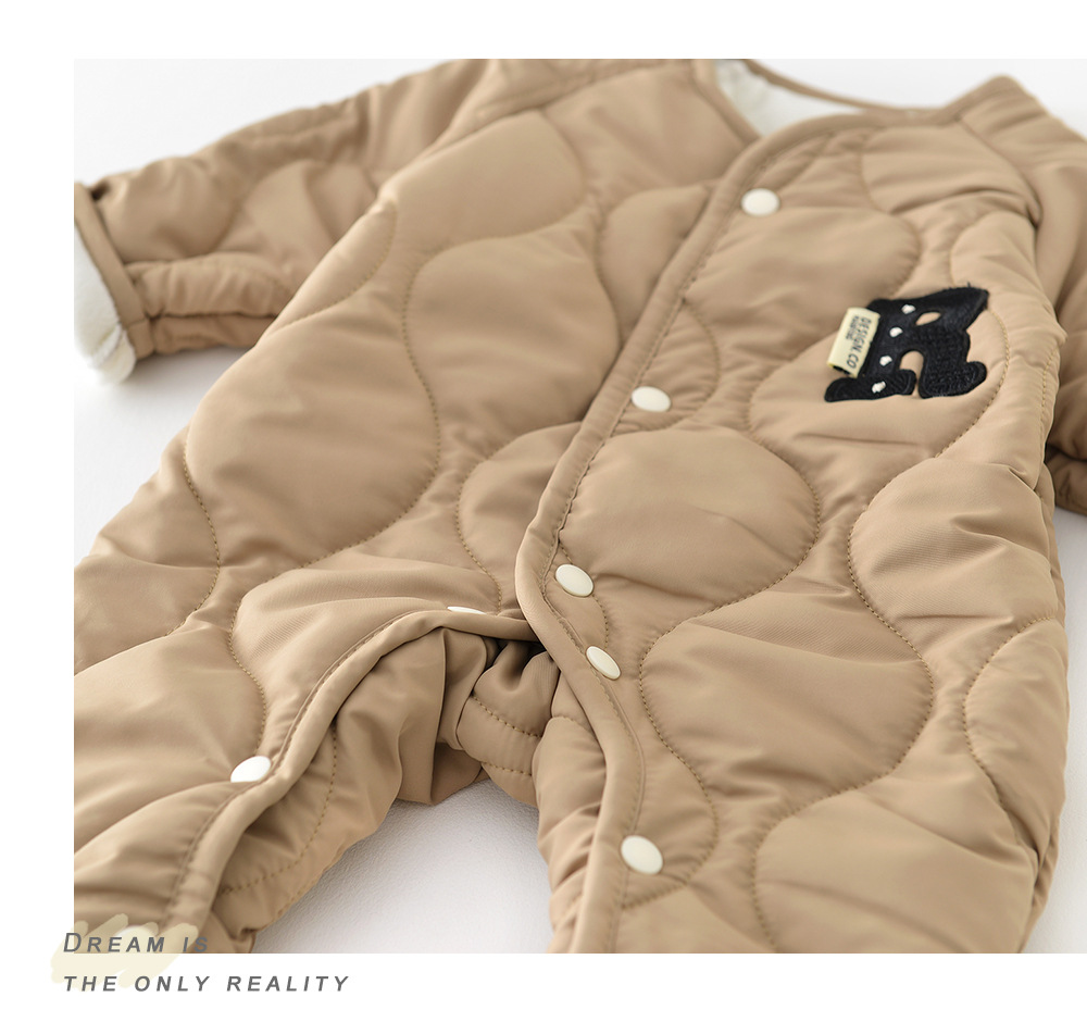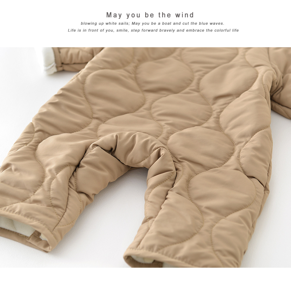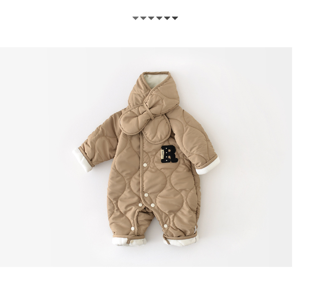 婴儿连体衣秋冬绗棉男宝外出棉服新生儿韩版冬加绒保暖爬服送围巾