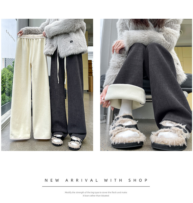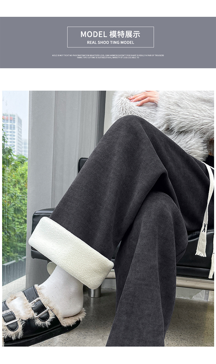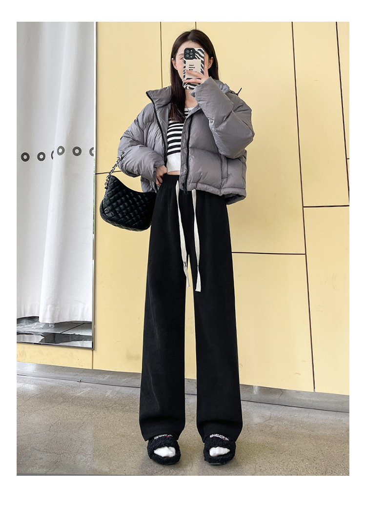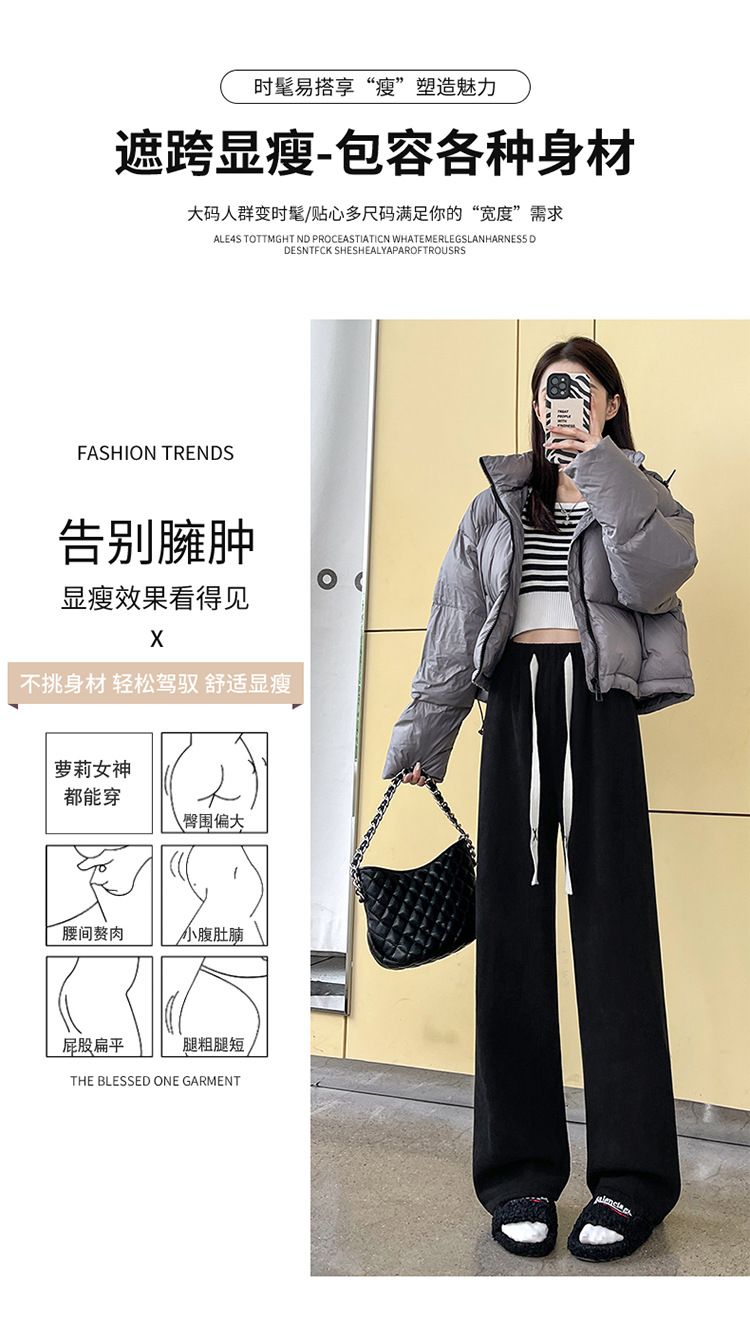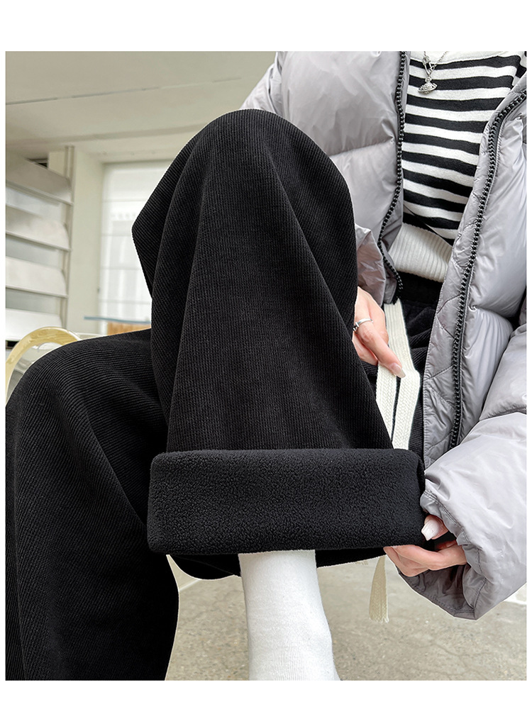 加绒窄版雪尼尔阔腿裤女秋冬2025新款垂感小个子直筒灯芯绒裤子女
