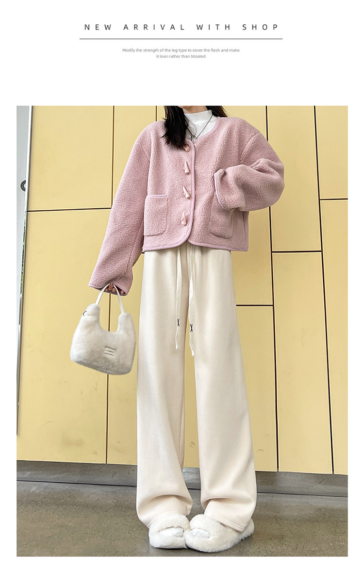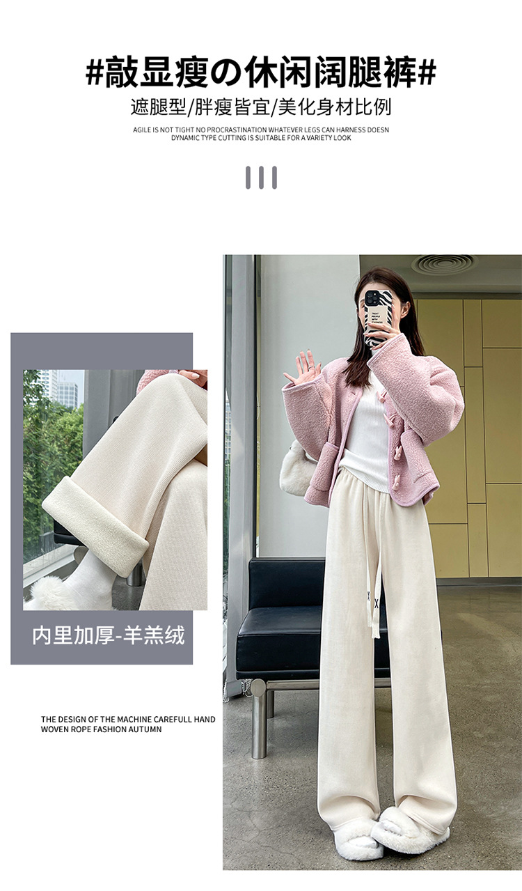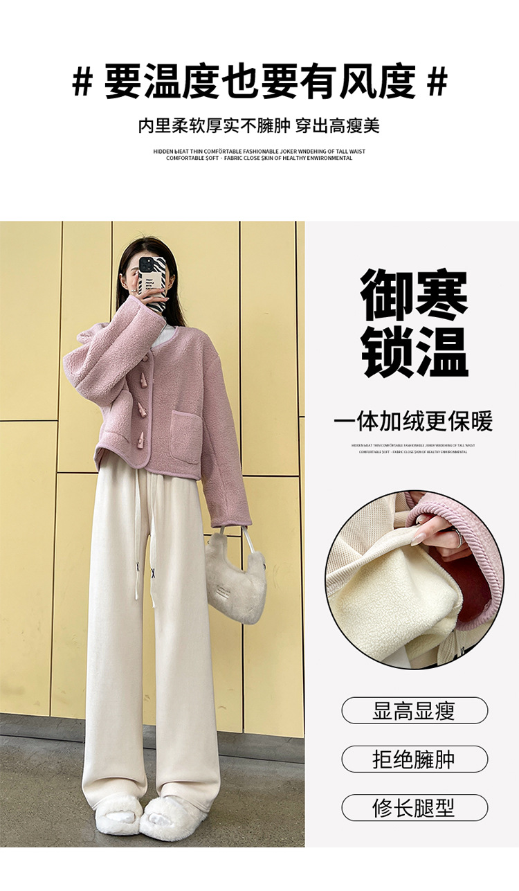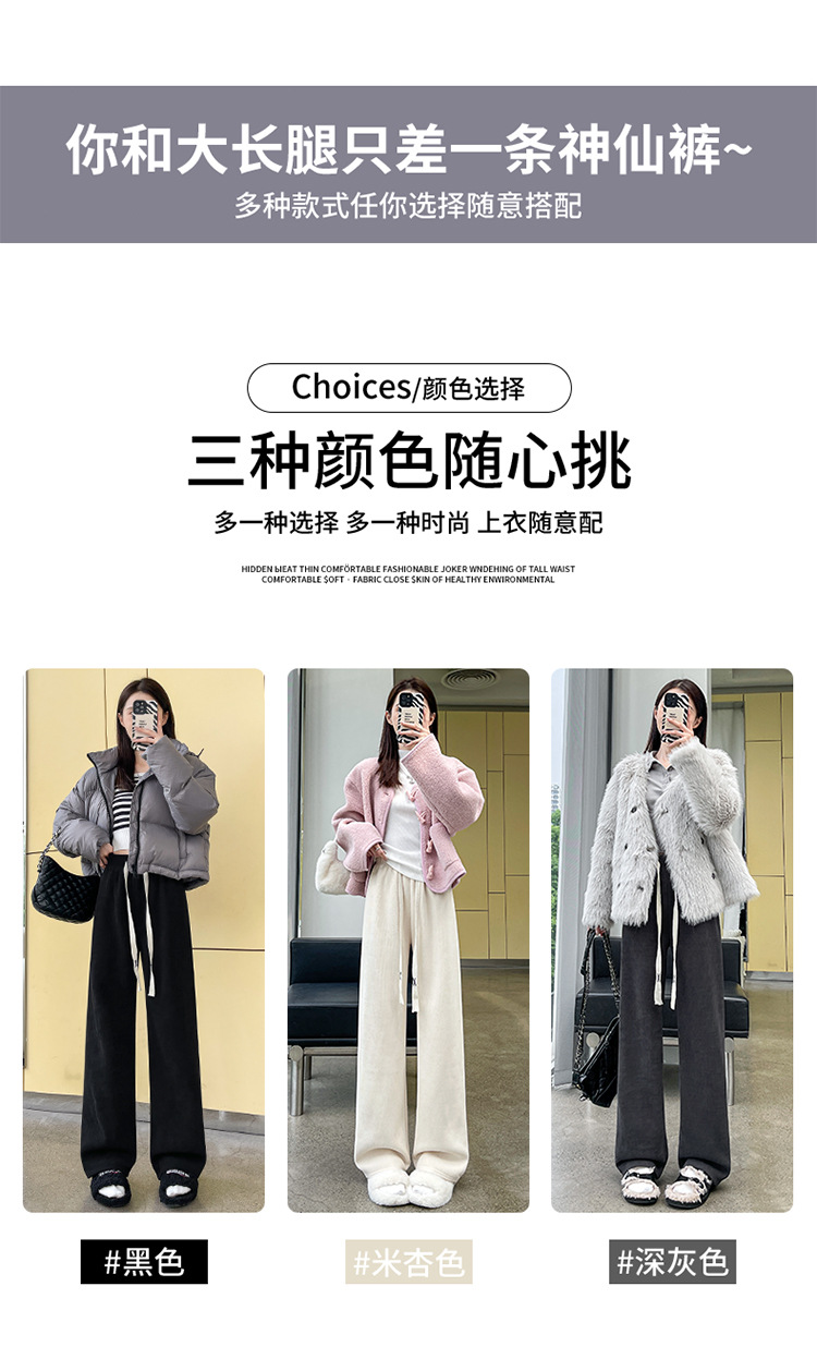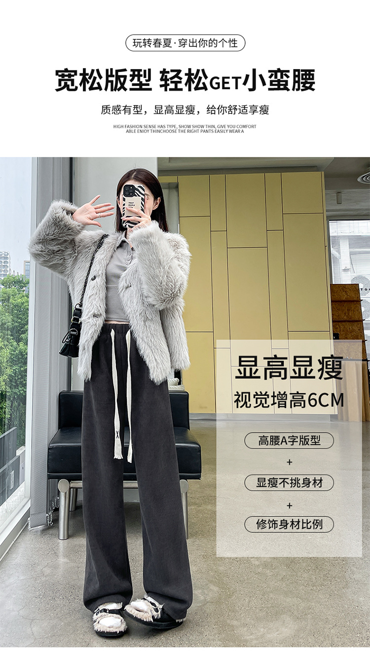 加绒窄版雪尼尔阔腿裤女秋冬2025新款垂感小个子直筒灯芯绒裤子女