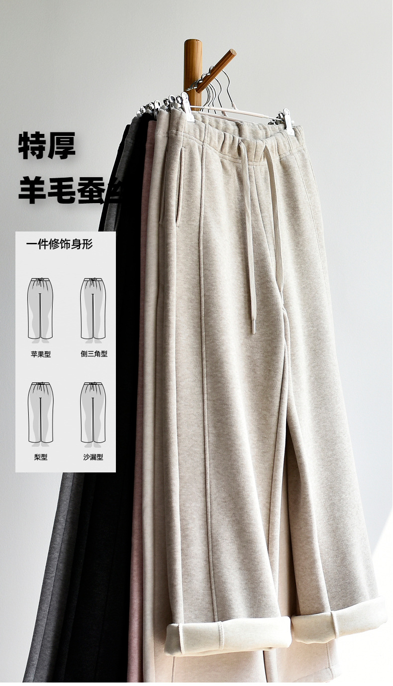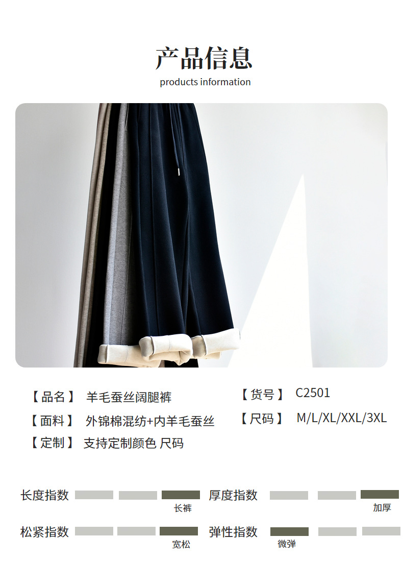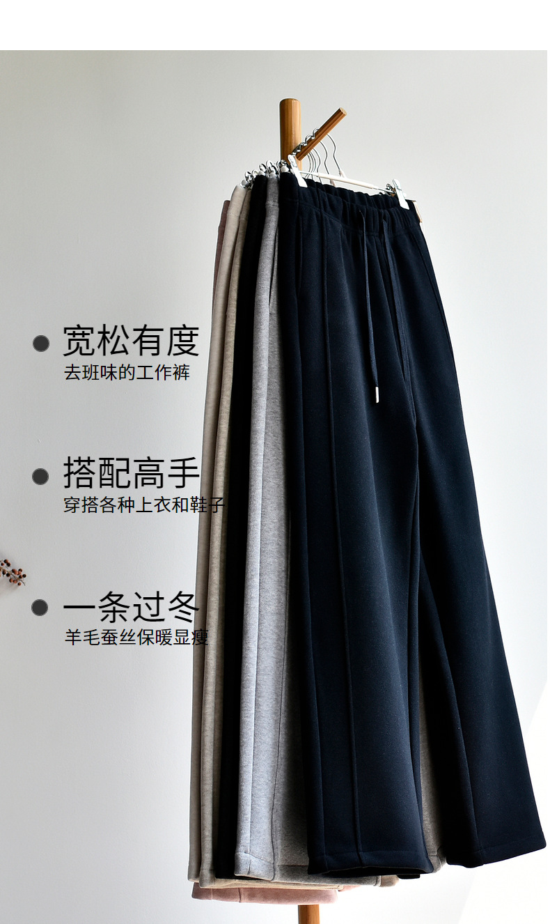 【特厚羊毛蚕丝】800克羊毛蚕丝加绒加厚女装保暖长休闲阔腿裤子