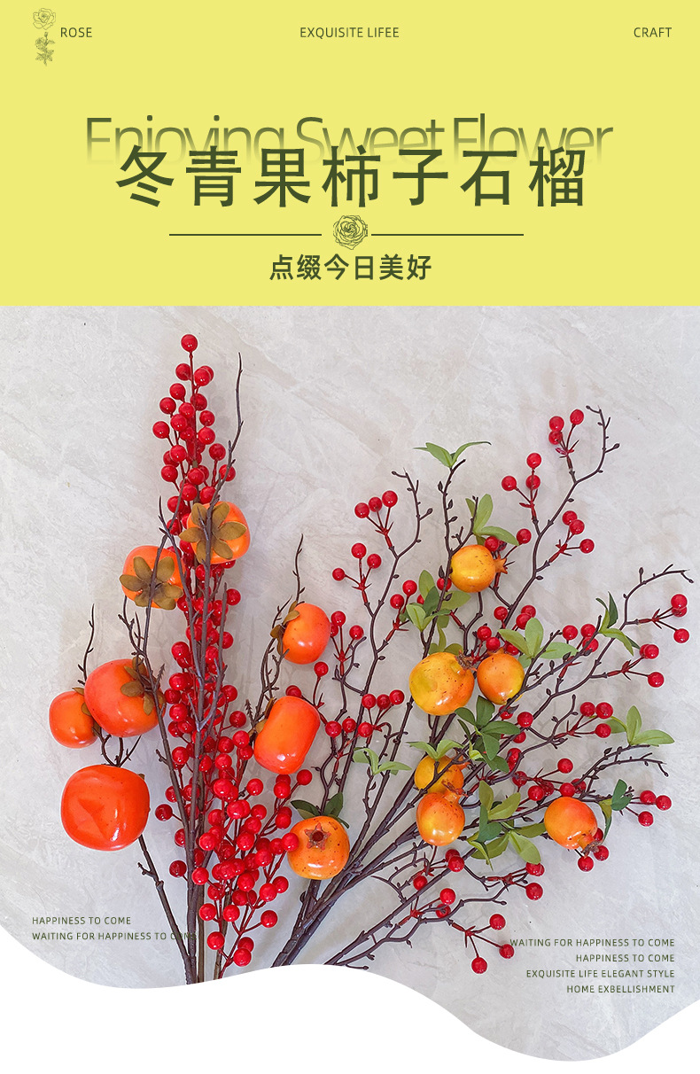 冬青果红果假花 家居装扮新年福桶材料包仿真发财果仿真