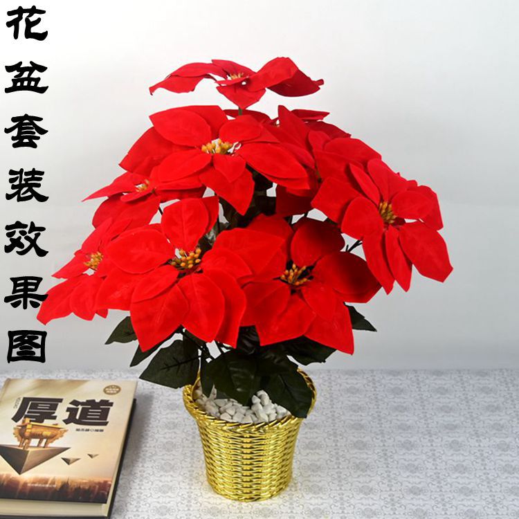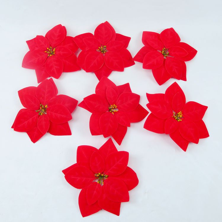 仿真圣诞花批发圣诞节装饰一品红假花节日新年人造花圣诞树装饰品