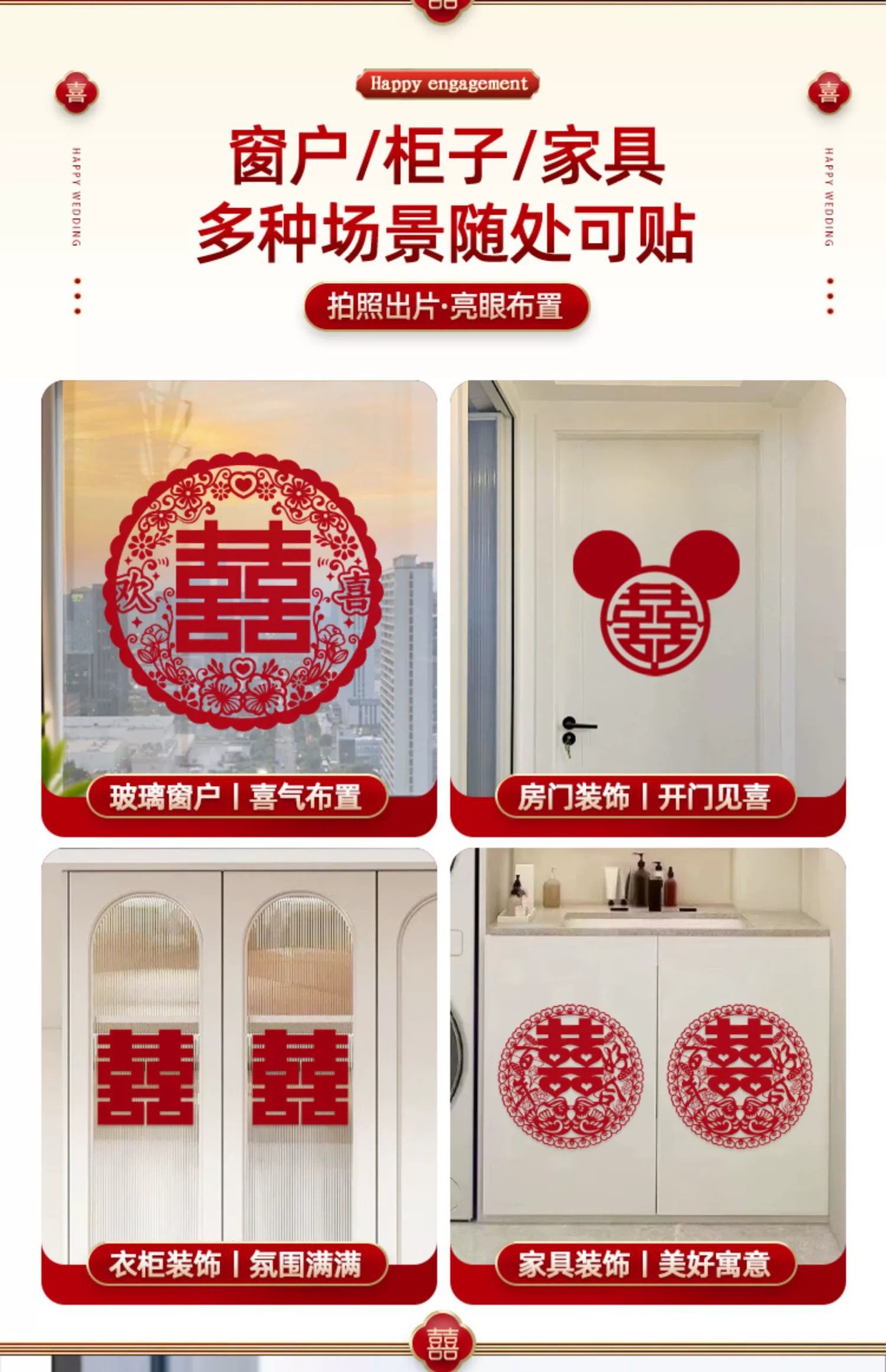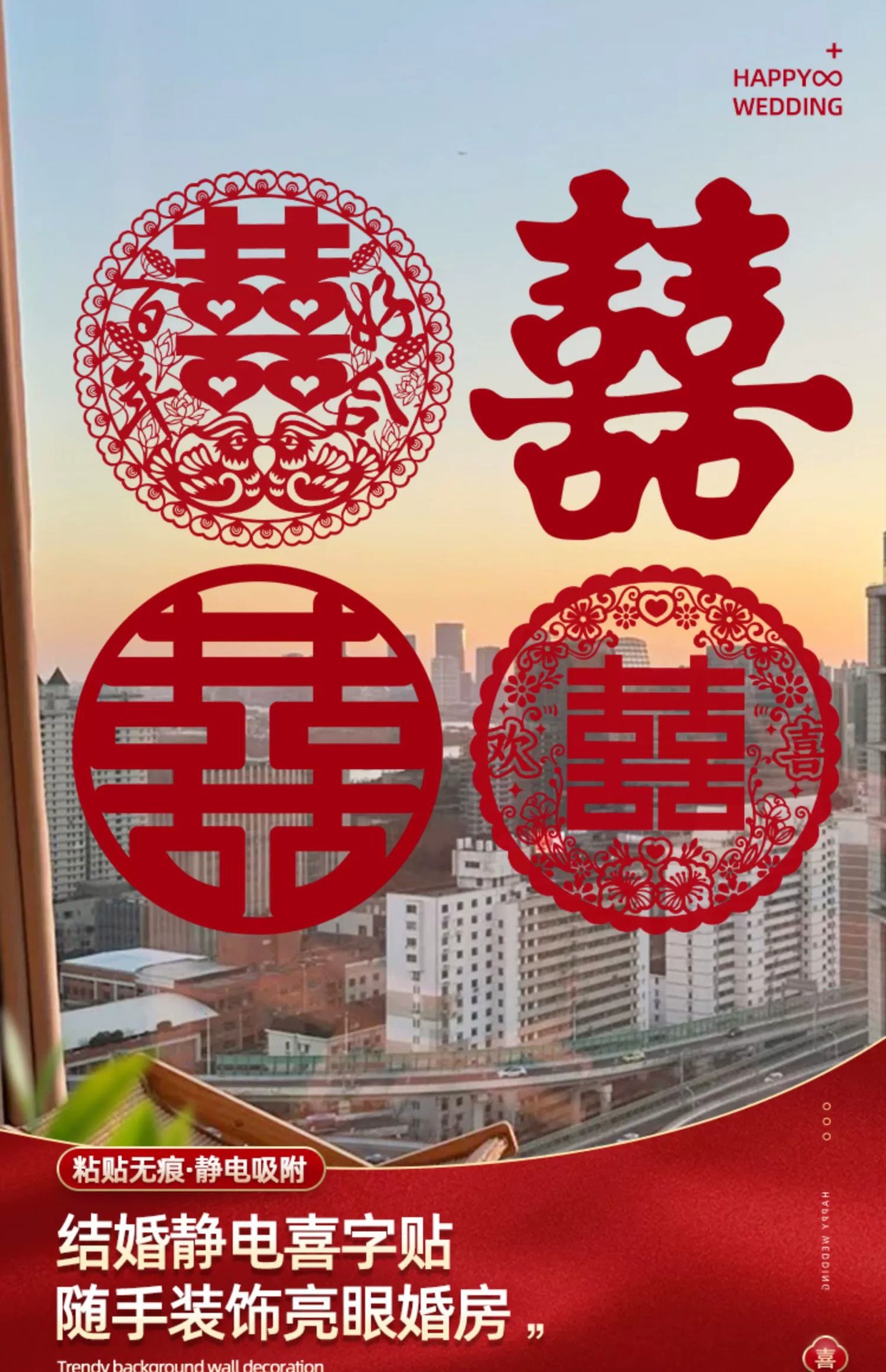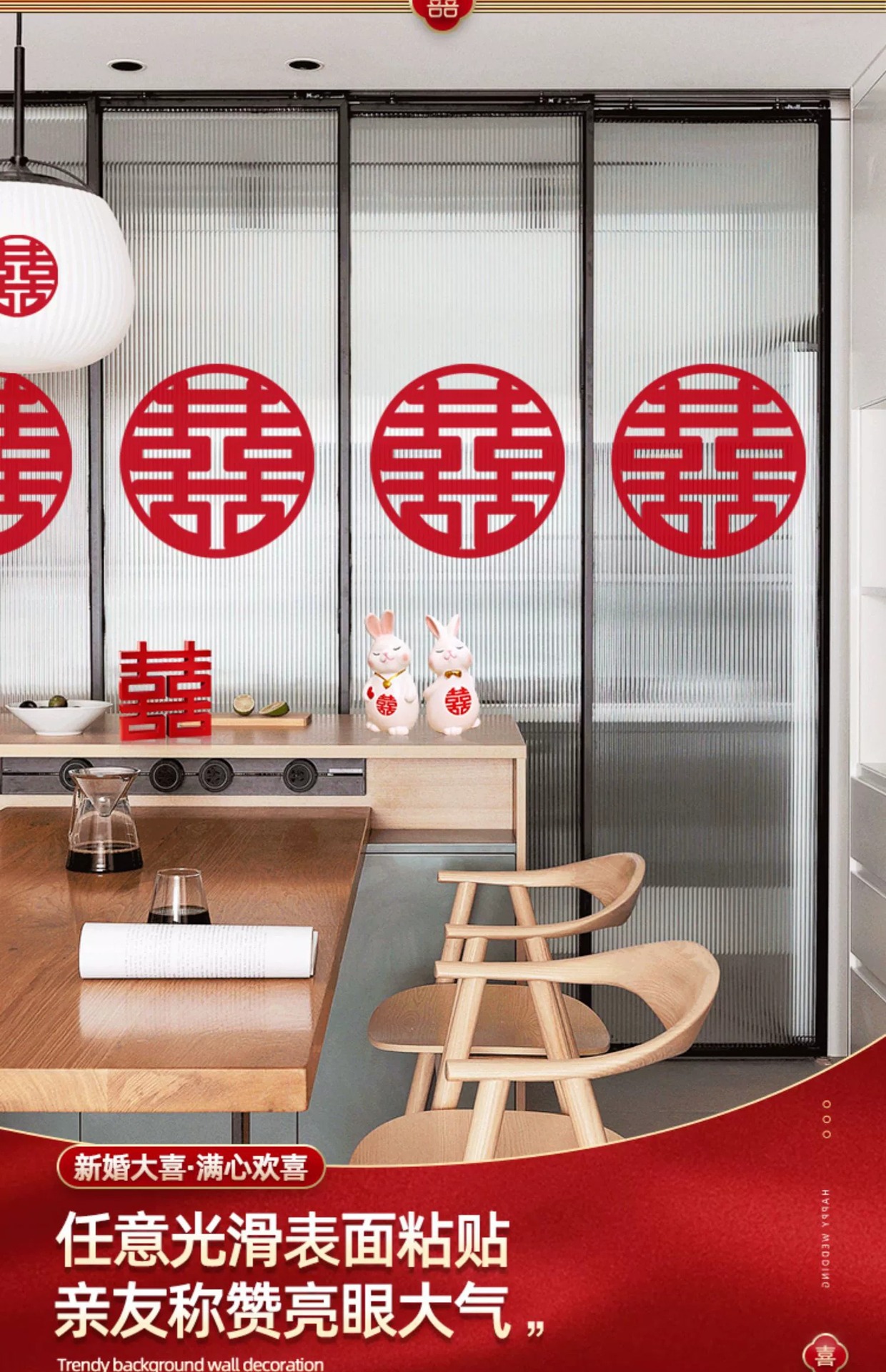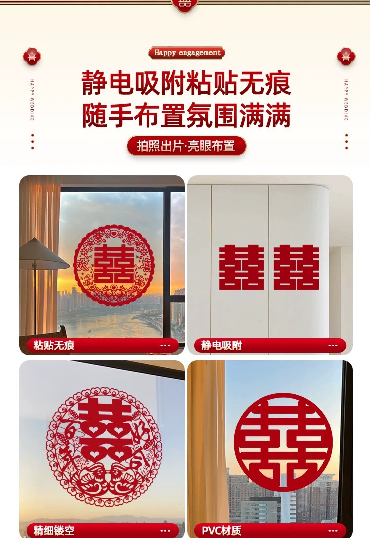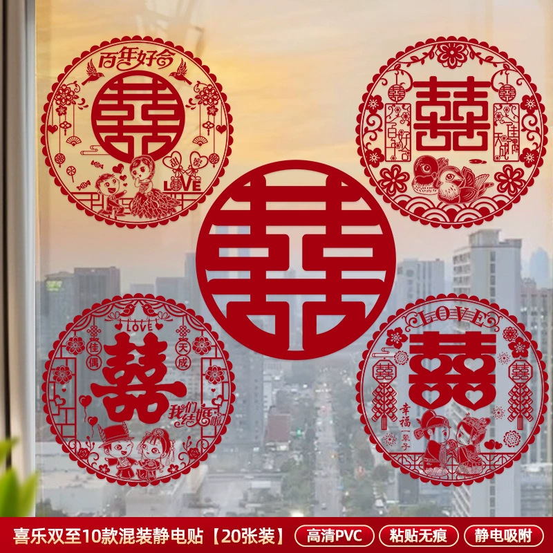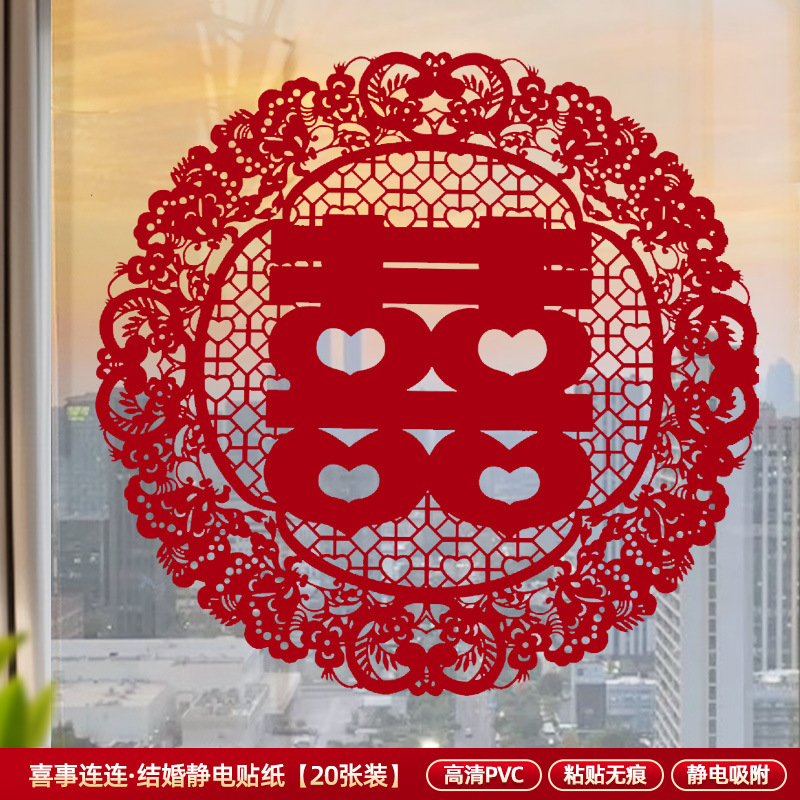喜字结婚专用静电贴窗户玻璃囍字贴婚礼婚房布置婚车装饰窗花囍字