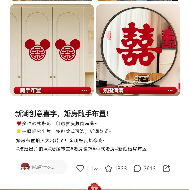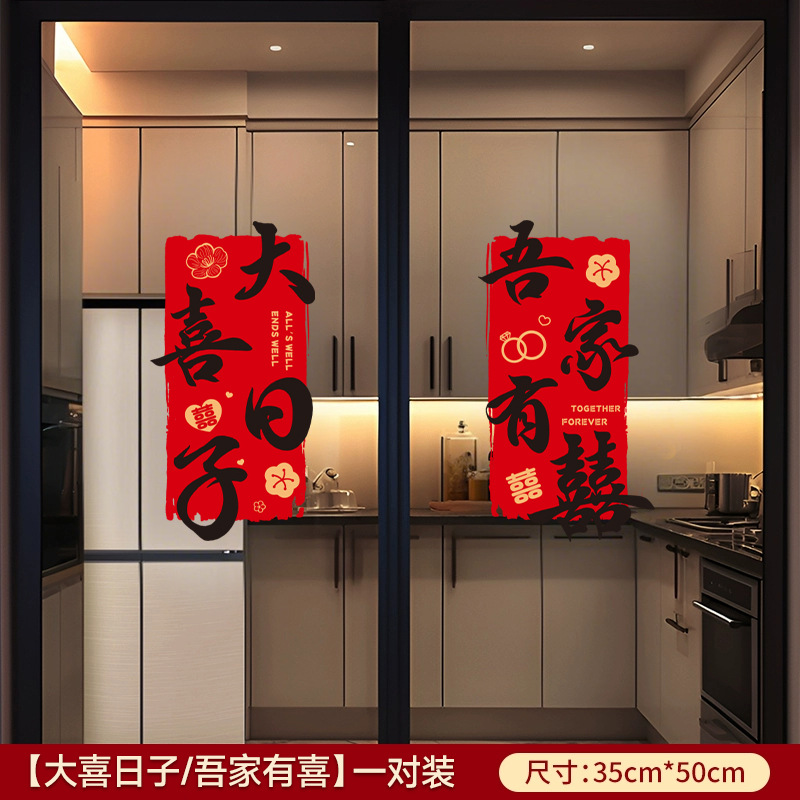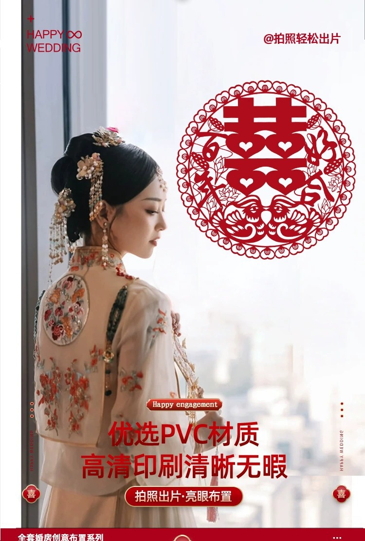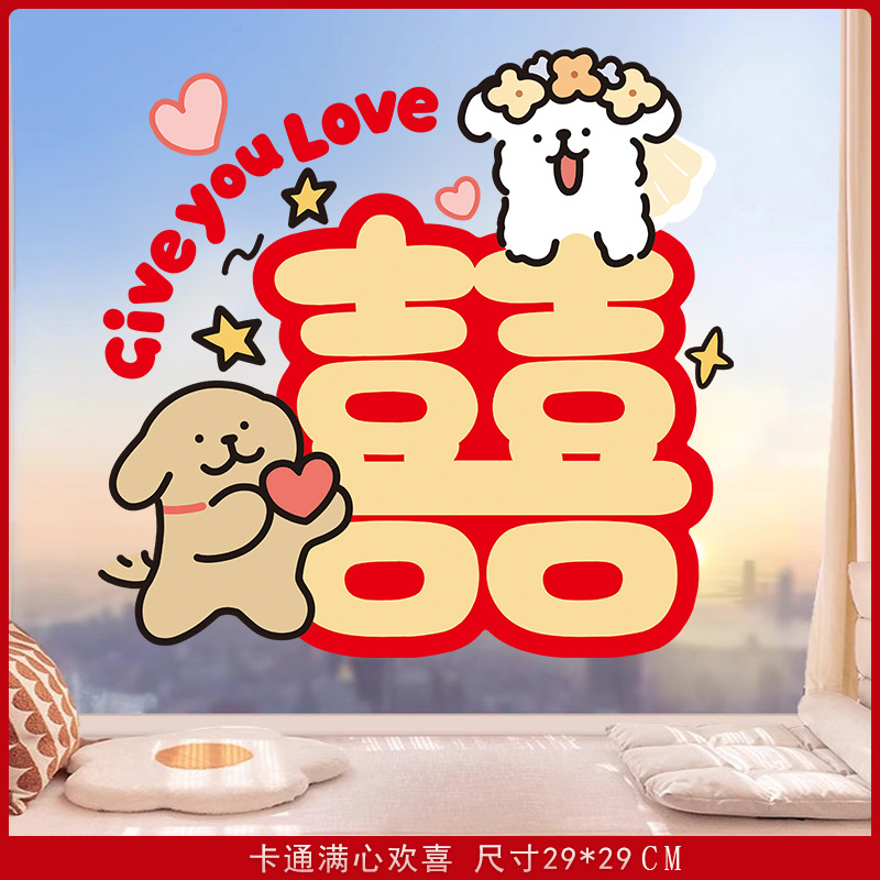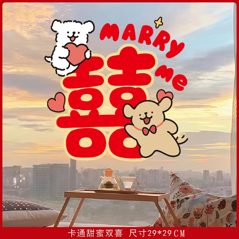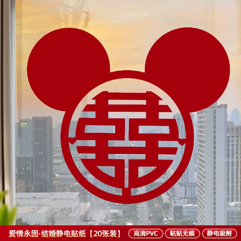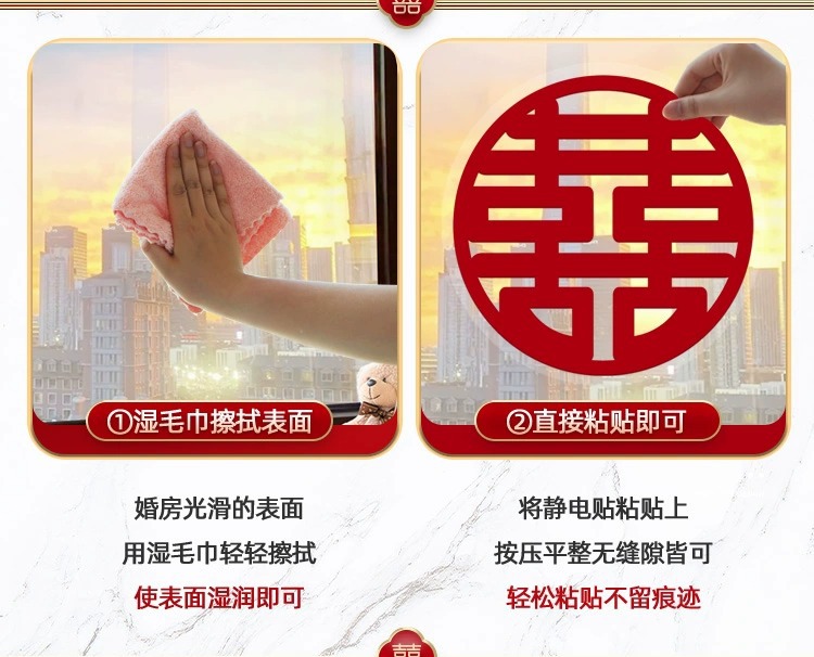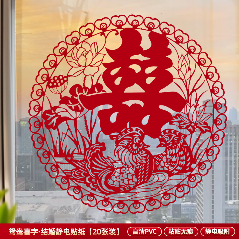 喜字结婚专用静电贴窗户玻璃囍字贴婚礼婚房布置婚车装饰窗花囍字