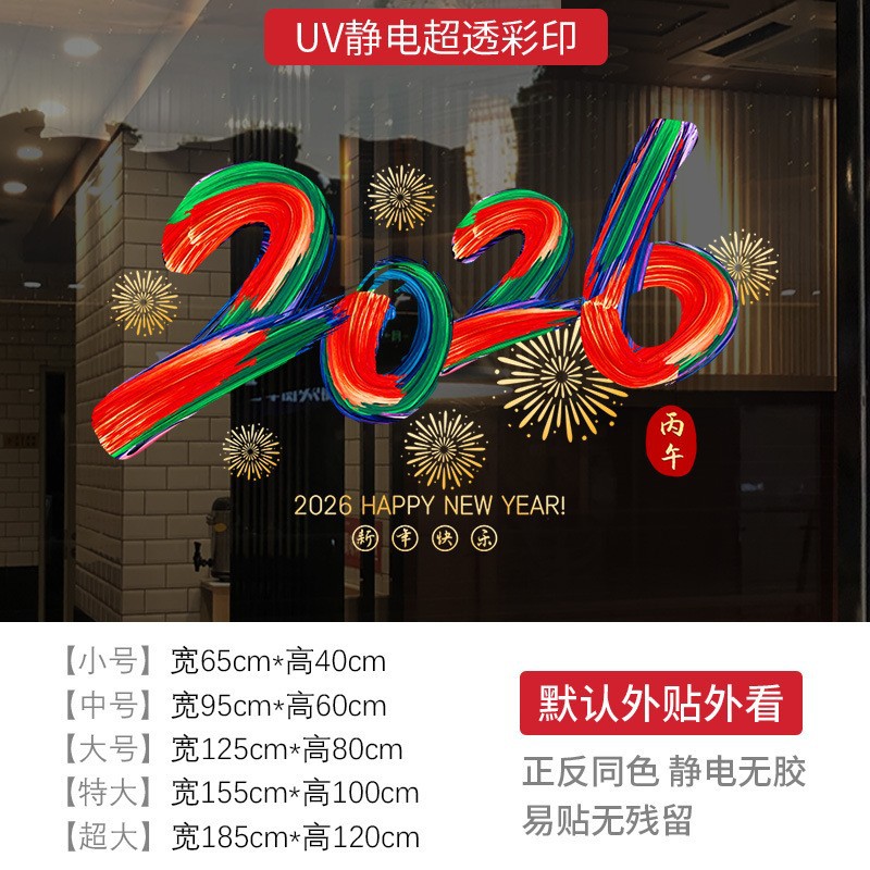 2026过马年彩色福禄窗花新年静电玻璃门葫芦春节贴纸商场橱窗装饰