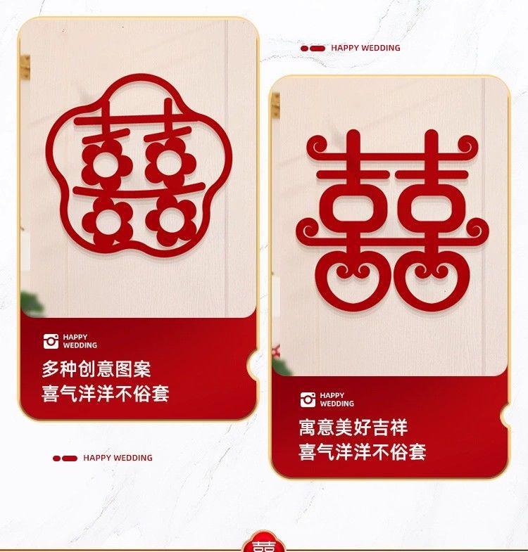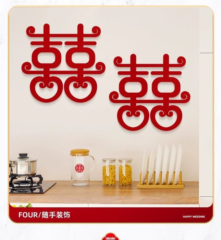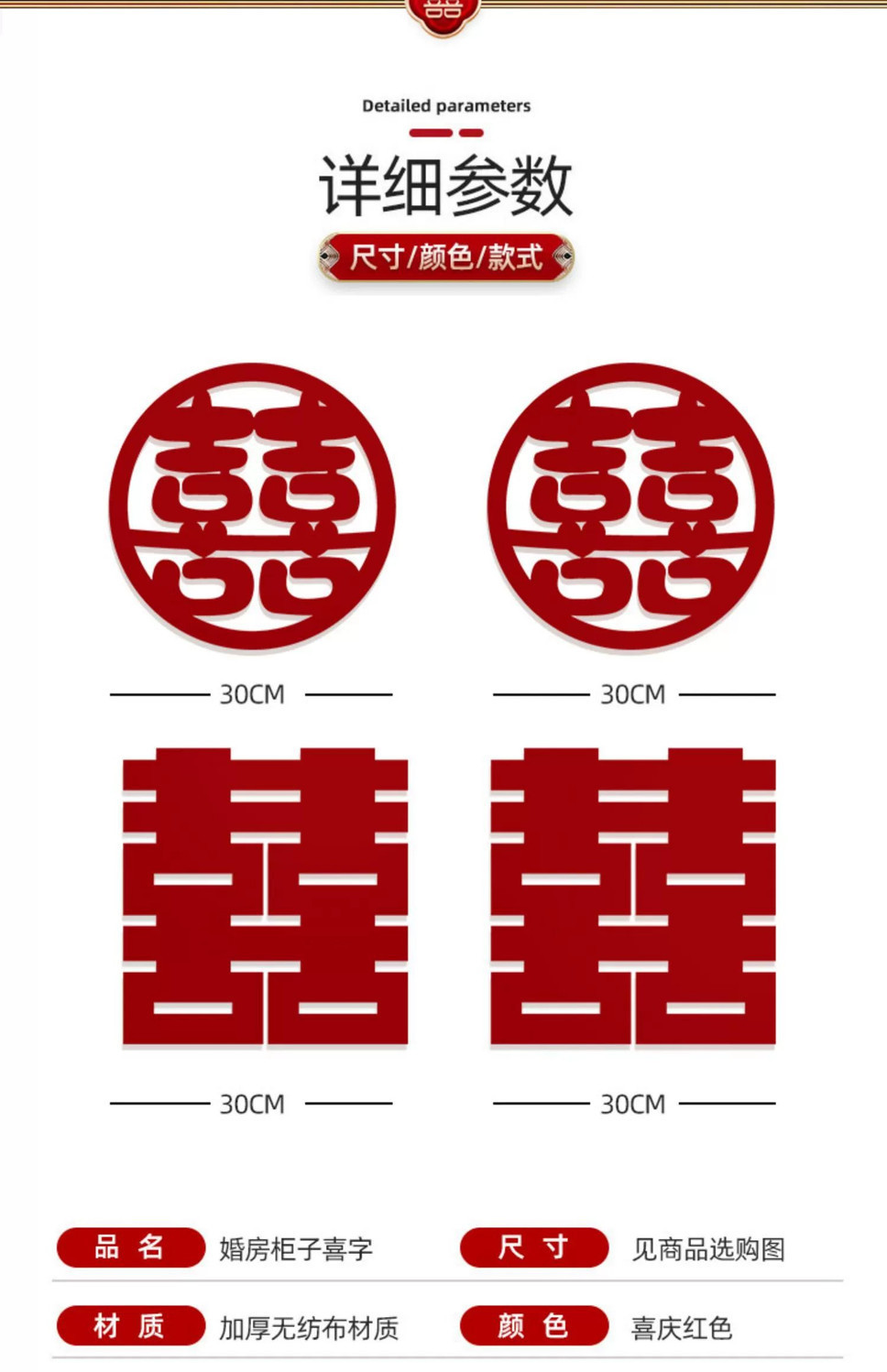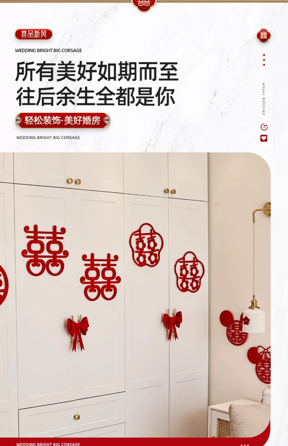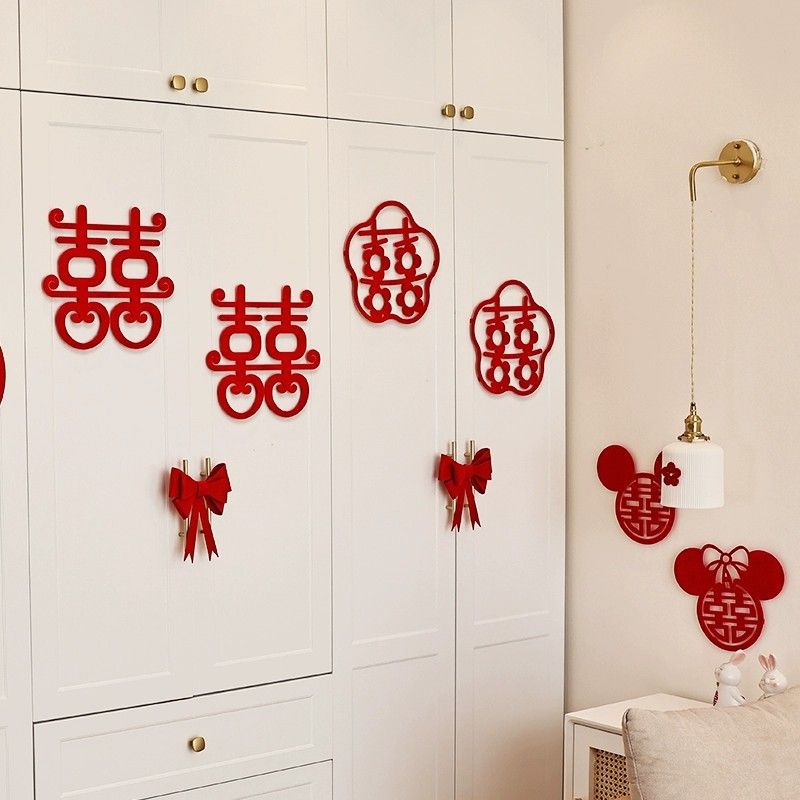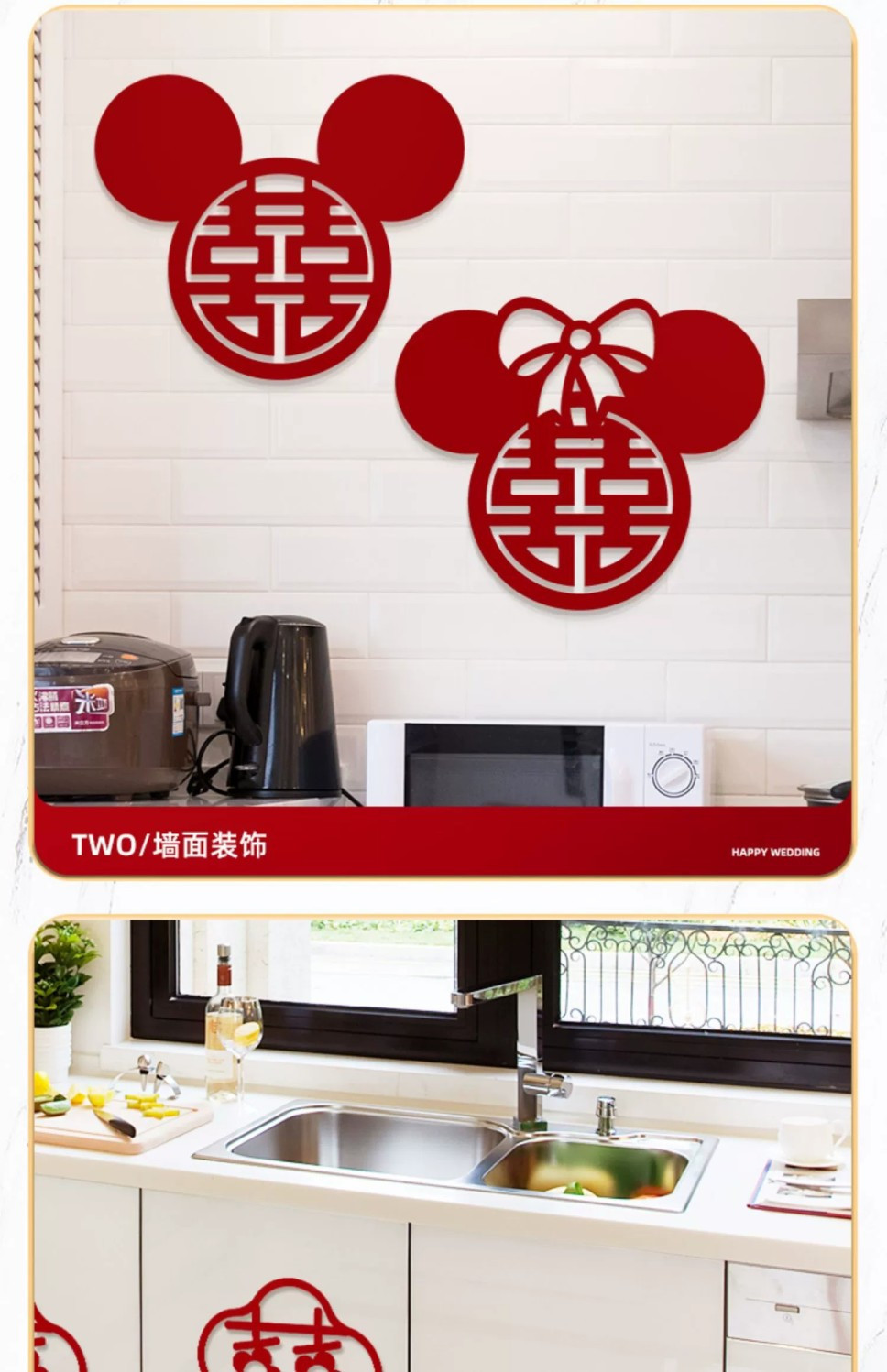 婚房装饰布置米奇喜字贴衣柜房间窗户窗花卧室门贴纸装饰婚礼囍字