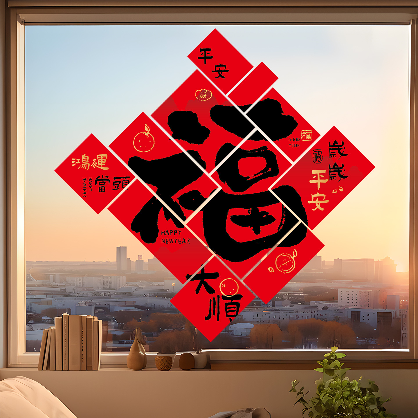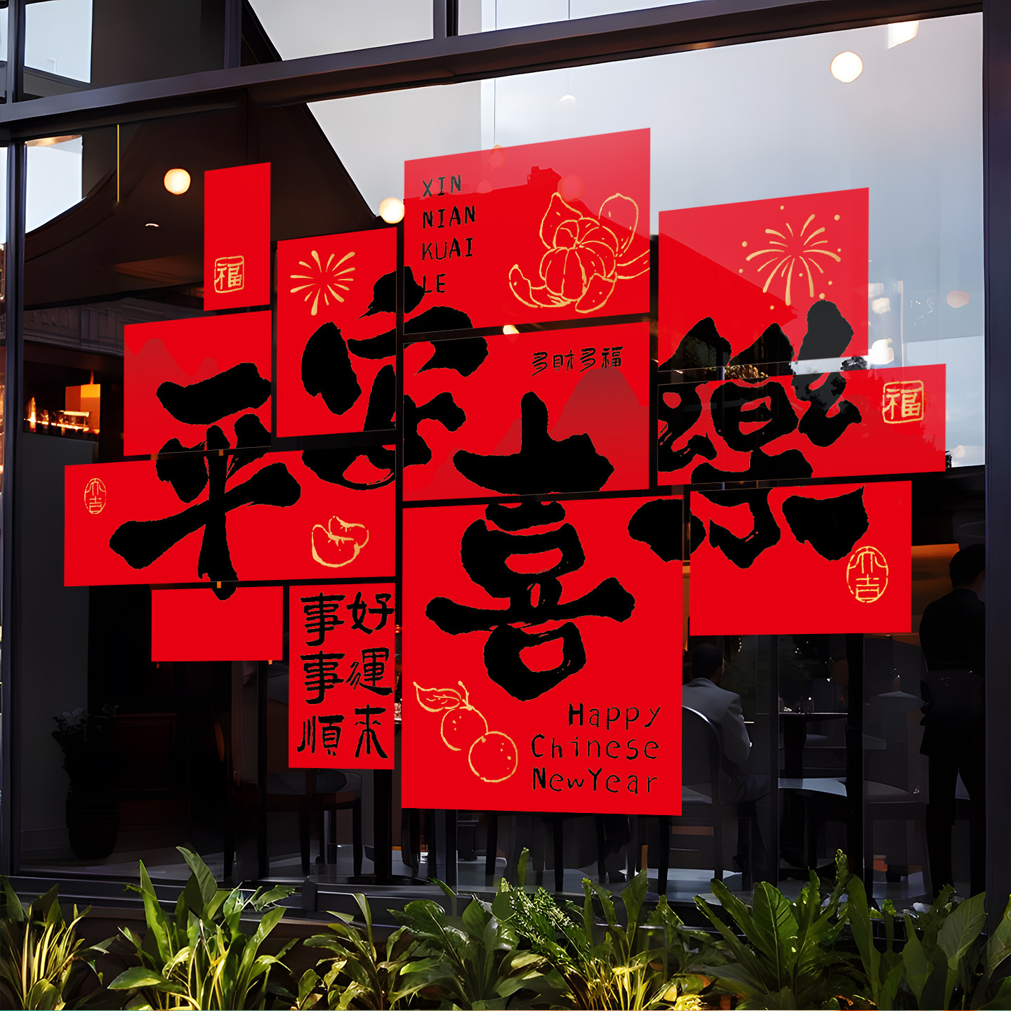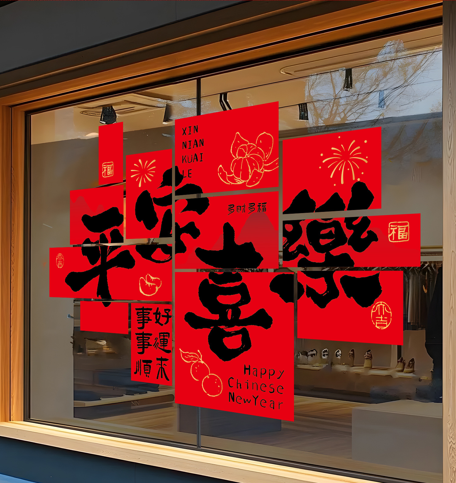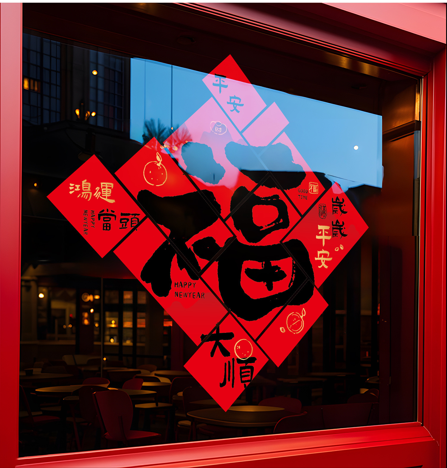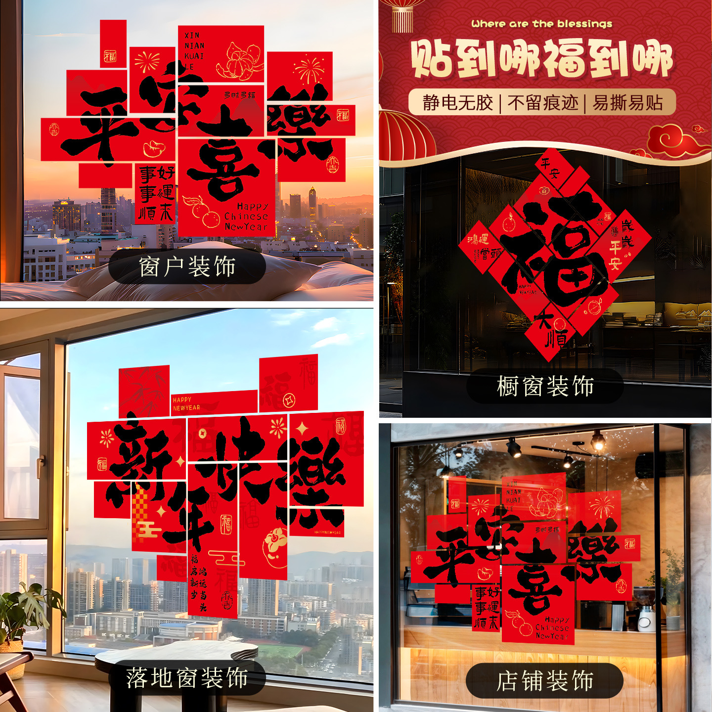 新年窗花福字贴2026马年商场店铺橱窗静电贴过年春节窗贴年画装饰
