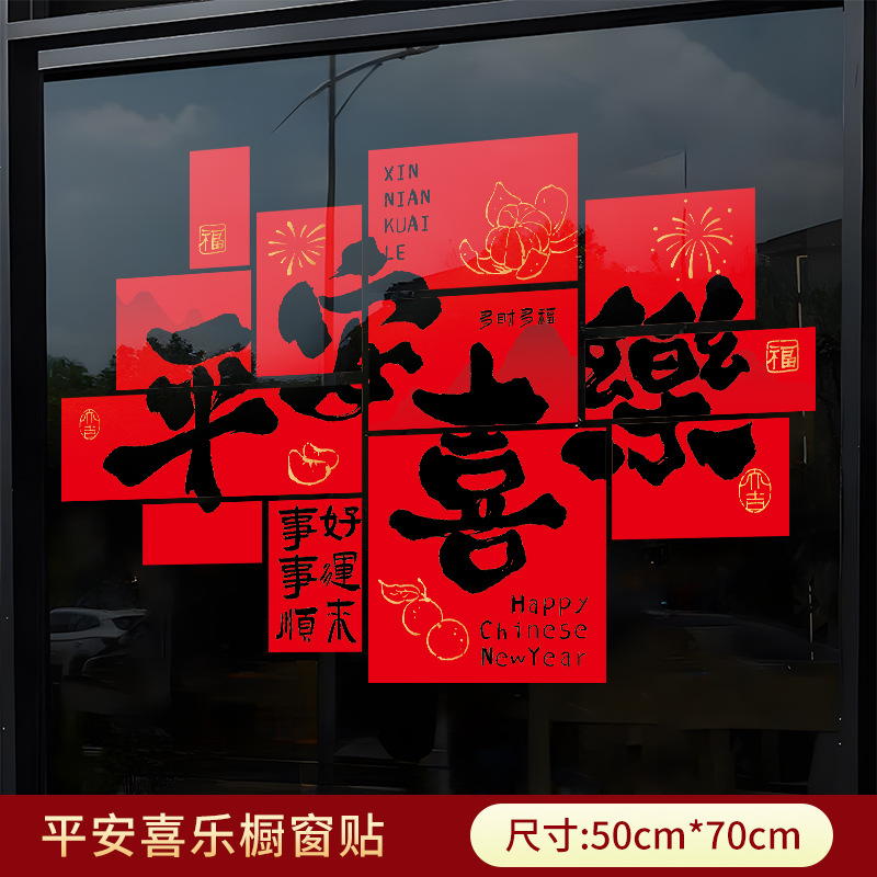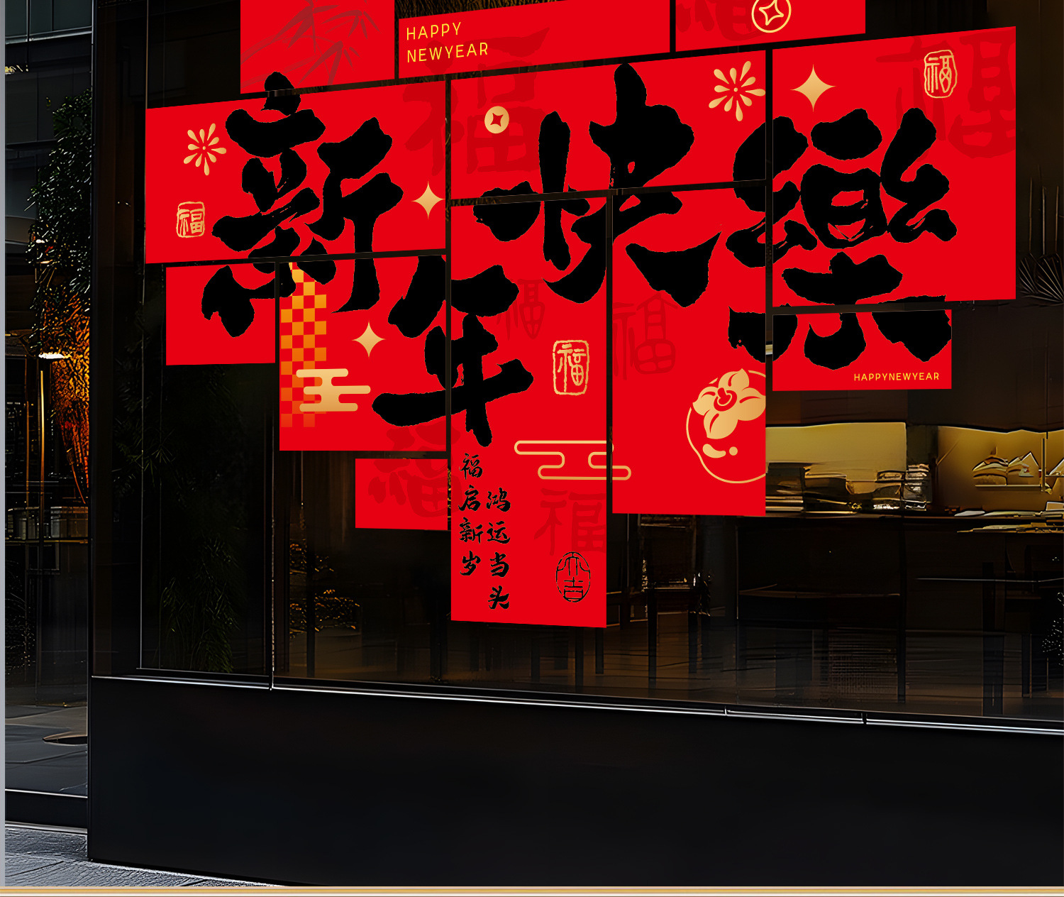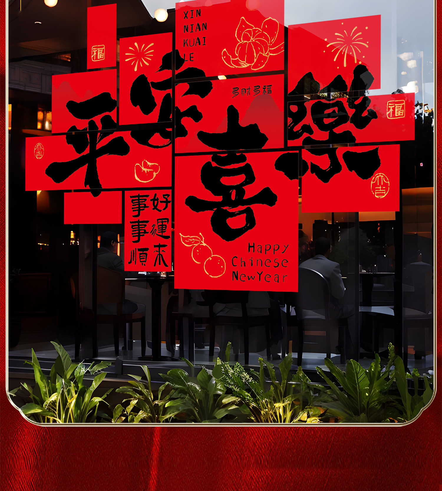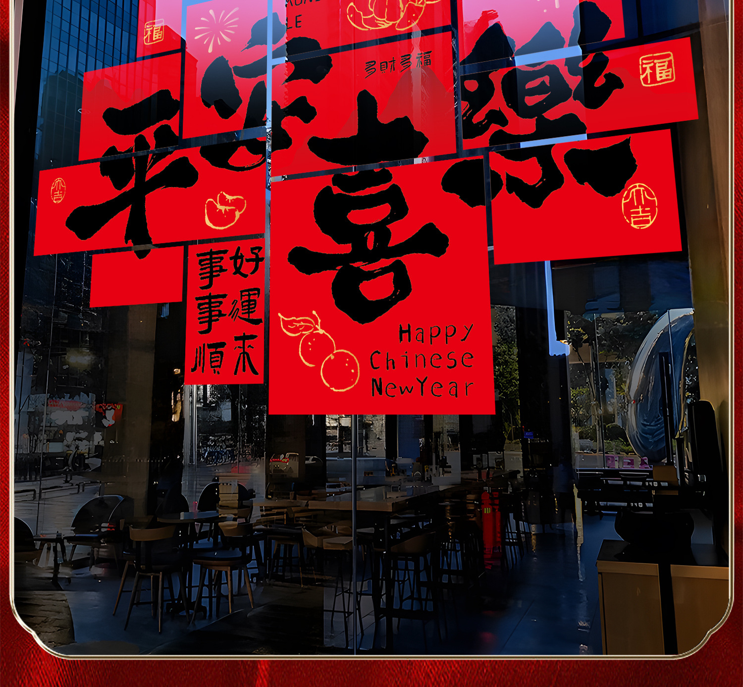 新年窗花福字贴2026马年商场店铺橱窗静电贴过年春节窗贴年画装饰
