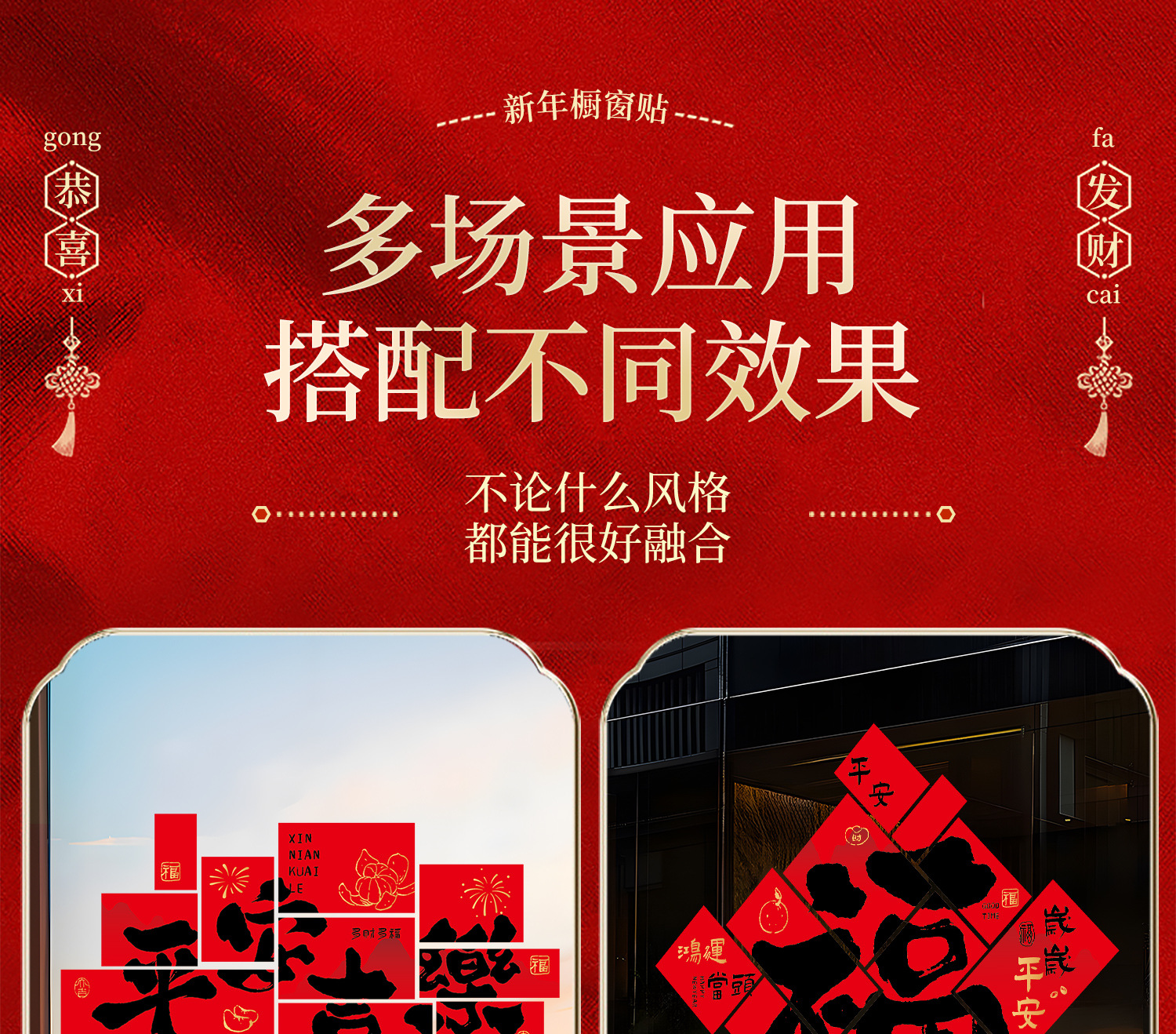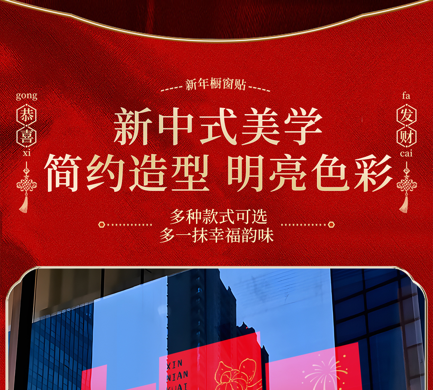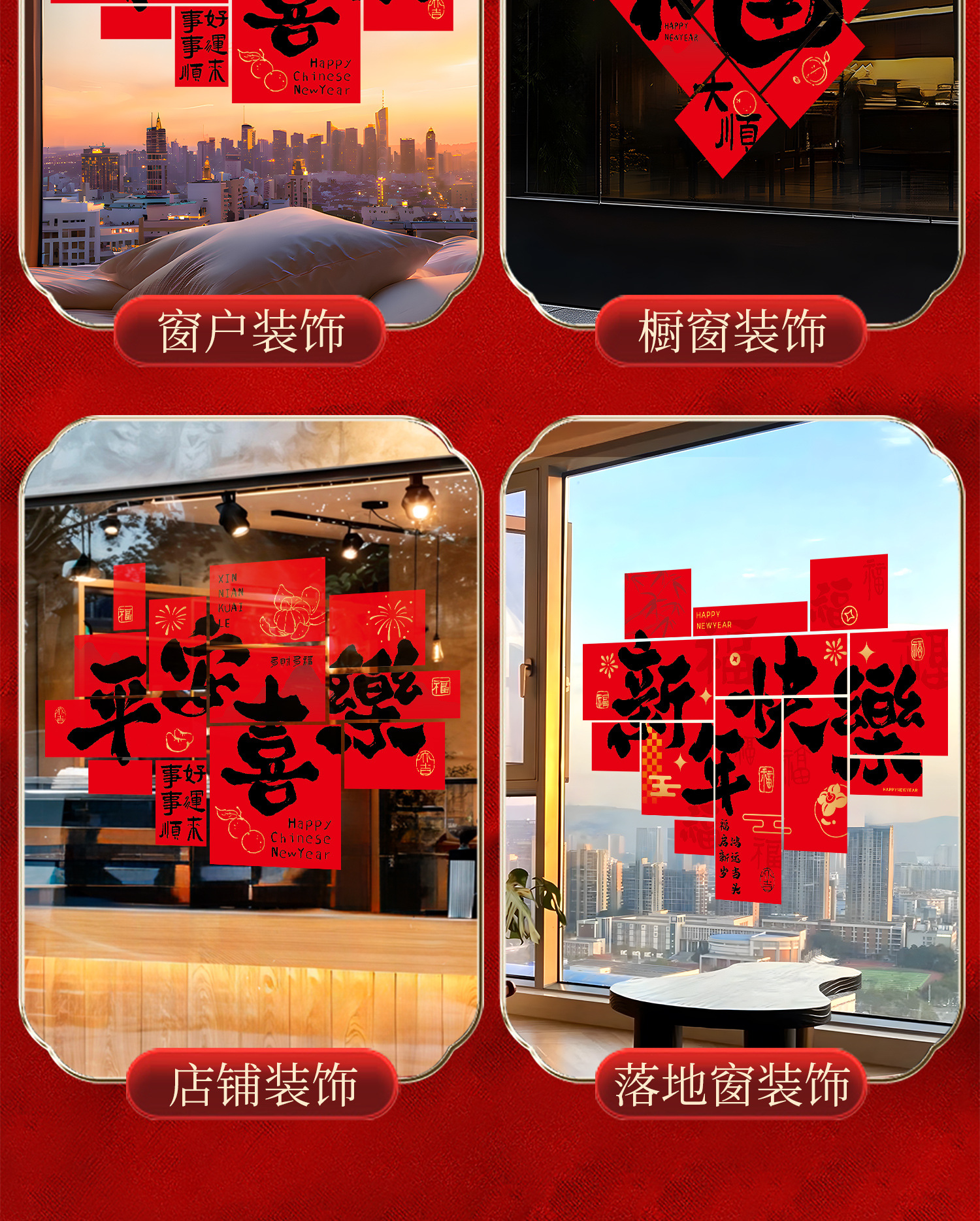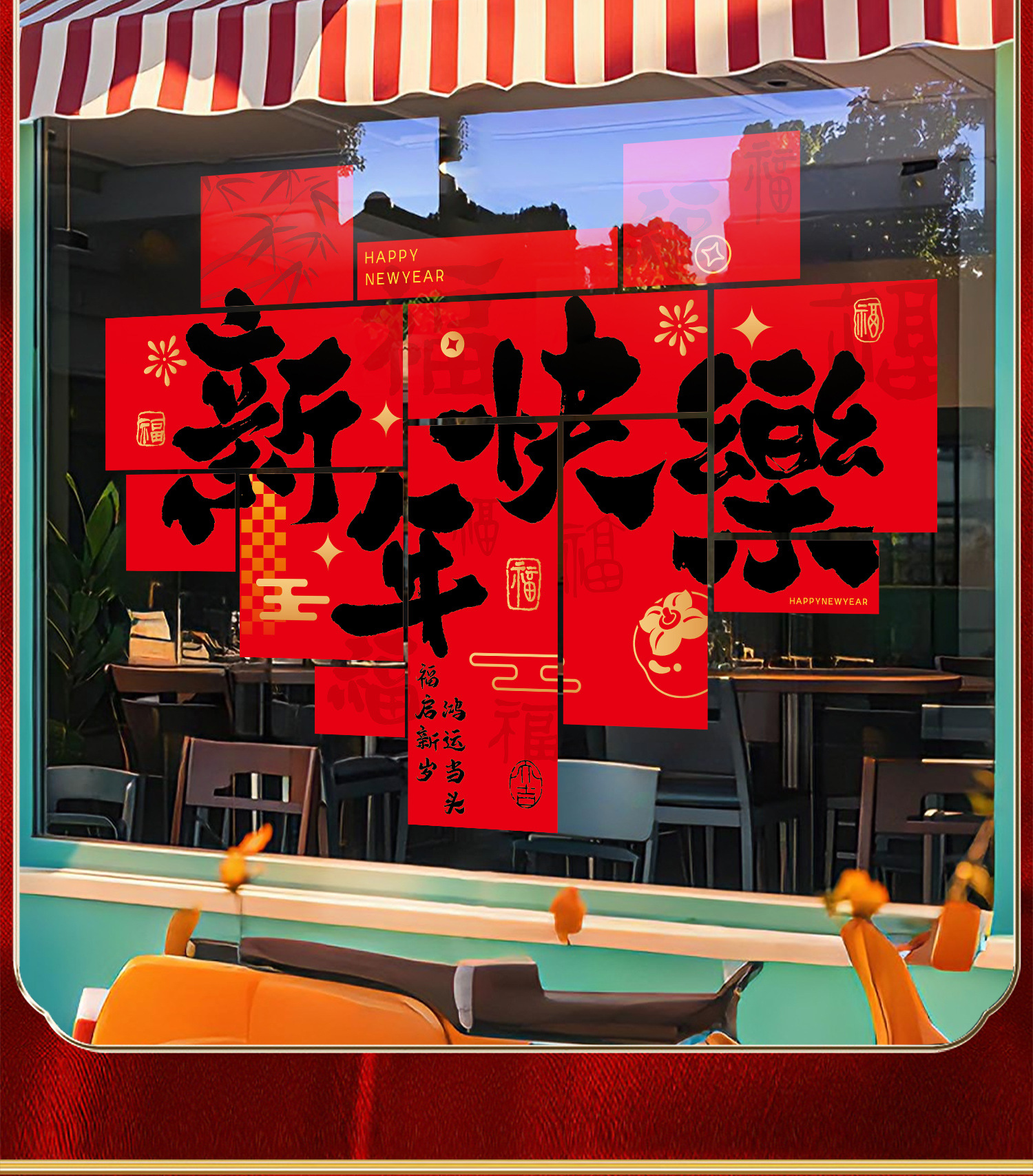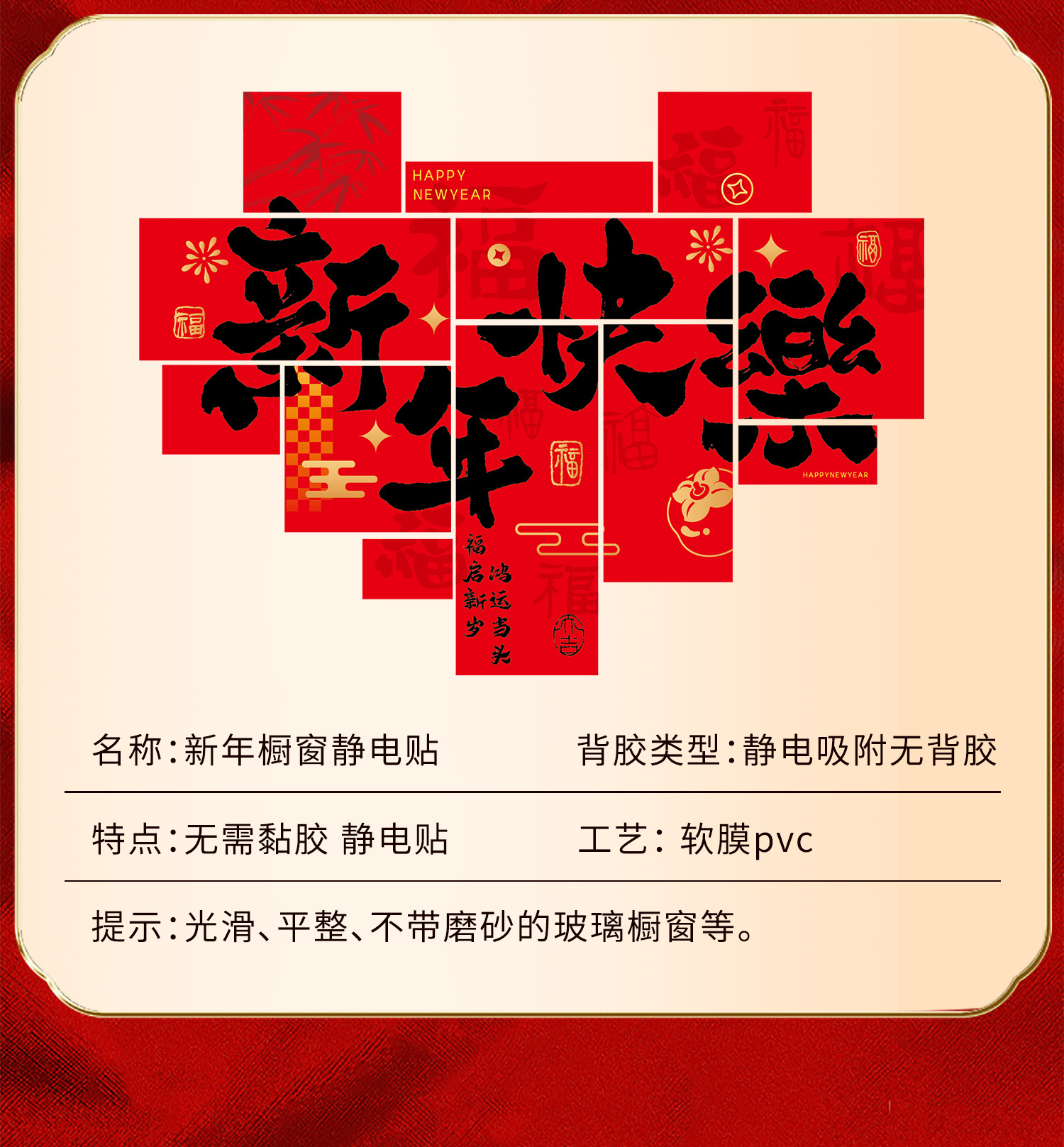 新年窗花福字贴2026马年商场店铺橱窗静电贴过年春节窗贴年画装饰