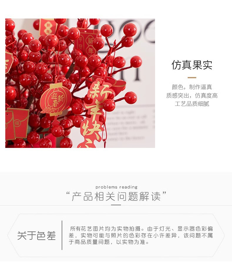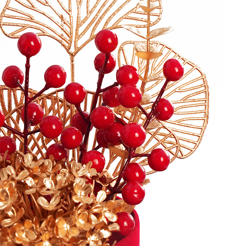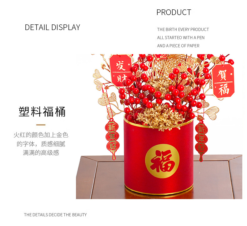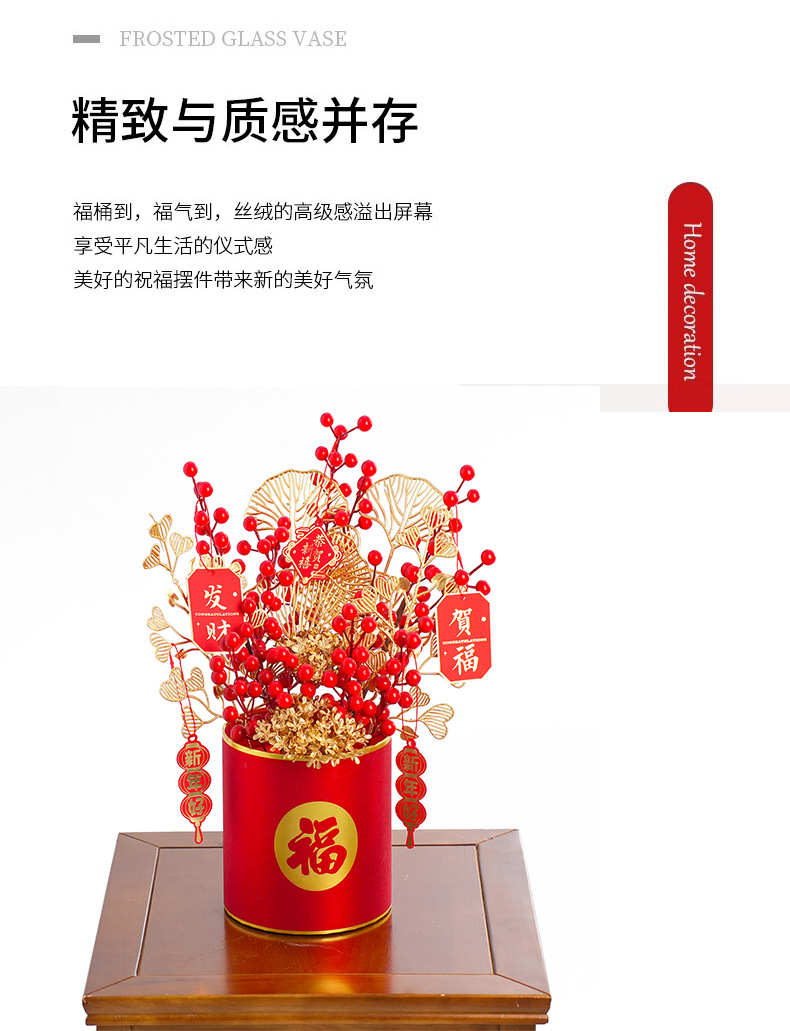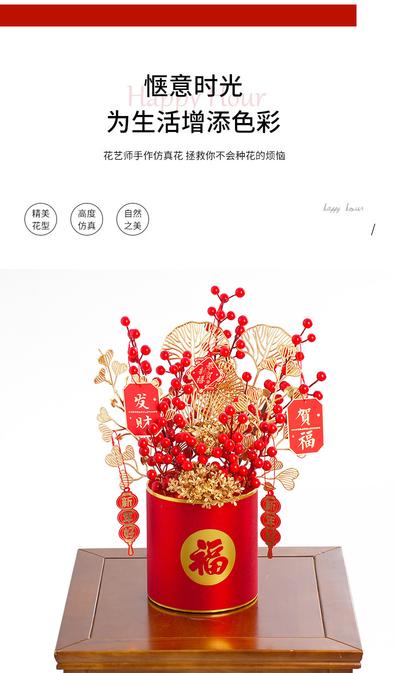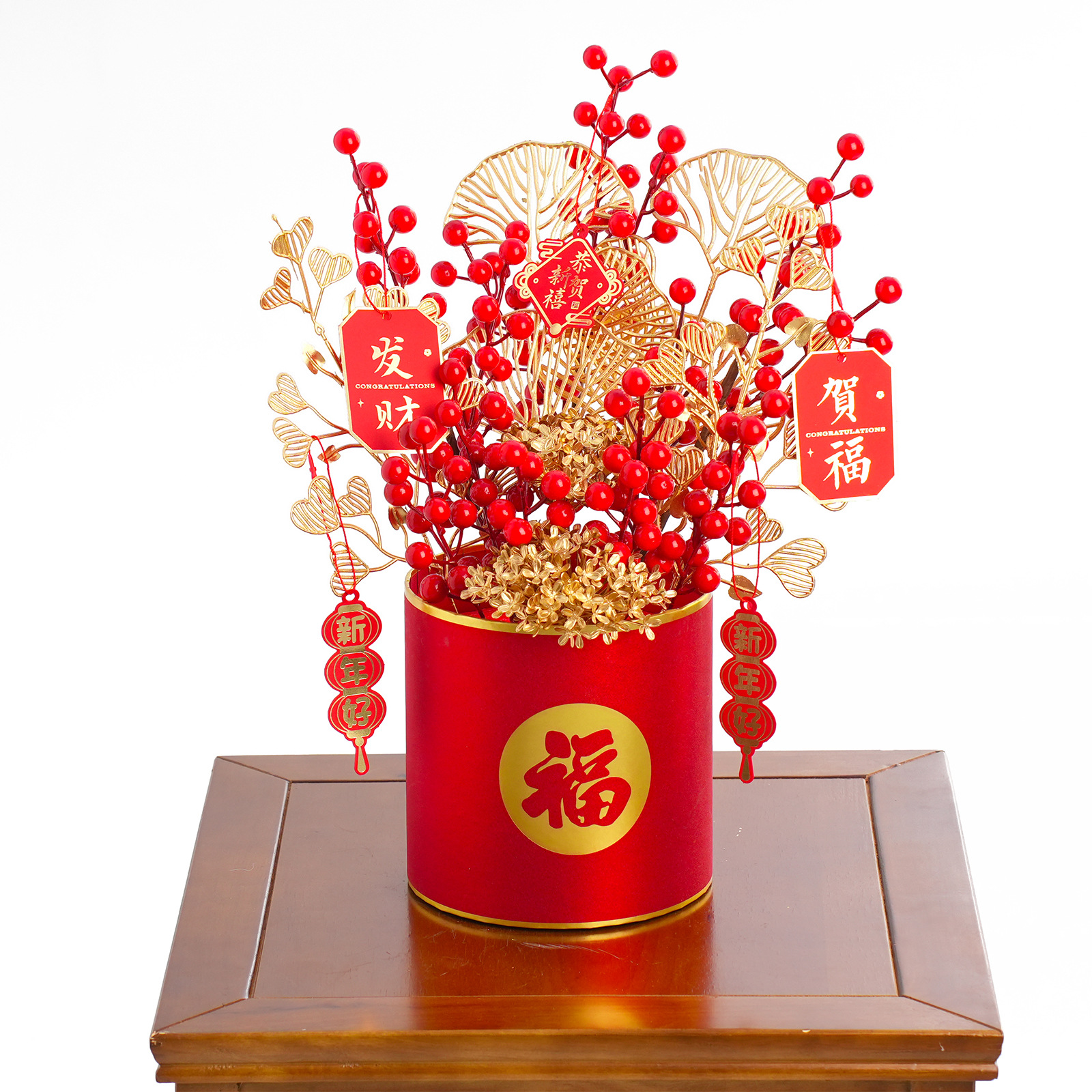 春节装饰布置摆件发财果仿真花元旦过年福桶插花年宵花新年送礼物