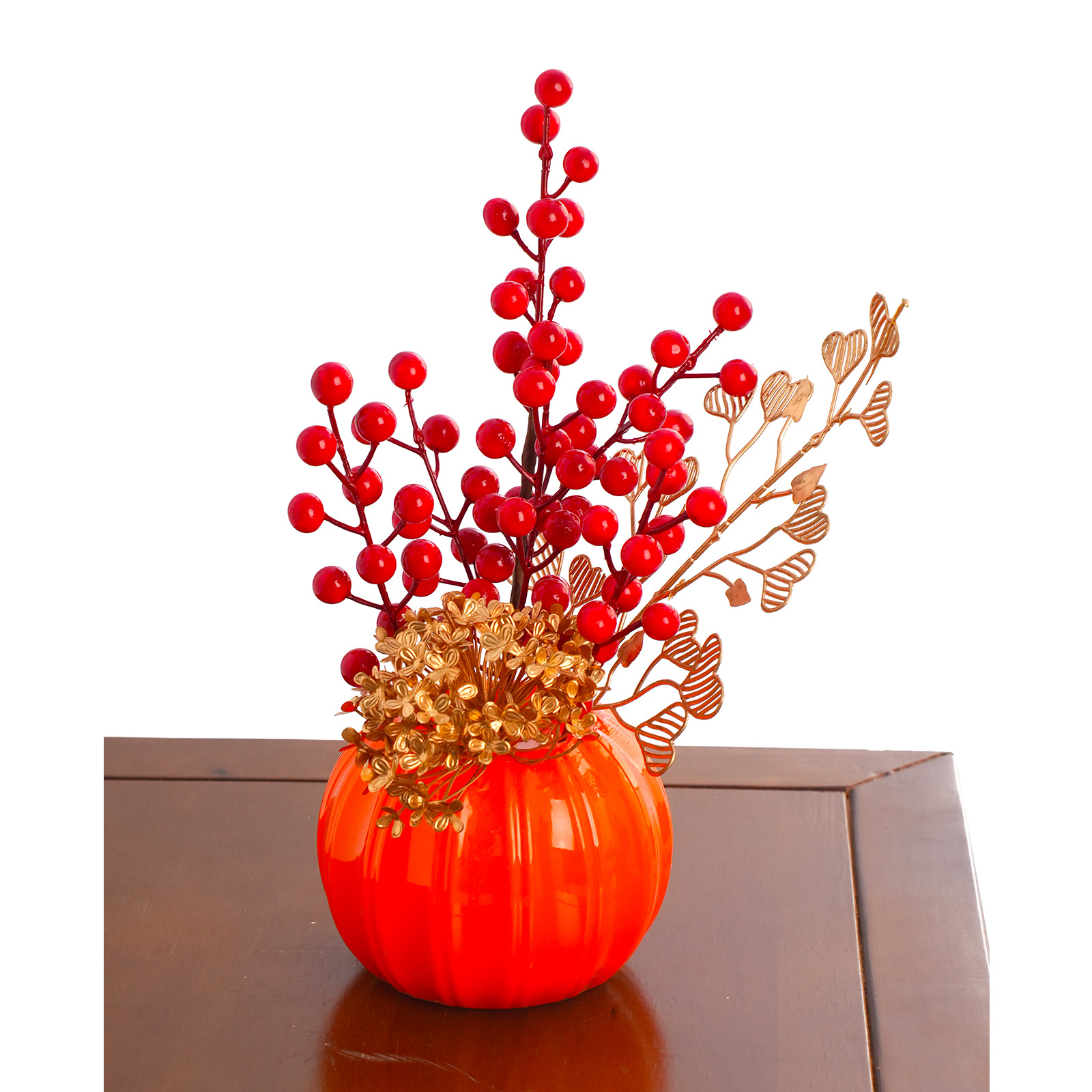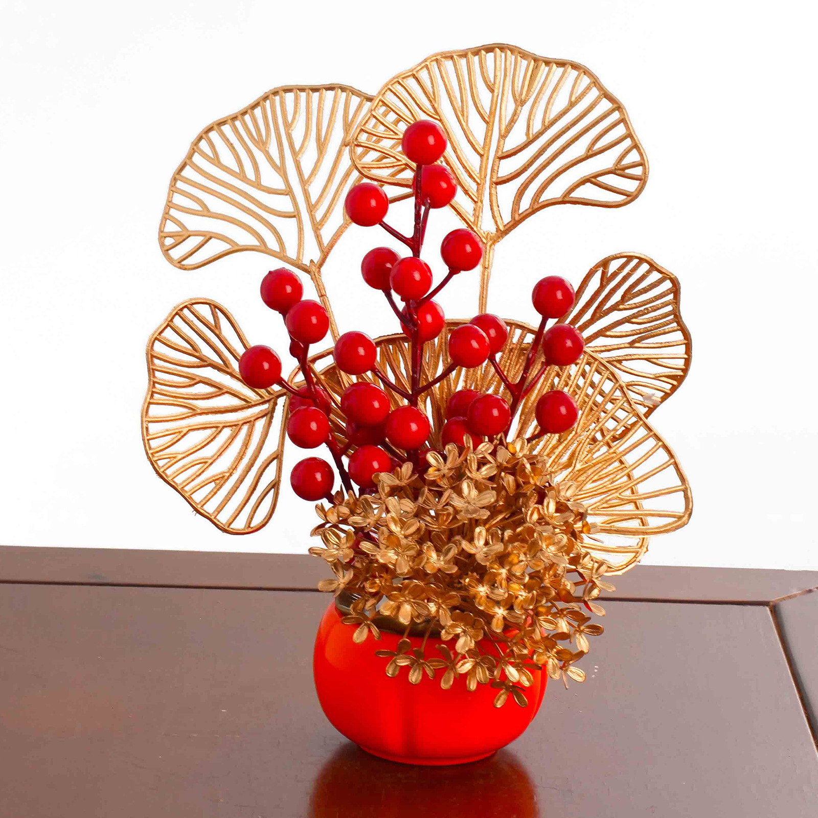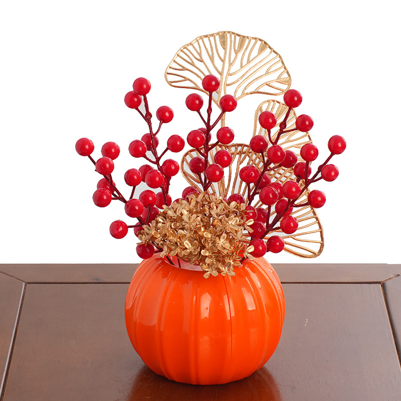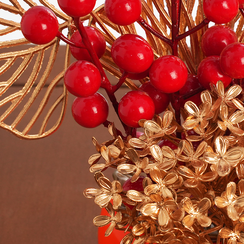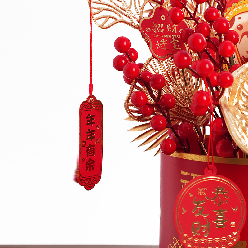 春节装饰布置摆件发财果仿真花元旦过年福桶插花年宵花新年送礼物