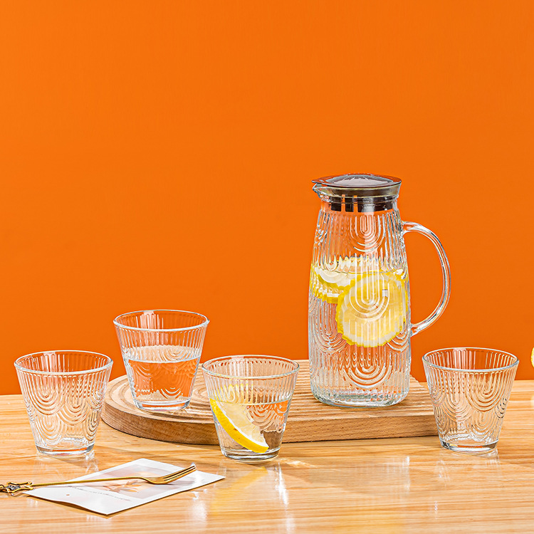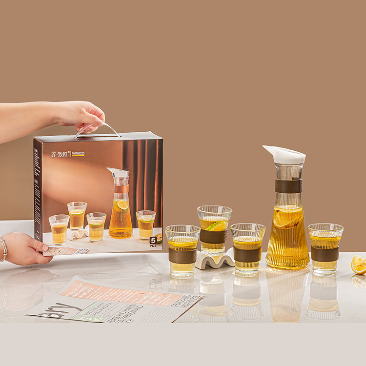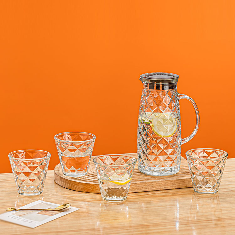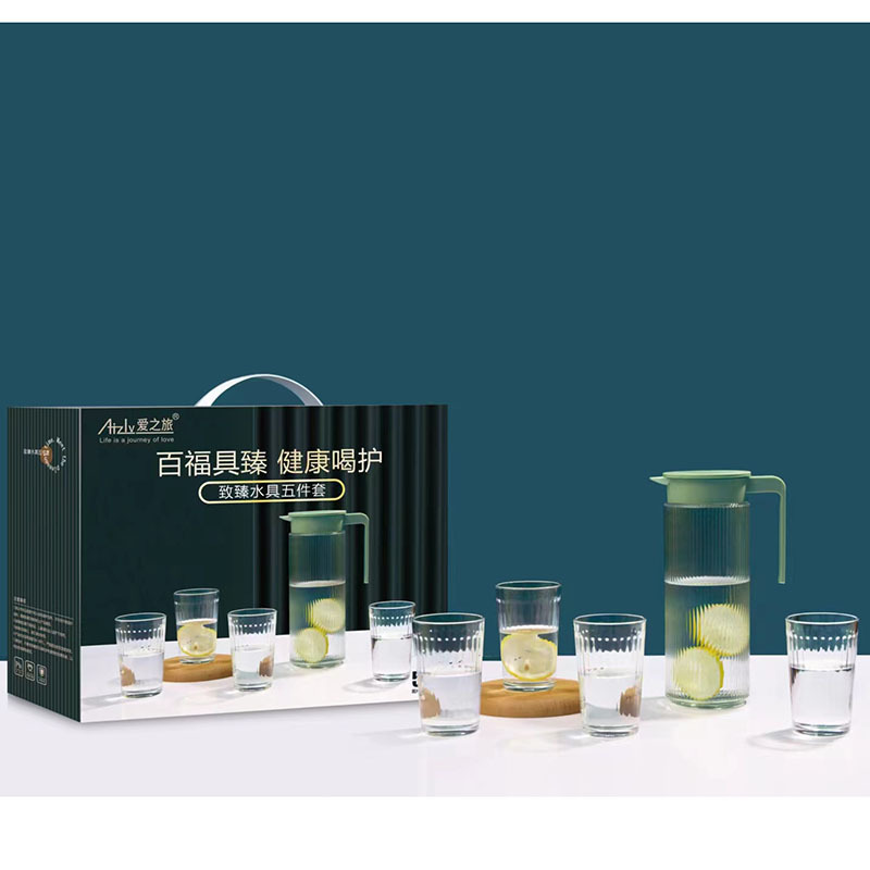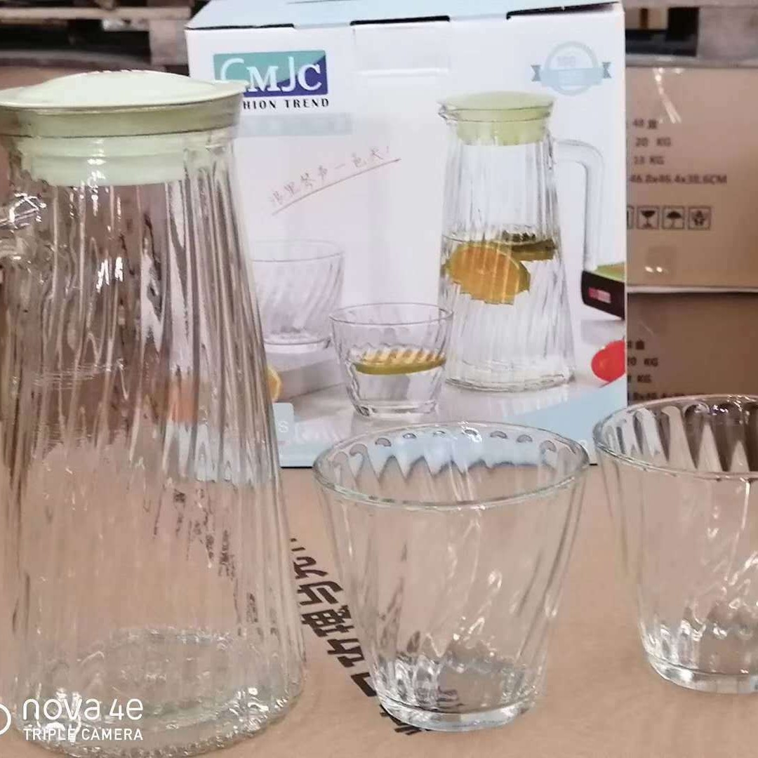 产地货源 玻璃冷水壶八角水具五件套 玻璃杯凉水壶套装 跑量