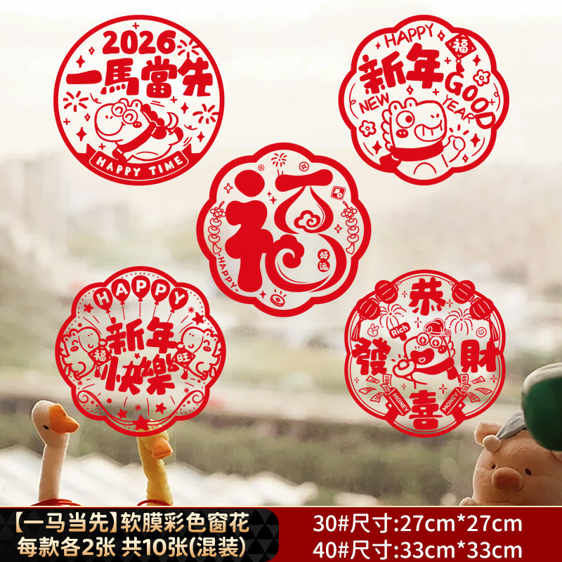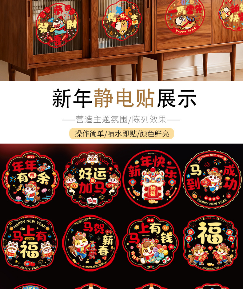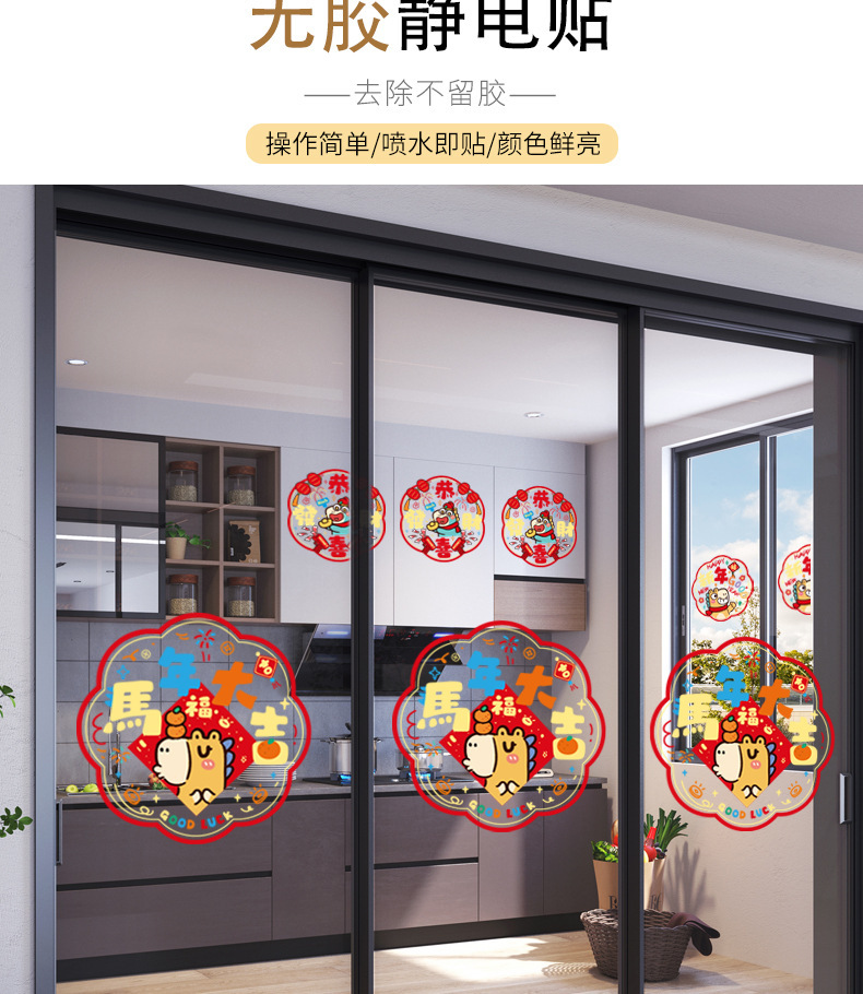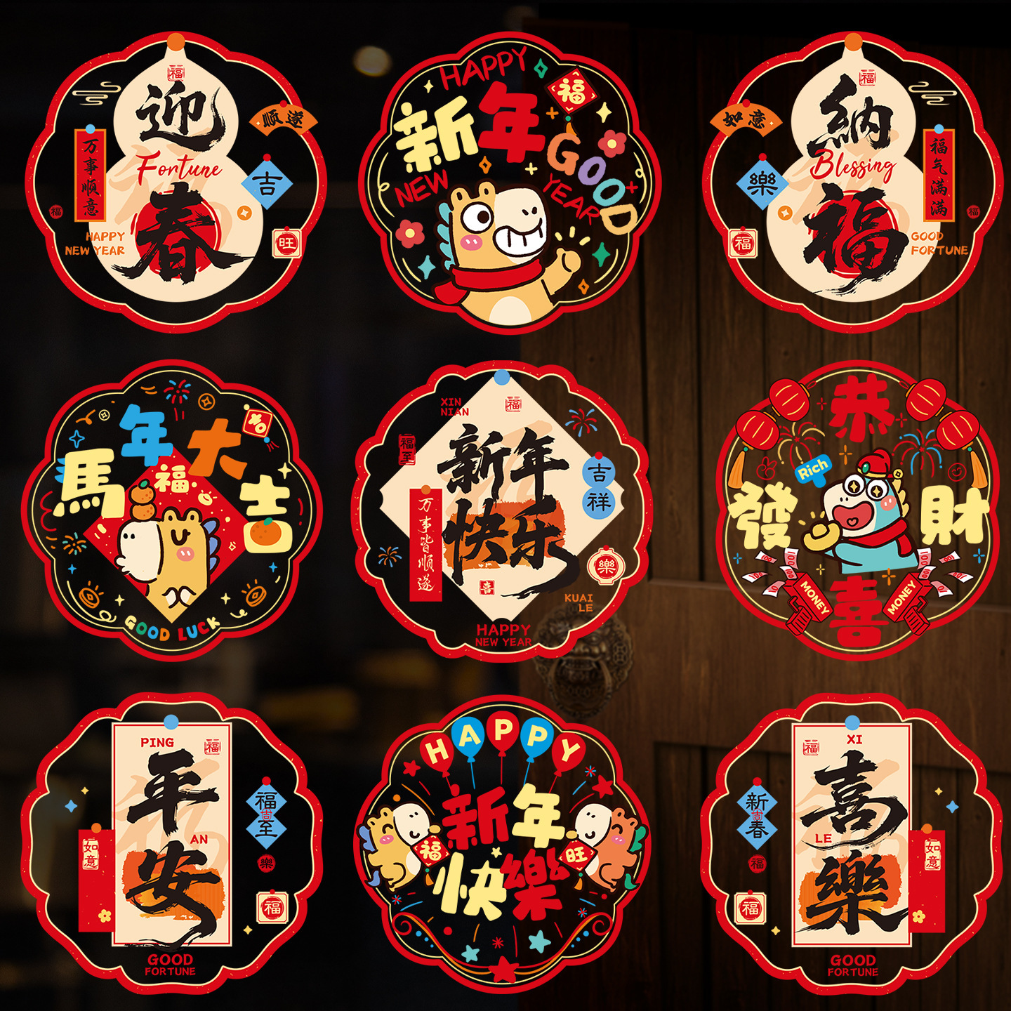 新年窗贴2026马年窗花福字门贴家用静电玻璃贴纸墙贴春节过年装饰