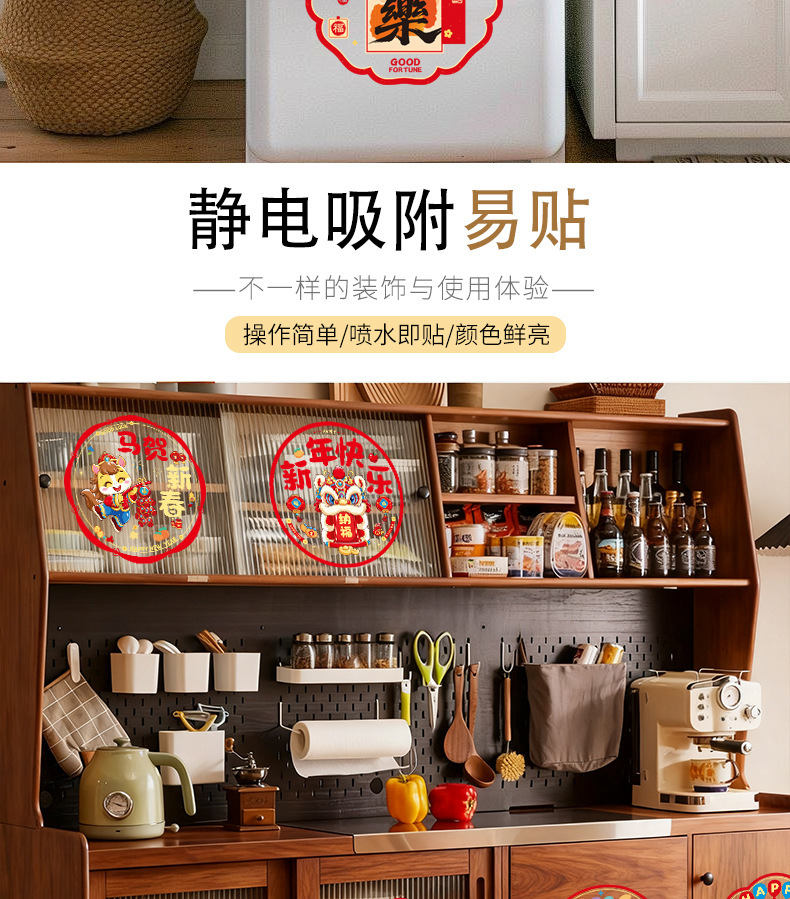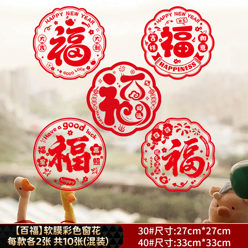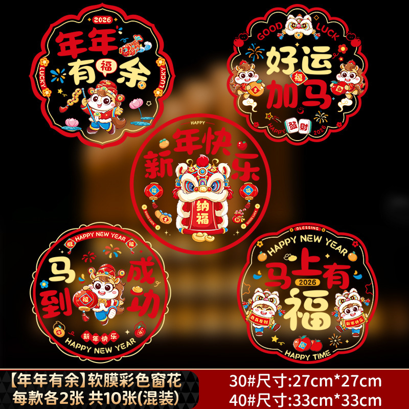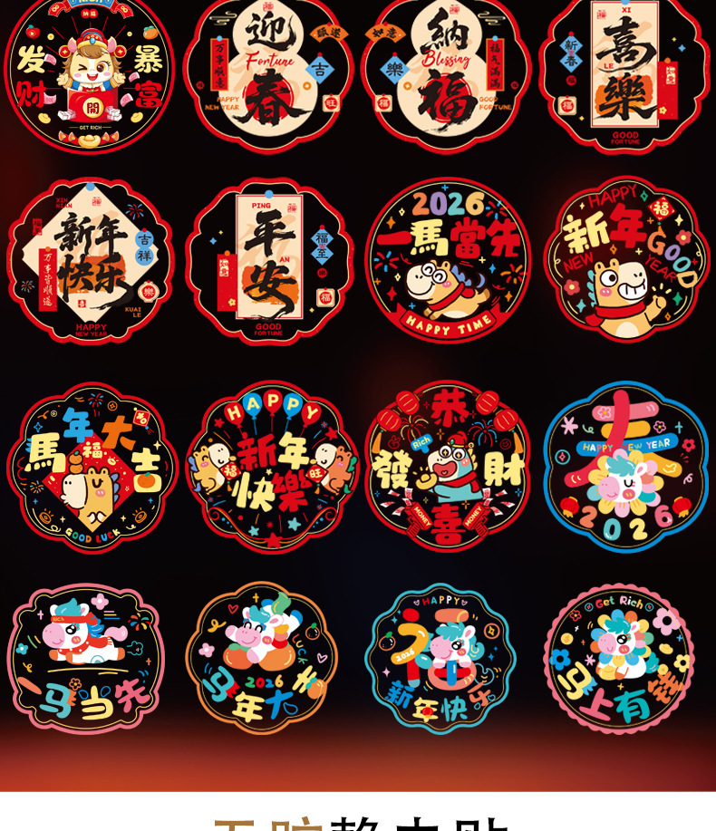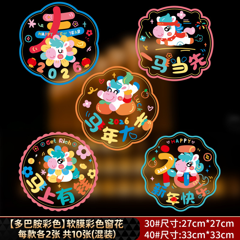 新年窗贴2026马年窗花福字门贴家用静电玻璃贴纸墙贴春节过年装饰