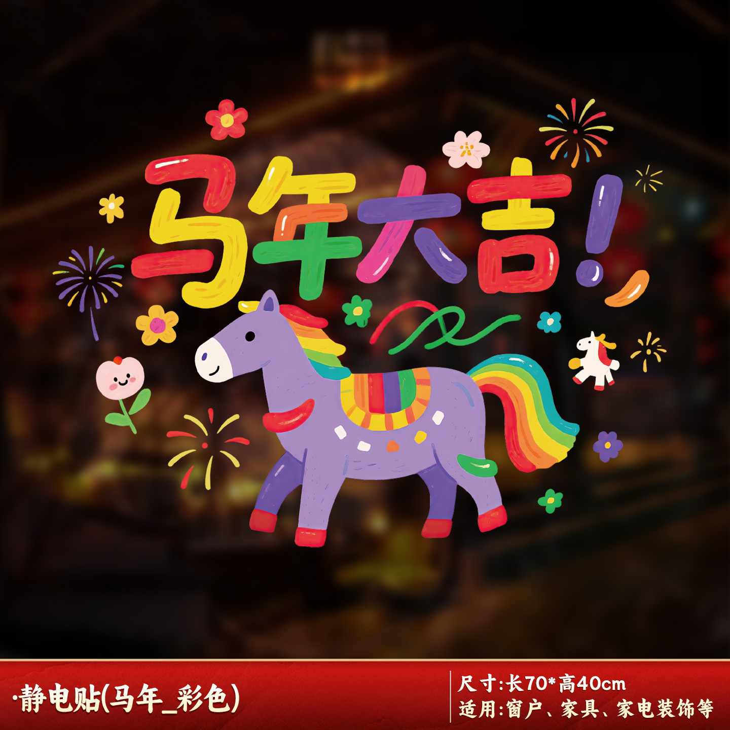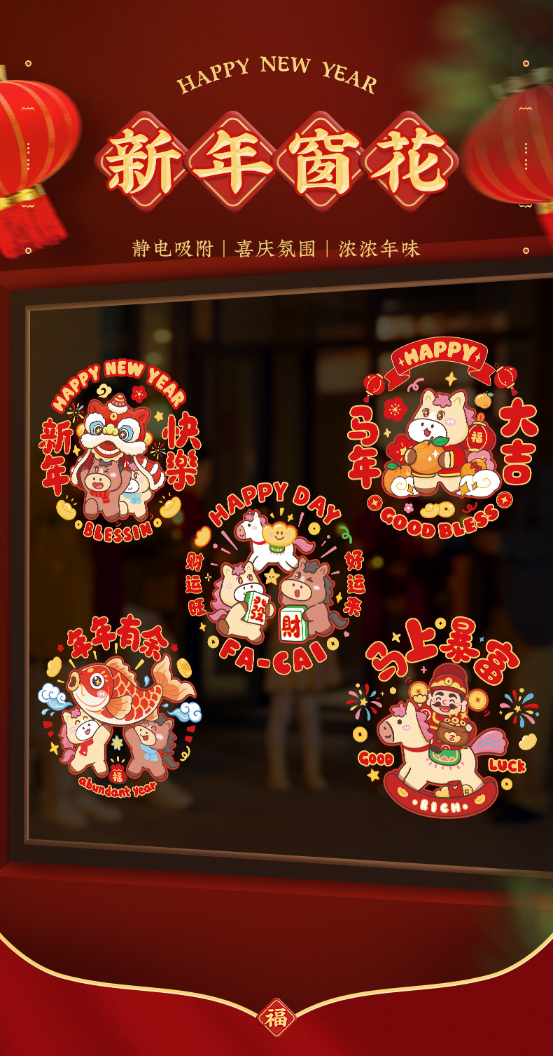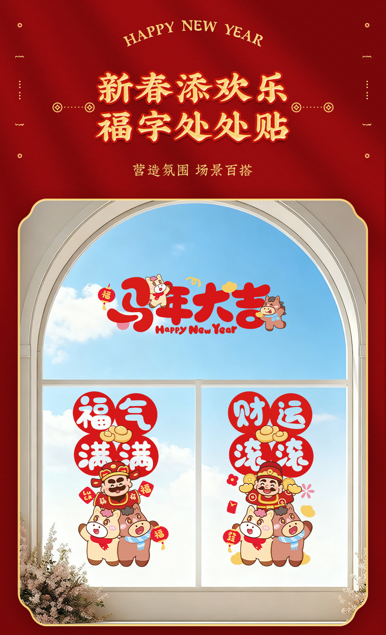 马年窗花静电贴新年玻璃门贴纸春节装饰商场店铺橱窗过年窗户窗贴