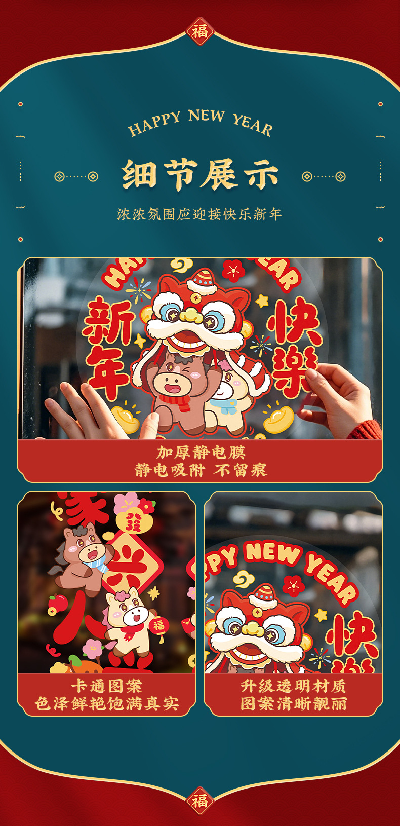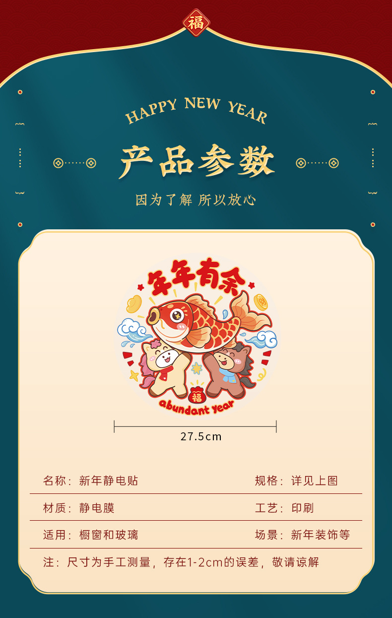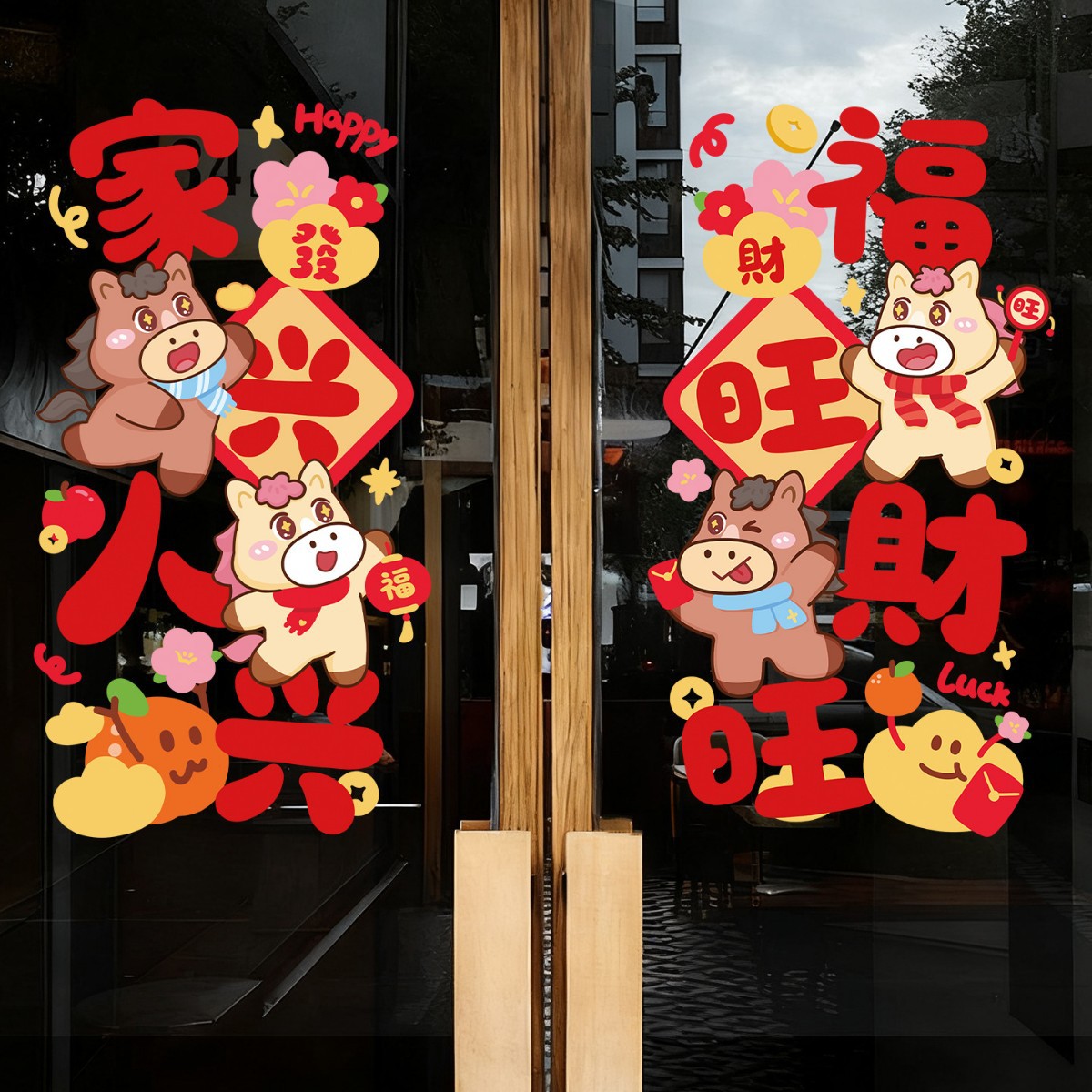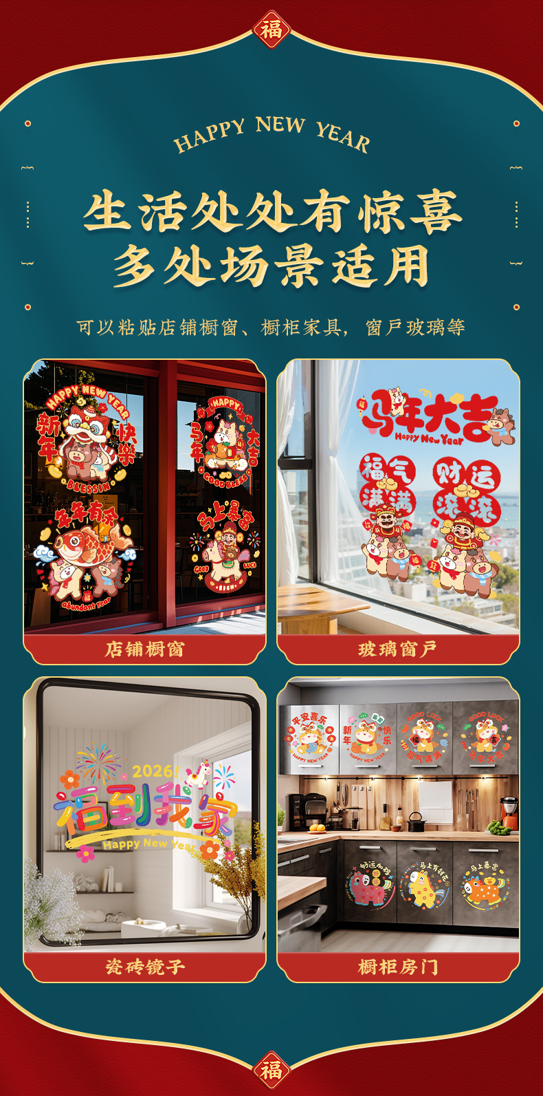 马年窗花静电贴新年玻璃门贴纸春节装饰商场店铺橱窗过年窗户窗贴