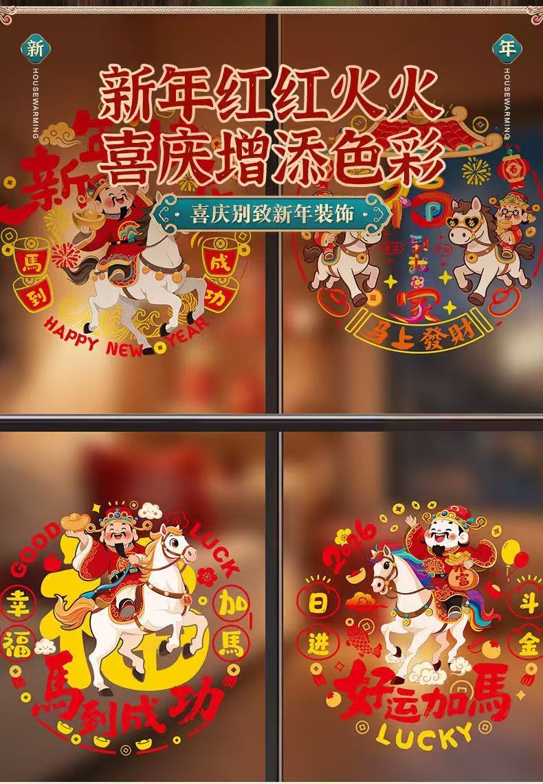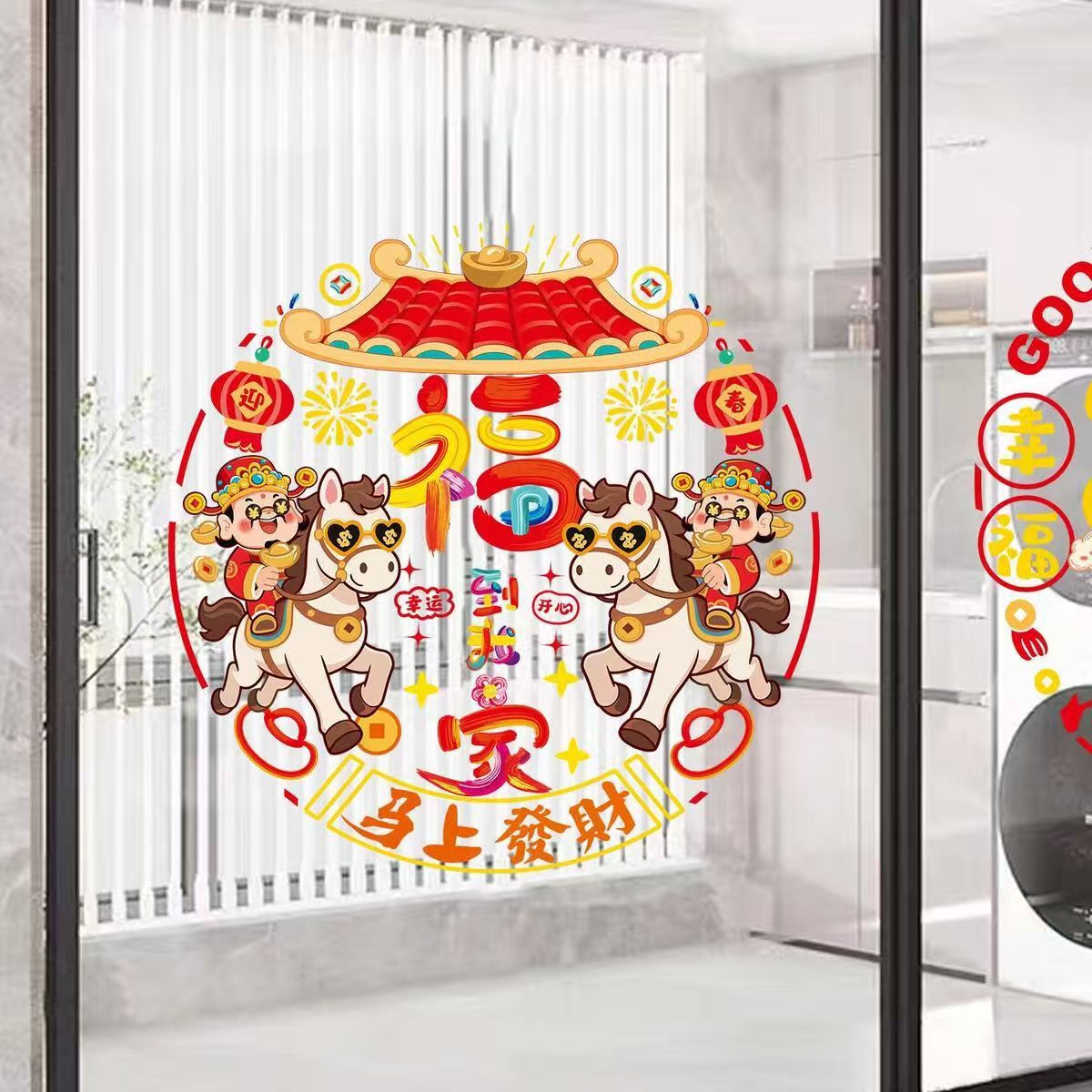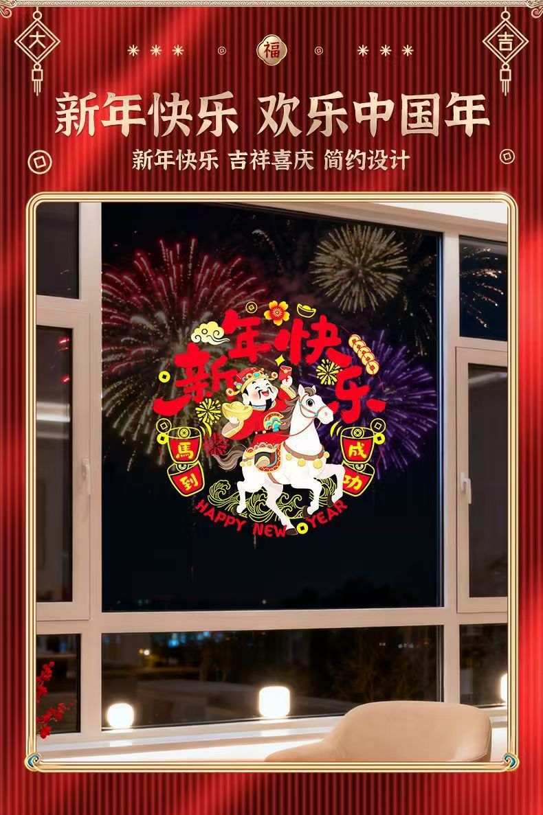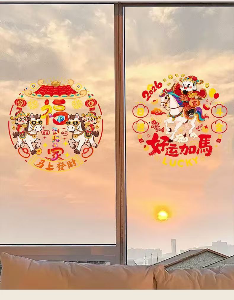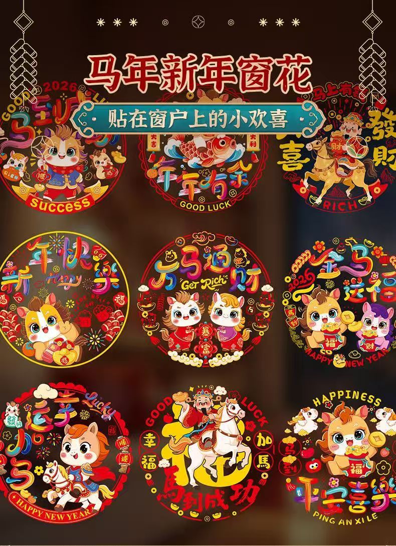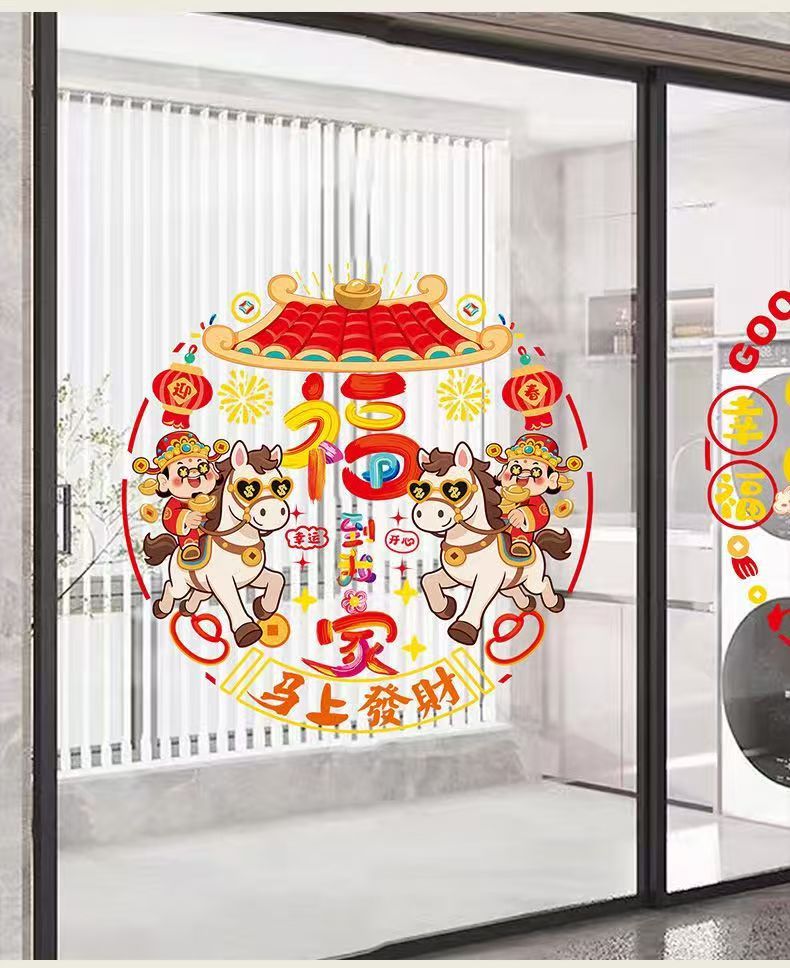2026马年福字静电贴窗花膜剪纸生肖春节玻璃门过年布置装饰厂家